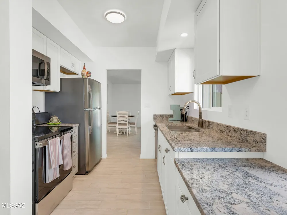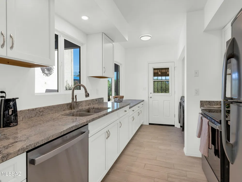 Welcome to this beautifully remodeled townhome located in the highly sought-after Casa Paloma II community in Green Valley, offering the perfect blend of modern comfort, timeless style, and low-maintenance living. This stunning 2-bedroom, 2-bath residence has been extensively updated from top to bottom, showcasing thoughtful design and quality craftsmanship throughout. As you step inside, you'll immediately notice the bright and inviting open-concept living area, where new dual-pane windows fill the home with an abundance of natural light, creating a warm and welcoming atmosphere. The newly remodeled kitchen is a true showpiece, featuring all-new stainless steel appliances, granite countertops, a new sink and fixtures, and an impressive expanse of cabinetry that stretches along the