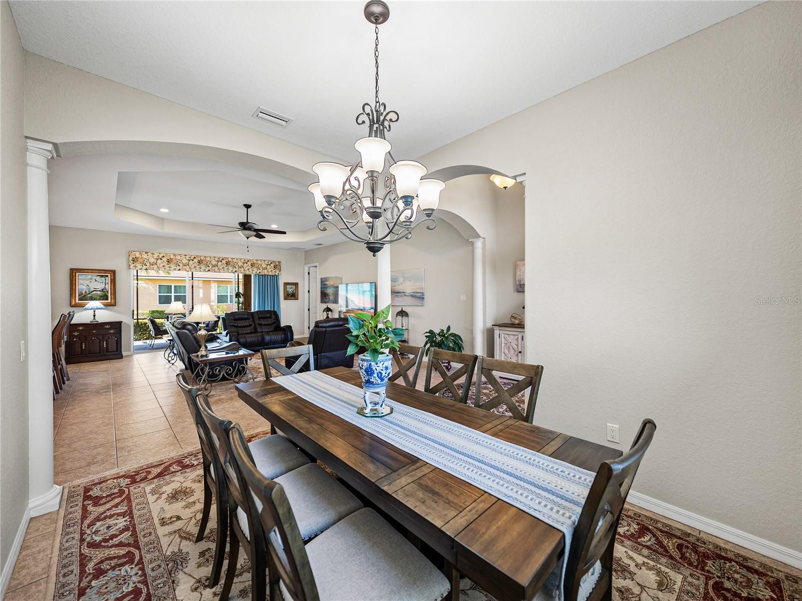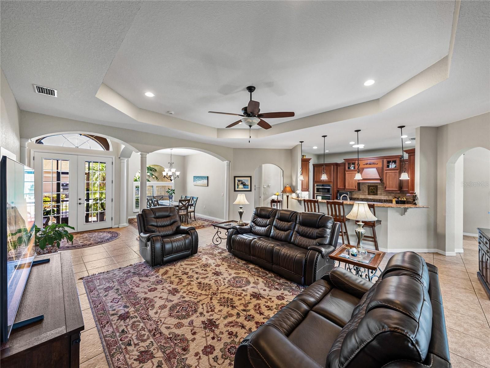 Welcome to the next chapter of your life in beautiful Lake Ashton—Central Florida’s premier 55+ active-adult community. This immaculate 2,512 sq. ft. residence perfectly blends tasteful style, timeless elegance, and the easygoing charm of Florida living, and the CDD debt is PAID IN FULL. And the list price has been reduced by $10,000! With 3 generous bedrooms, 2 full baths, and a versatile den/office, the open-concept design—highlighted by soaring 10-foot ceilings and stately 8-foot doors—feels both grand and inviting, ideal for relaxed everyday living and gracious entertaining. From the moment you arrive, you’ll be captivated by the vibrant landscaping, colorful plantings, and welcoming front screened entry. Inside, the spacious kitchen shines with rich cabinetry featuring striking bump-outs, bump-ups, and exquisite moldings. Stainless steel appliances, including a cooktop and built-in ovens, are bathed in the natural glow of a large solar tube, while a roomy pantry keeps everything within easy reach. Even the laundry room enjoys granite counter surfaces for a refined touch. The living room’s elegant, coffered ceiling adds architectural drama, while the expansive primary suite offers a peaceful retreat with abundant natural light, two impressive walk-in closets, and a spa-like master bath adorned with graceful arched windows. Custom tile flooring flows seamlessly through the living, dining, kitchen, dinette, and baths, creating a cohesive and polished look. Step out to the splendid veranda—perfect for morning coffee, afternoon gatherings, or quiet evenings. The space features a ceramic tile floor and has been expanded with a hard roof extension, making it a year-round pleasure. The deep 110-foot lot offers endless possibilities for lush landscaping or garden accents, and thoughtful details like custom fans, hardware, and lighting add comfort and style throughout. 2013 EzGo 4-seat golf cart with rain cover and golf bag attachment, and a transferable golf club membership conveys with purchase of the property. In Lake Ashton, you’re not just buying a home—you’re embracing a vibrant lifestyle. Here, days can be filled with two 18-hole championship golf courses, a 26,000 sq. ft. clubhouse, state-of-the-art Health & Fitness Center, indoor and outdoor swimming pools, pickleball courts, a bowling alley, theater, on-site restaurant, and an ever-changing calendar of social events and clubs. This is more than an opportunity—it’s the Florida dream brought to life. Schedule your private showing today and see for yourself why this home truly has it all.