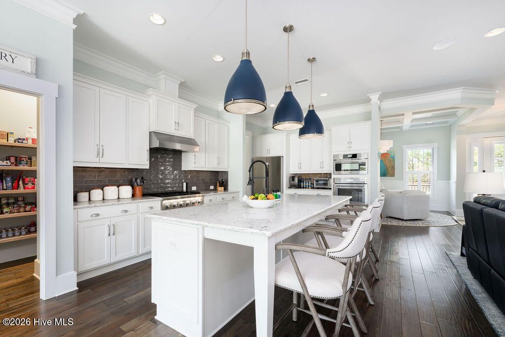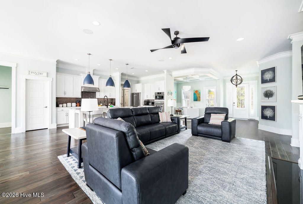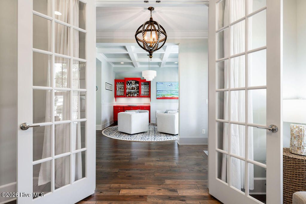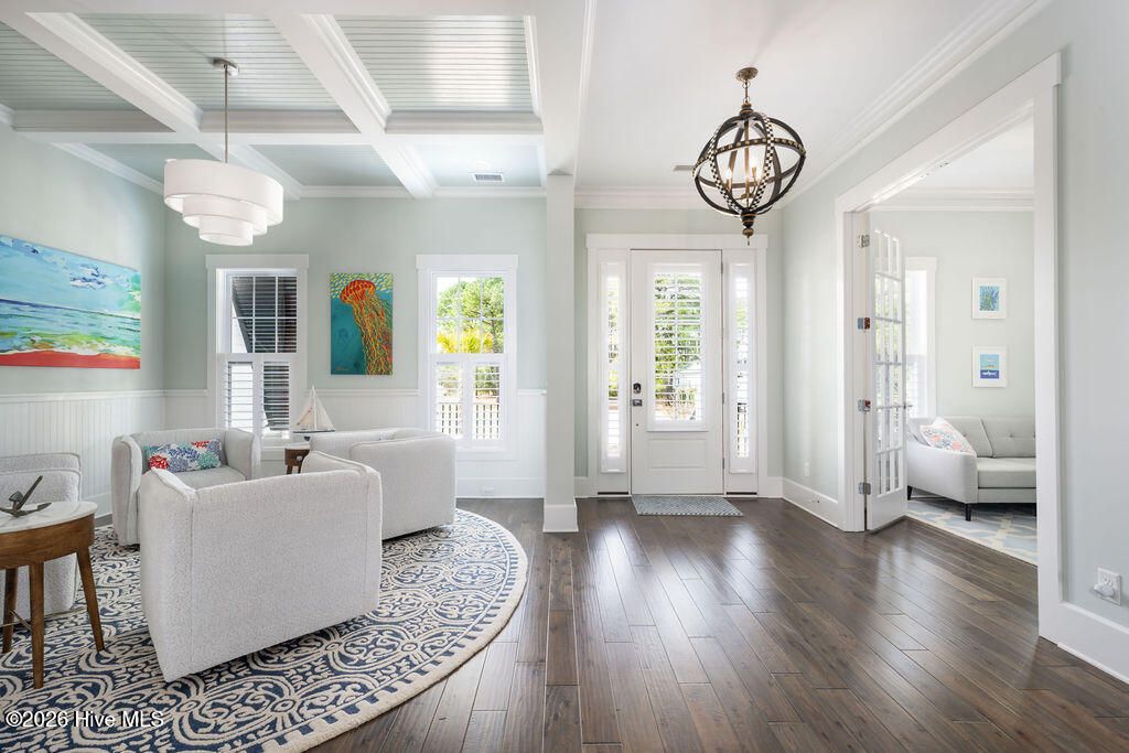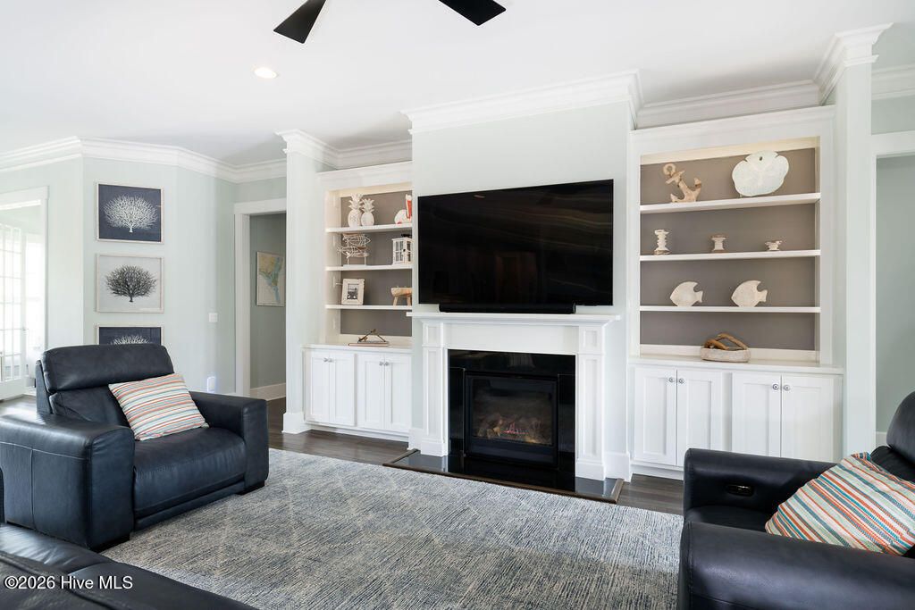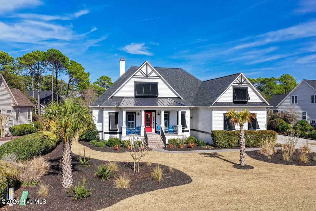 Blending classic Southern architecture with a fresh, modern feel, this home offers a level of finish and attention to detail that truly sets it apart. From the inviting rocking chair front porch to the thoughtfully designed interior, the home strikes a perfect balance between charm and sophistication. Inside, you'll find 10-foot ceilings, wide-plank hardwood floors, and detailed millwork throughout, including coffered ceilings, shiplap accents, and custom built-ins. The main living area is warm and inviting, centered around a fireplace with built-in cabinetry and open to a well-appointed kitchen designed for both everyday living and entertaining. Features include a large island with farmhouse sink, Thermador gas cooktop, and a walk-in pantry, This home offers versatile living spaces to suit a variety of needs, including a dedicated office, cocktail or coffee nook, additional sitting room and a spacious bonus room over the garage (currently being used as a bedroom) ideal for guests, hobbies, or a private retreat. Step outside to a fully fenced yard, offering a comfortable and functional outdoor space - perfect for pets or play. The epoxied garage is equipped with a Tesla battery system for current or future hybrid battery needs. Throughout the home, quality craftsmanship is evident in details like tiled showers, custom closet systems, and thoughtfully selected finishes. Located just minutes from the Founders Club, Marina, Intracoastal Waterway, and Waterway Park, this home offers easy access to some of the best amenities St. James has to offer. This is a standout opportunity for buyers who appreciate classic design and flexible living spaces in a home that feels a step above the rest.
