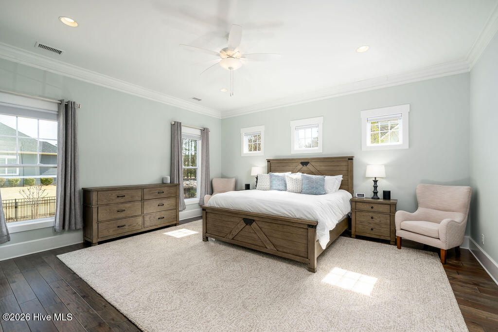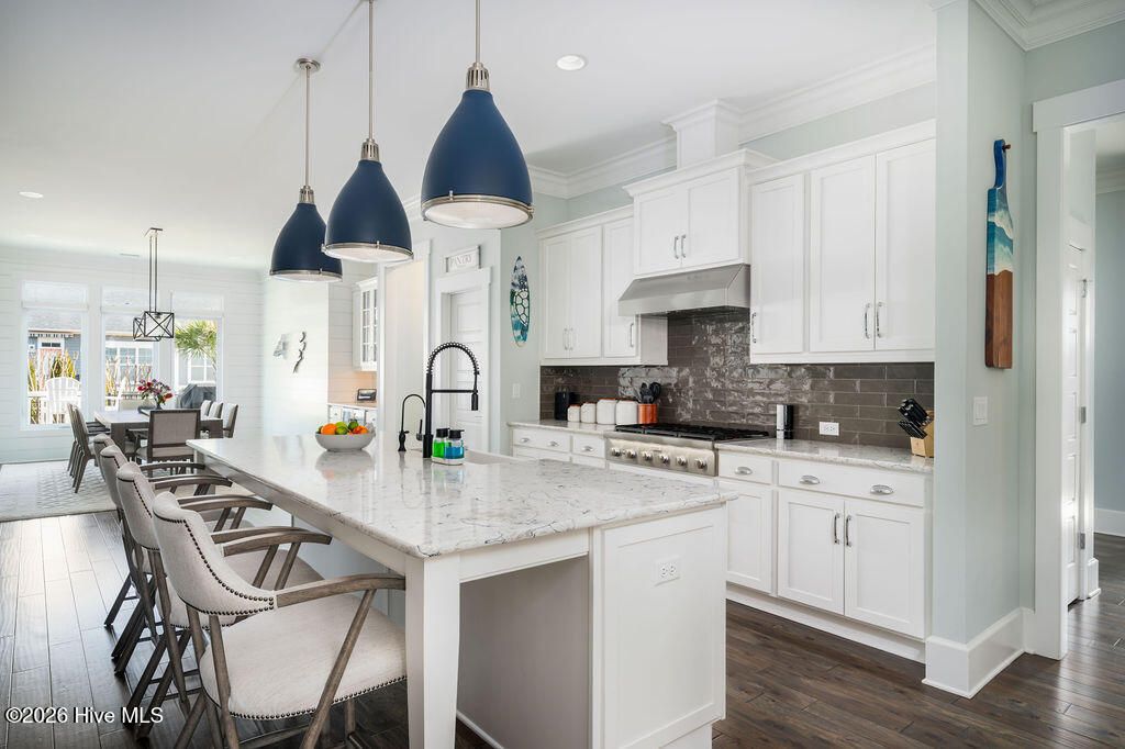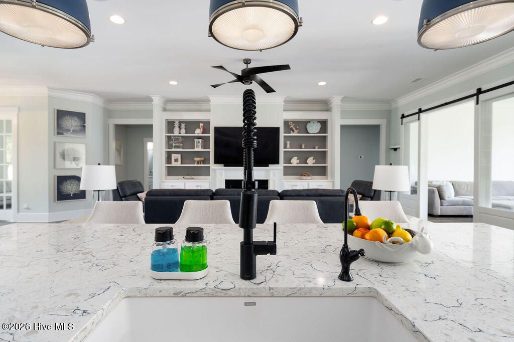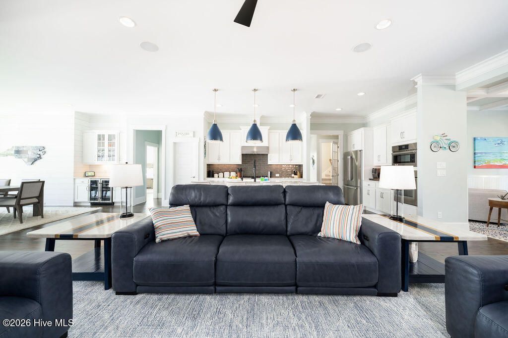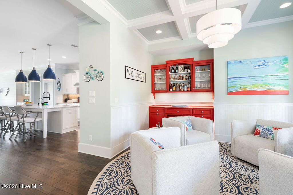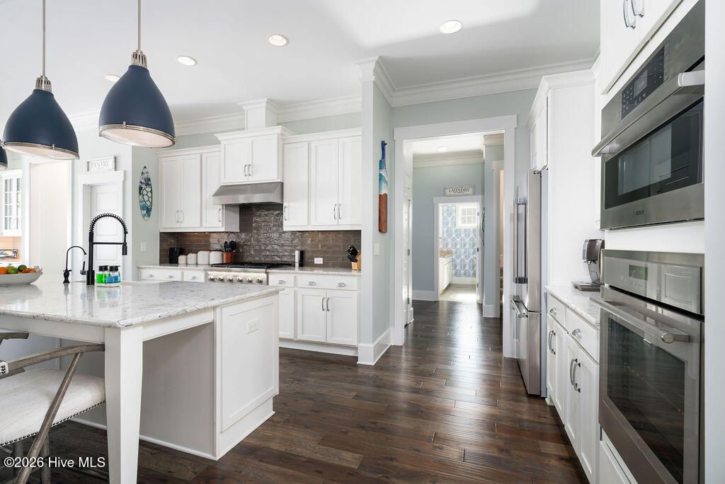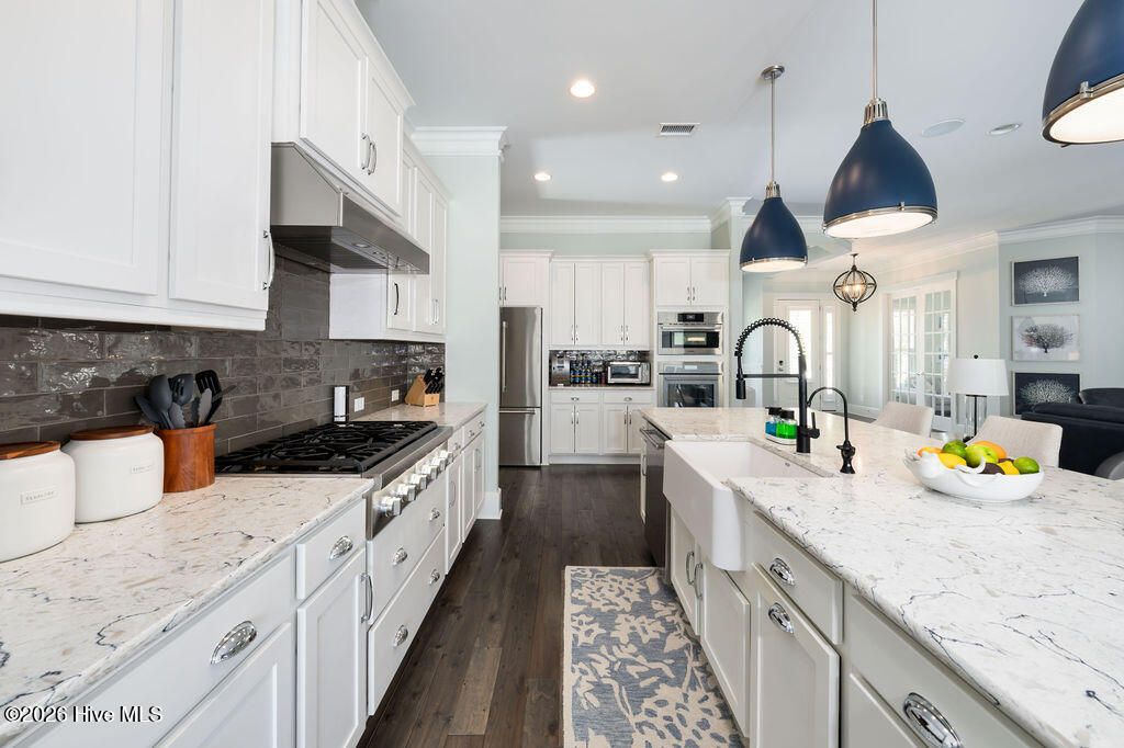 Blending classic Southern architecture with a fresh, modern feel, this home offers a level of finish and attention to detail that truly sets it apart. From the inviting rocking chair front porch to the thoughtfully designed interior, the home strikes a perfect balance between charm and sophistication. Inside, you'll find 10-foot ceilings, wide-plank hardwood floors, and detailed millwork throughout, including coffered ceilings, shiplap accents, and custom built-ins. The main living area is warm and inviting, centered around a fireplace with built-in cabinetry and open to a well-appointed kitchen designed for both everyday living and entertaining. Features include a large island with farmhouse sink, Thermador gas cooktop, and a walk-in pantry, This home offers versatile living spaces to suit a variety of needs, including a dedicated office, cocktail or coffee nook, additional sitting room and a spacious bonus room over the garage (currently being used as a bedroom) ideal for guests, hobbies, or a private retreat. Step outside to a fully fenced yard, offering a comfortable and functional outdoor space - perfect for pets or play. The epoxied garage is equipped with a Tesla battery system for current or future hybrid battery needs. Throughout the home, quality craftsmanship is evident in details like tiled showers, custom closet systems, and thoughtfully selected finishes. Located just minutes from the Founders Club, Marina, Intracoastal Waterway, and Waterway Park, this home offers easy access to some of the best amenities St. James has to offer. This is a standout opportunity for buyers who appreciate classic design and flexible living spaces in a home that feels a step above the rest.