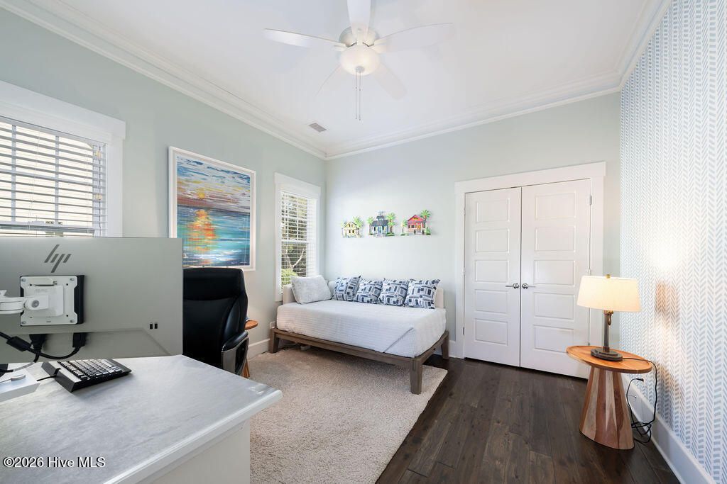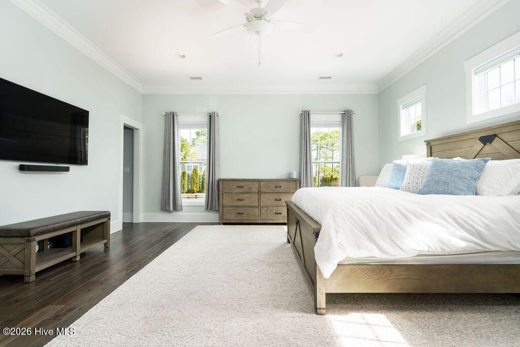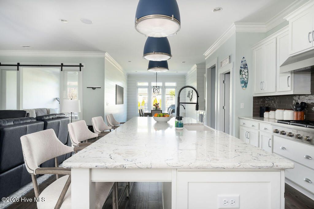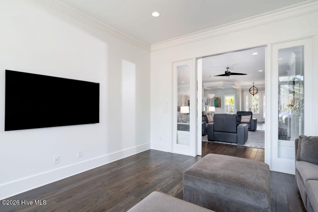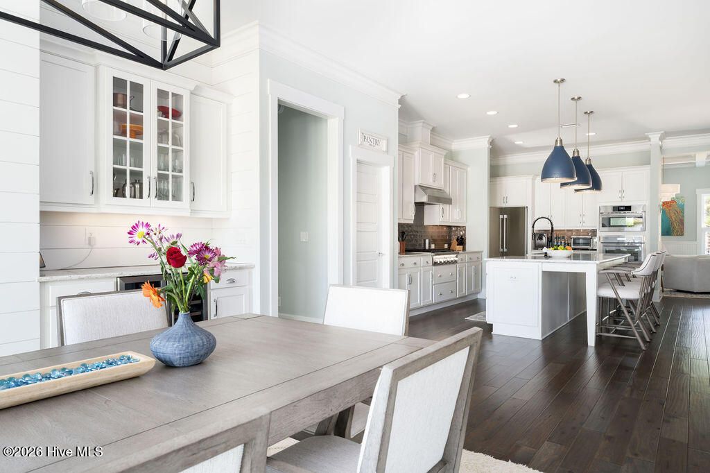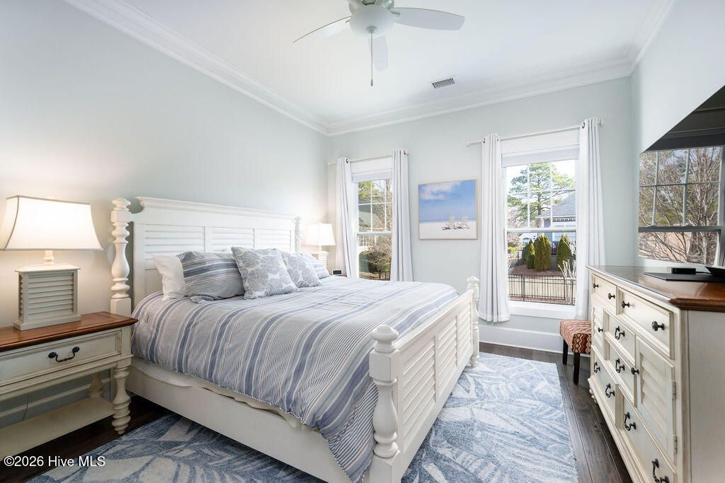 Blending classic Southern architecture with a fresh, modern feel, this home offers a level of finish and attention to detail that truly sets it apart. From the inviting rocking chair front porch to the thoughtfully designed interior, the home strikes a perfect balance between charm and sophistication. Inside, you'll find 10-foot ceilings, wide-plank hardwood floors, and detailed millwork throughout, including coffered ceilings, shiplap accents, and custom built-ins. The main living area is warm and inviting, centered around a fireplace with built-in cabinetry and open to a well-appointed kitchen designed for both everyday living and entertaining. Features include a large island with farmhouse sink, Thermador gas cooktop, and a walk-in pantry, This home offers versatile living spaces to suit a variety of needs, including a dedicated office, cocktail or coffee nook, additional sitting room and a spacious bonus room over the garage (currently being used as a bedroom) ideal for guests, hobbies, or a private retreat. Step outside to a fully fenced yard, offering a comfortable and functional outdoor space - perfect for pets or play. The epoxied garage is equipped with a Tesla battery system for current or future hybrid battery needs. Throughout the home, quality craftsmanship is evident in details like tiled showers, custom closet systems, and thoughtfully selected finishes. Located just minutes from the Founders Club, Marina, Intracoastal Waterway, and Waterway Park, this home offers easy access to some of the best amenities St. James has to offer. This is a standout opportunity for buyers who appreciate classic design and flexible living spaces in a home that feels a step above the rest.