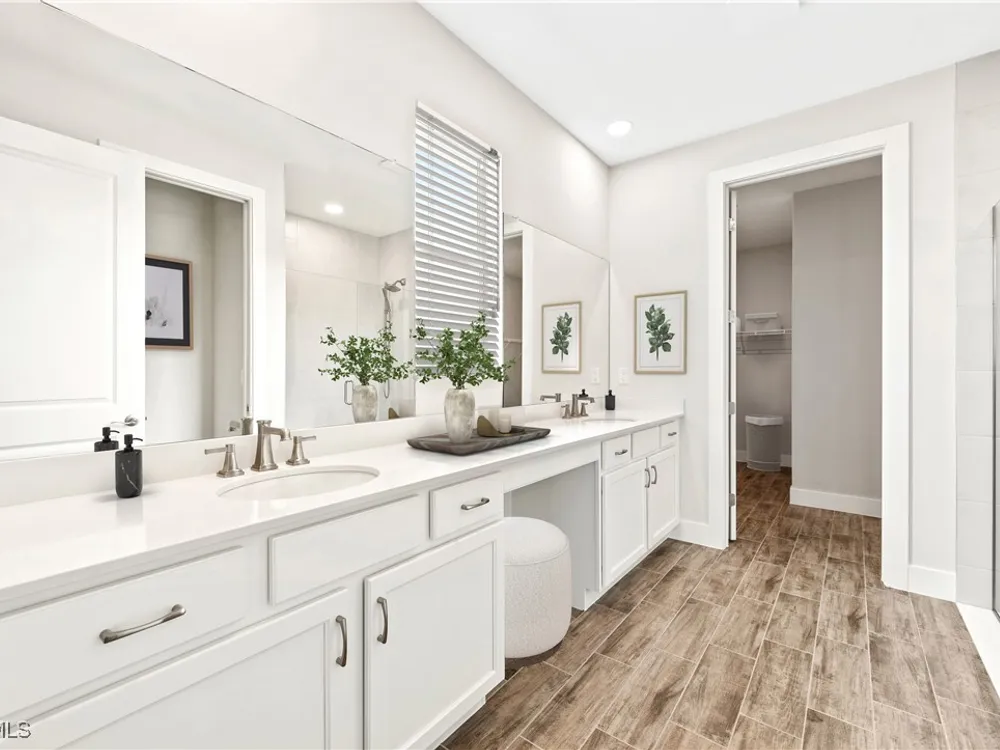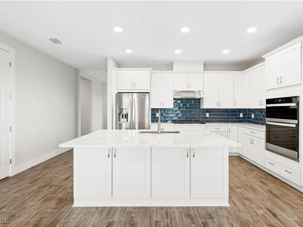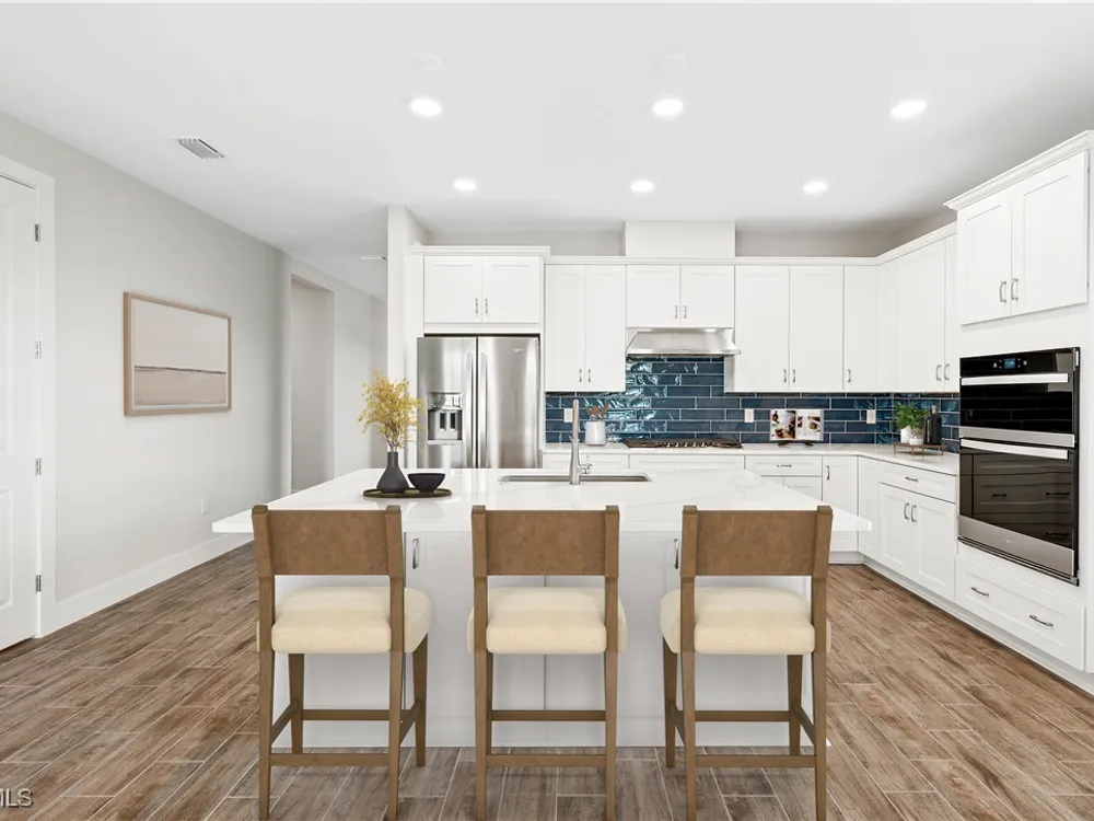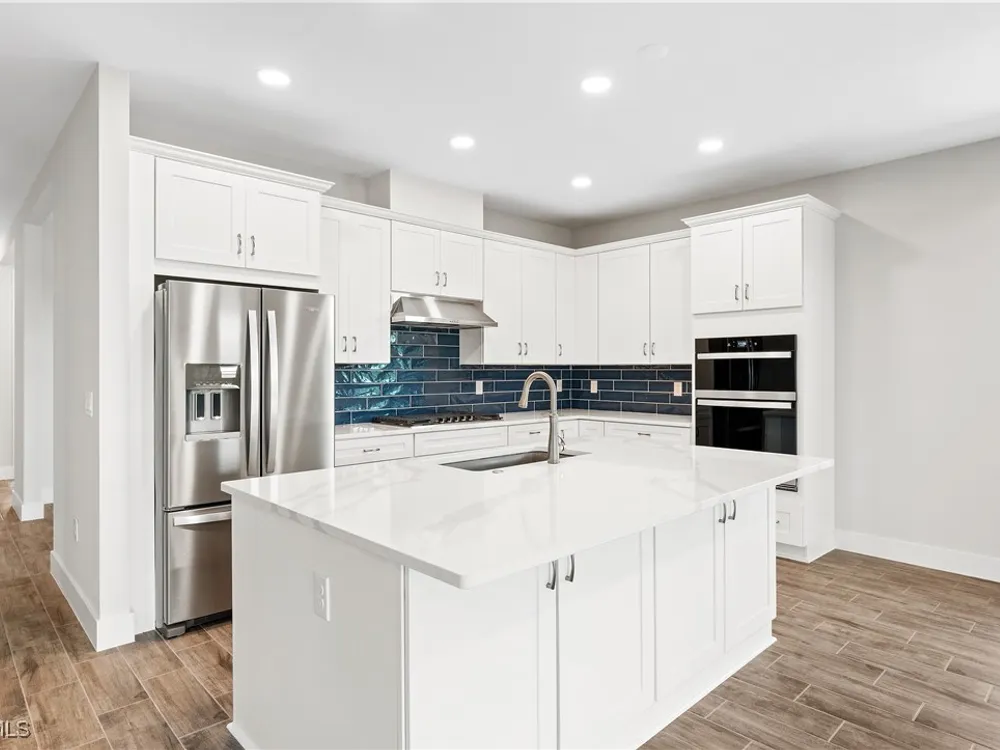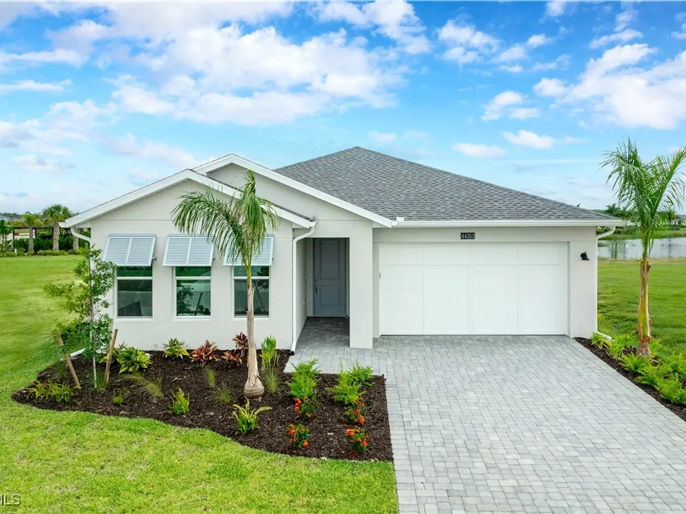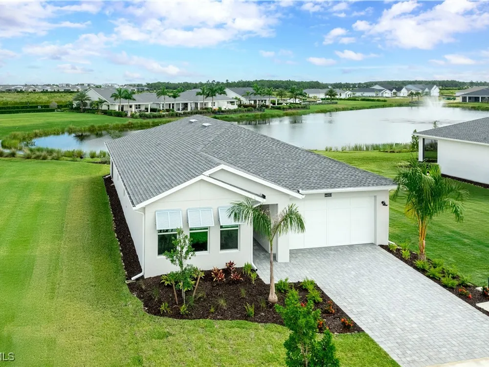 Welcome to this beautifully crafted new construction home, designed for comfort, elegance, and Florida living at its finest. Located in a premier 55+ community, this 3-bedroom, 2-bathroom residence offers top-tier finishes, spacious interiors, and an unbeatable lakefront setting with northern exposure. Step into an open-concept floor plan featuring wood-look tile throughout, hurricane impact glass windows and doors, and abundant natural light. The chef-inspired kitchen is a true standout, boasting wood cabinetry, a gas cooktop—perfect for premier cooking—stainless steel appliances, a spacious center island, and stunning quartz countertops. A bold navy blue subway tile backsplash adds a modern touch to this sophisticated space. Enjoy seamless indoor-outdoor living with an oversized covered back patio that overlooks a gorgeous lake view, offering plenty of room to add a pool after closing. Whether relaxing or entertaining, this outdoor area is the perfect extension of your living space. The luxurious primary suite includes a walk-in closet and spa-style bath with dual vanities and a glass-enclosed shower. Two additional bedrooms offer flexibility for guests, a home office, or hobbies. Built to the latest builder codes and backed by a full builder warranty, this home delivers peace of mind and quality craftsmanship. Residents of this vibrant 55+ community enjoy exclusive access to a private amenity center with a full-time lifestyle director, fitness facilities, resort-style pool, pickleball courts, tennis, golf simulator, social events, and more. Don't miss your opportunity to live in luxury and enjoy the ultimate active adult lifestyle. Schedule your tour today! Please see MLS supplements for interior design selections/floor plan layout. Lot 4665.