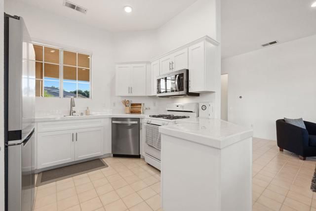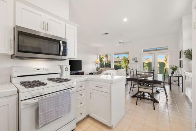 Enjoy EASY LIVING in this cute & cozy, IMPECCABLY maintained 2 bed/2 bath home situated on an interior, quiet corner lot in Heritage Palms!! Light and bright, the open living and dining areas offer a comfortable flow for everyday living and casual entertaining. The all-white kitchen is efficient with some newer stainless steel appliances plus double sink overlooking the covered front courtyard. Large windows in living room with a sliding door off the dining area leads to the back patio. The primary bedroom suite includes a walk-in closet, dual vanities, oversized shower, ceiling fan, and a large window. Secondary bedroom, interior laundry room, and 2 car garage w/epoxy flooring and storage make this a great property for a LOW MAINTENANCE lifestyle. Recent updates include newer appliances, interior paint, window coverings, upgraded electrical panel, newer ceiling lights and fans, plumbing upgrades, and backyard landscaping. Heritage Palms is an an adult community featuring an 18 hole championship golf course, outdoor and indoor pools, fitness w/exercise classes including water aerobics, tennis and pickleball courts, dining w/a beautiful outdoor patio, billiards, card rooms, lots of social clubs, security, and so much more! LOW HOA dues, $600 a month, cover internet, cable, neighborhood security, and all amenities except pay as you play golf. Don't miss this PRISTINE and CHARMING home!