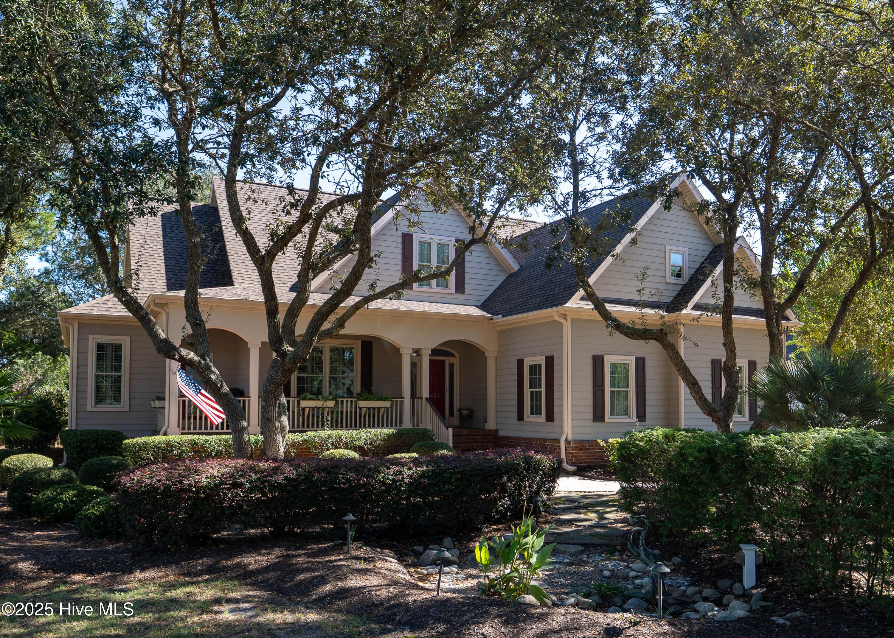 Exceptional custom home by Firetti Builders, impeccably maintained and thoughtfully designed, this 4 bed/3bath home offers quality craftsmanship and comfort throughout. The inviting wraparound porch opens to an elegant interior featuring hardwood floors, vaulted ceilings, built-ins and a gas fireplace. The kitchen boasts granite counters, stainless appliances, tiled backsplash and walk-in pantry. Relax in the climate-controlled Carolina room overlooking lush, easy-care gardens. The private primary suite includes a large tiled shower, soaking tub, dual vanities, granite countertops and an expansive walk-in closet. Two additional bedrooms, a full bath and laundry room complete the main level. Upstairs, a bonus suite with bathroom and spacious closet is ideal for guests or multigenerational living. Additional highlights: plentiful attic storage, an oversized sideload garage and encapsulated crawlspace with dehumidifier. Some of the recent updates include a new roof and dual zone HVAC (2025), fresh interior paint and new carpeting. Enjoy a short stroll to Waterway Park and dock on the intracoastal waterway. Just minutes from historic Southport, St. James offers world-class amenities including a full-service marina, 81 holes of golf, tennis and pickleball courts, indoor and outdoor pools, fitness centers, restaurants, and a private oceanfront beach club on Oak Island. Don't miss your opportunity to enjoy the ultimate St. James lifestyle!