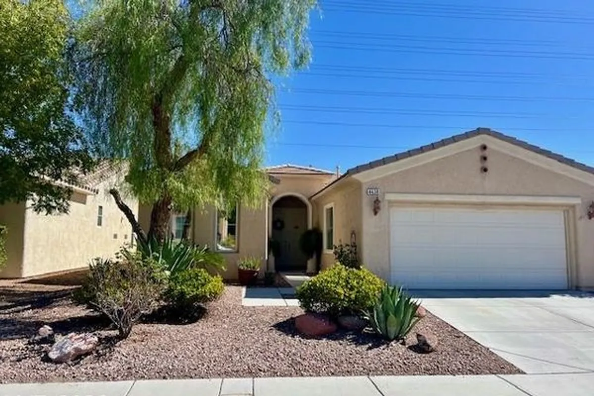 SIENA Now Officially WON in the Best places to live in LV! Thank you for Voting! Open Floor Plan on Larger lot in GATED SIENA!! Curb Appeal!! Partial Luxury Laminate Wood Flooring with some areas Matching Tile. HVAC SYSTEM 5 months old. 90% Solar System!! Kitchen features: Tile Floor, White Appliances, Counter Bar, Double Sinks, Gas Stove, Built in Microwave, Oak Cabinets, Pantry. Formal Dining Area! Bedrooms on Opposite sides!! Great Windows and Sliding Door lead to Large Covered Patio, Gorgeous Sago Palm, Rear Block wall, both sides Fenced and Gated for Your DOG! Attached Large 2 Car Garage with Work Bench!! See Incredible SIENA Amenities: GOLF, Pools, Spas, Pickle Ball, Tennis Courts, Fitness Rm, Gym, Events Calendar, Live Music ,Bistro, Library, Enjoy Coffee in the Community Center!! Start The NEW YEAR in SIENA!!!!!