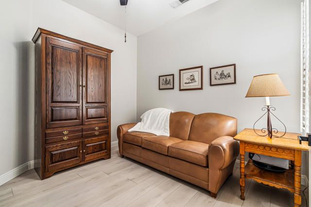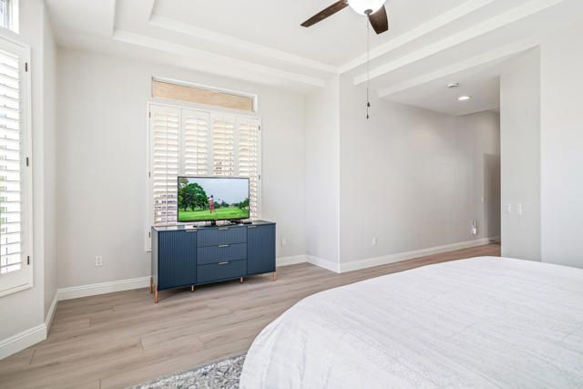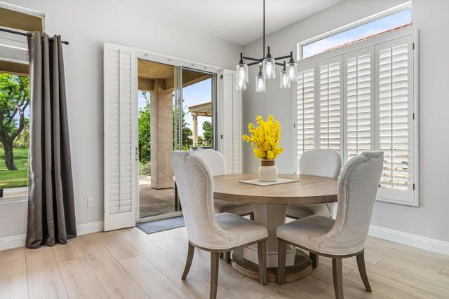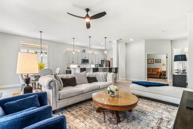 DRAMATIC MOUNTAIN & FAIRWAY VIEWS from this beautifully updated Merion plan on the 13th fairway in Heritage Palms. This 1707 sq. ft. OPEN great room plan features 2 bedrooms, 2 baths PLUS a DEN. The kitchen has been remodeled with custom full tile backsplash, refinished cabinetry, upgraded lighting, hardware and NEW stainless appliances. The entire home is also done in luxury vinyl flooring, taller baseboards and new door handles & hinges. The spacious primary suite has coffered ceilings, the optional bay window, large walk-in closet, new quartz vanity top, custom cabinetry, dual vanity sinks, custom mirror, lighting and large shower. The guest bathroom has also been updated. Additional features include all new inside paint, shutters, courtyard entry and large peaceful & private covered rear patio to enjoy the fantastic mountain and fairway views. Heritage Palms is a premier adult community featuring an 18 hole championship golf course, pickleball courts, tennis courts, fitness center, indoor & outdoor pools, grill room, billiards room, card rooms, social clubs and more.