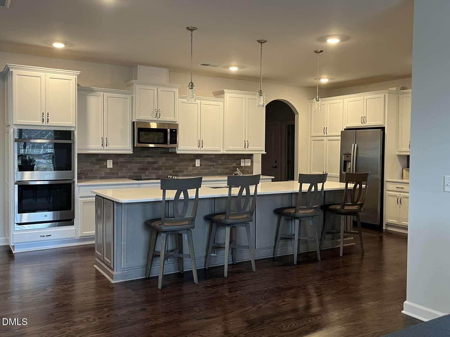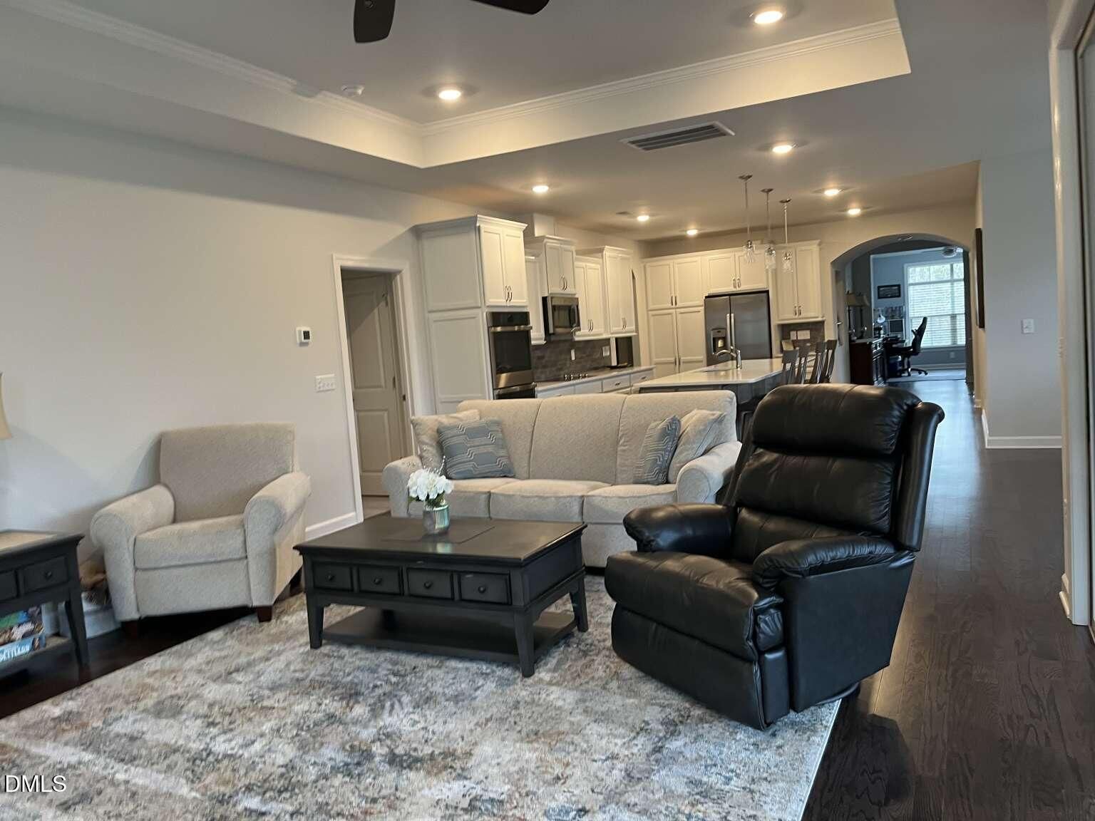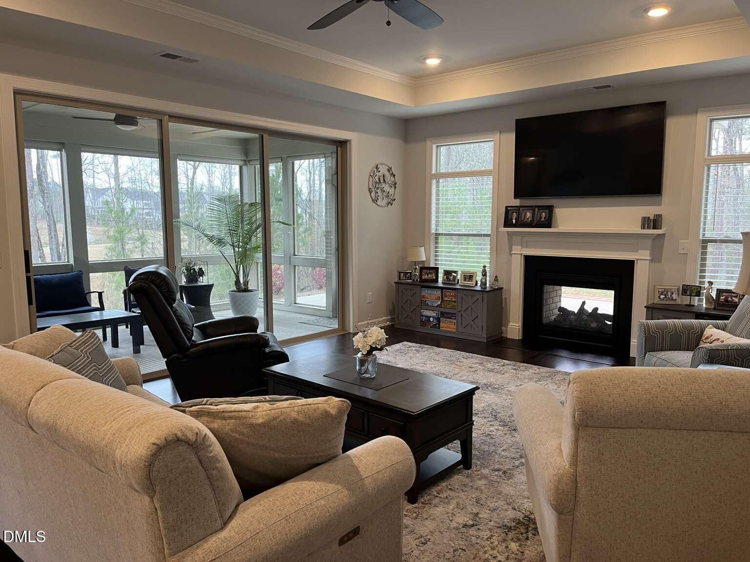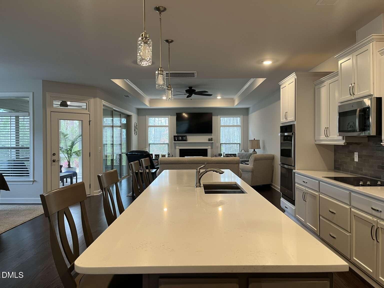 Perfectly located gorgeous (80/20) 55+ community. This stunning 3-bedroom plus office, 3 full-bath home boasts an open-concept design, soaring 9-foot ceilings, and rich hardwood floors. The kitchen features dual oven, white cabinetry, stainless steel appliances, and a large quartz-covered island. Located within ½ mile of the American Tobacco Trail and walking greenways throughout surrounding communities.