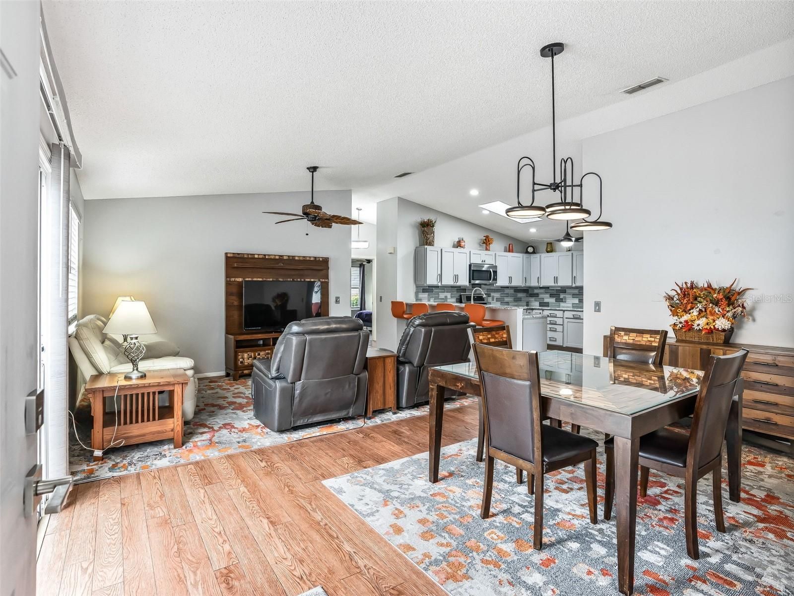 - Cathedral Ceiling(s), Ceiling Fan(s), High Ceilings, Living/Dining Room, Open Floorplan