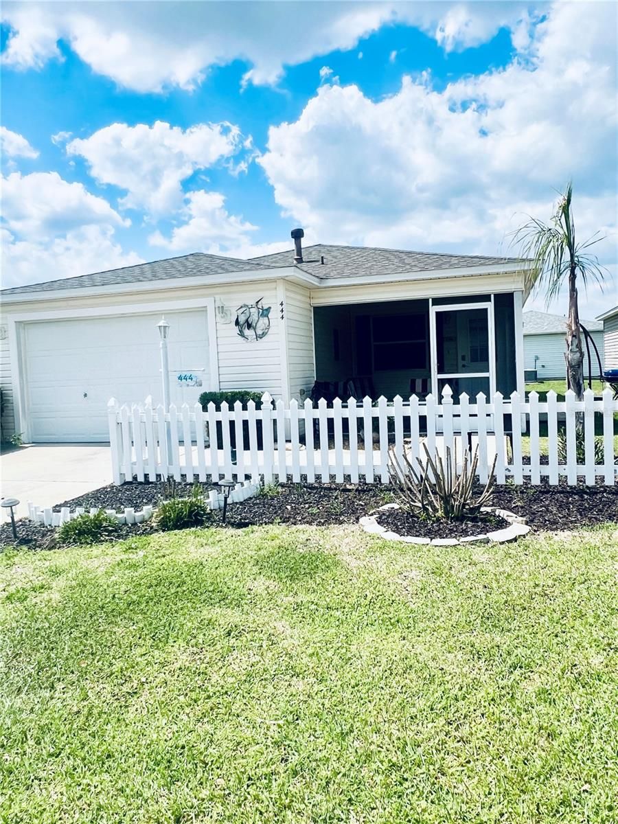 LOCATION is the key to this beautiful TURNKEY home. This Charming 2 BD/2 BA REMODELED Patio Villa is located in the VILLAGE of BELVEDERE just south of CR 466 corridor (Between the 6"s). Better yet only minutes from restaurants, shopping (Costco), banks, library, pools, golf courses and LAKE SUMTER LANDING. This home is just down the street (not in a maze) WITH YOUR GOLF CART ACCESS to almost everything you need! UPGRADES include GRANITE COUNTERTOPS, TILE WOOD LOOK FLOORS, PLANTATION SHUTTERS, LIGHT FIXTURES, UPGRADED FAUCETS, NICKLE RECEPTACAL PLATES, CABINET KNOBS AND MUCH MORE! STEP INSIDE TO FIND EVERYTHING IS DONE FOR YOU! READY TO BE MOVED IN OR YOUR NEW 2ND HOME! This home has VAULTED CEILINGS which provides a spacious feeling. Lani front porch faces EAST for sunrises and space shuttle takeoffs. Step inside with gorgeous WOOD LOOK TILE FLOORS that WELCOME you into OPEN FLOOR plan of dining area, living room and hallway. GORGEOUS LIGHT FIXTURES THROUGHOUT! Beautiful kitchen with granite countertops, Maple wood cabinets, Nickle door handles, nickel pull out faucet, pull out shelves, pendant lighting, single deep sink, pony breakfast bar, breakfast nook, pantry and updated light fixtures. Inside laundry room with washer and dryer. Large living room with planation shutters, ceiling fan and a pull-out couch for extra overnight guest. Spacious primary bedroom with KING SIZE Bed ceiling fan, planation shutters, vaulted ceiling and walk-in closet. Granite countertops with square sink, upgraded lighting, ungraded faucet, tiled floors are in both bathrooms. Primary bathroom a walk-in shower and guest has a tub/shower. Dimensional shingles roof (9/2020), HVAC (9/2020), HWH (2016), Interior paint (2020), Irrigation control panel (2020). Low Bond of $2,400. LOW MAINTENCE VILLA! “LOVIN THE VILLAGES LIFESTYLE” WITH FREE NIGHTLY ENTERTAINMENT, GOLF COURSES, POOLS, RECREATION CENTERS, PICKLE BALL, RECREATION CENTERS AND LIST GOES ON. Some furniture has been removed/replaced in photos. Do not miss this home! It is a MUST HOME!