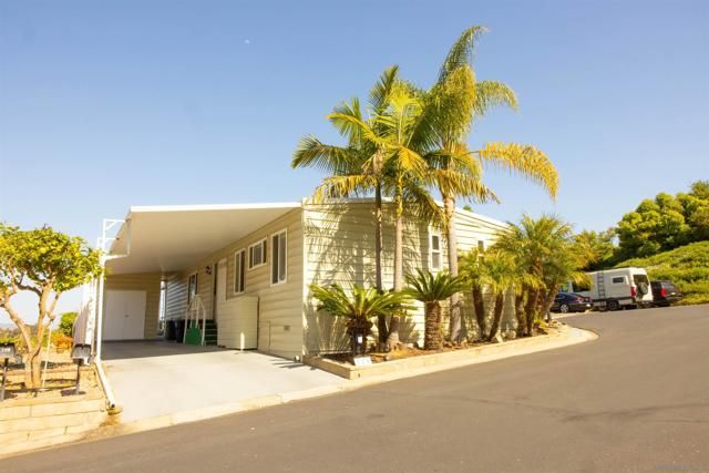 Possibly the best lot in Park Encinitas. Last house on the only single loaded street in Park Encinitas offers ultimate privacy and panoramic views. Home was tastefully and extensively remodeled in 2021 with new paint in and out, new laminate flooring, new A/C, new water heater, New Bosch dishwasher, molding and much more. Home is situated directly adjacent from private (community) garden. Senior 55+ land owned community. Where else can you own a private view lot in this idyllic beach town for less than $800,000. Don't let this opportunity get away.