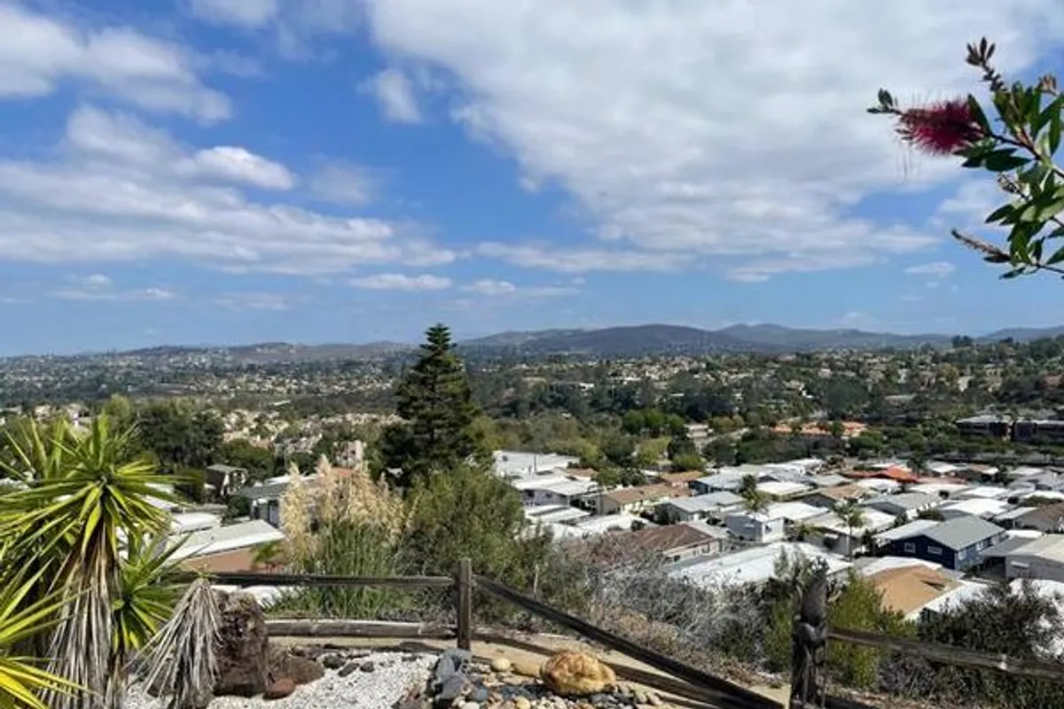 BEST VIEW LOT, of exceptional size, available within the highly sought after and desirable "land owned" 55+ community of Park Encinitas. Privately located at the end of the street on top of the hill, the panoramic views from two sides are unequaled! It may be the best buildable lot within East Encinitas, for the price. The majority of the value being in the land, the potential buyer will likely choose to remove the existing 1971 unit and place a new MFH on this exceptional property. Park Encinitas is on track to be one of the best real estate opportunities available in the North County coastal areas. Many people are beginning to understand and appreciate the major advancements in the MFH technology and quality. This beautiful community is going through a transition. Just drive around within the PE community to see examples of the many fine newer homes beginning to grow in numbers. Low HOA of only $275.00.
