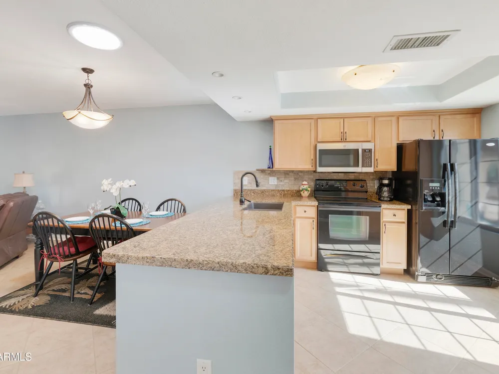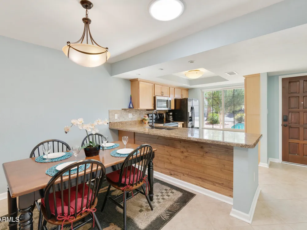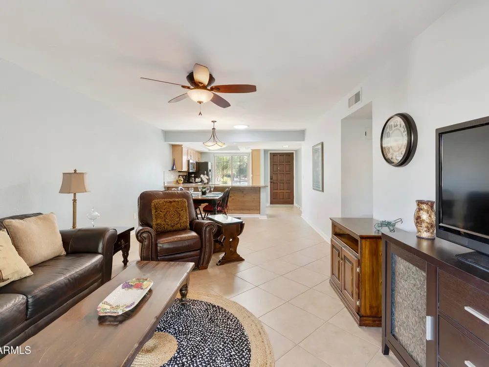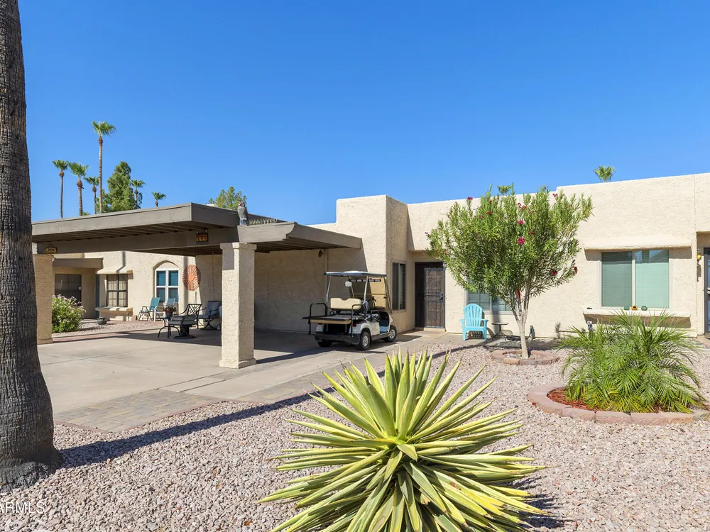 Welcome to the highly sought-after 55+ community of Fountain of the Sun! This inviting 2-bedroom, 1.75-bathroom condo offers 1,032 sq ft of cozy, fully furnished living space—move-in ready with thoughtful updates throughout. Recent upgrades include new dual-pane windows and sliders (2019), solar tubes (2020), a 2023 HVAC unit, and fresh interior & exterior paint. The kitchen features granite countertops, updated cabinetry with pull-out drawers, and a breakfast bar that opens to the dining area. You'll also love the new front patio with pavers and a covered back patio with east/west exposure—perfect for relaxing desert evenings. Sorry this is a NO PET AREA! CLICK MORE... Convenient to the US 60 and Red Mountain freeways, Mesa Gateway Airport, Sky Harbor, and Costco. Walking distance to the mailbox, guest parking, and heated pool/spa. If shopping & dining out is your thing...Superstition Springs & San Tan Mall are a short drive away. Enjoy the Country Club & Golf Community offering a lake, golf course, and tons of planned activities: pickleball, BOCCE, fitness, billiards, library, horseshoes, arts & crafts, card room, shuffleboard, and more! Birdie's restaurant is open daily!