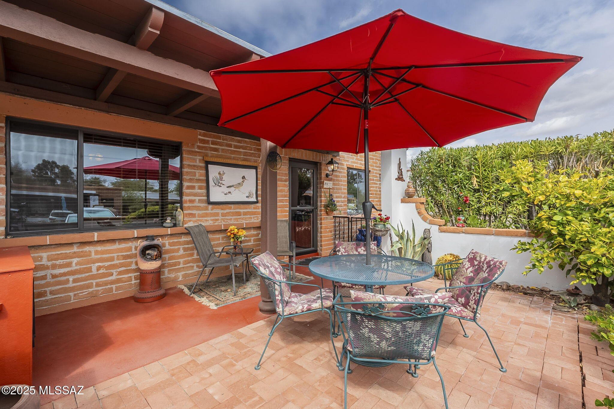 Experience the beauty of this Fully Furnished 2-bedroom villa with Breathtaking Mountain Views! You'll love the vibrant southwestern decor, newer windows, orange tree, and tile flooring throughout. The kitchen has full size appliances, and your reserved parking space is directly in front of the unit. Entertaining friends and family inside the condo or on the well-appointed private front courtyard will be great fun. This East-facing unit offers beautiful sunrises, views of the mountains turning pink at sunset, and relaxing shade in the late afternoon and evening. Take a very short walk to one of the heated pools or to enjoy the nearby greenspace. The condo also has a newer roof (2022) and HVAC (2023). Rest easy knowing HOA dues cover exterior maintenance/paint, roof repair, HVAC,