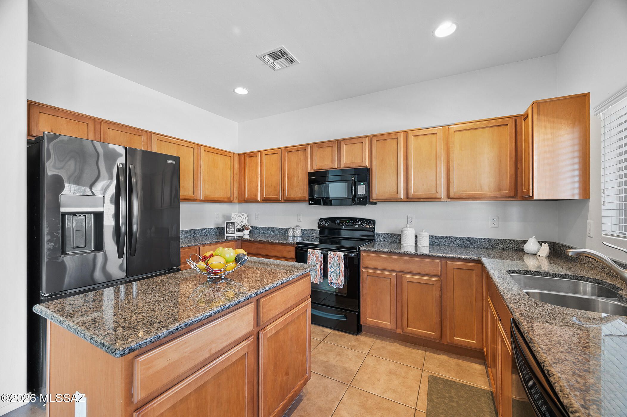 Best value for its size in Rancho Sahuarita and truly move-in ready. This popular Pulte floor plan offers quality construction, modern style, and exceptional functionality in a desirable master planned community. Featuring 4 bedrooms and 3 full baths, including a convenient downstairs bedroom and bath for guests or multigenerational living, plus a spacious upstairs loft for flexible living. The kitchen boasts granite counters, a functional U-shape layout, and abundant cabinet space. Fresh interior paint and new carpet throughout. Every bedroom has a walk-in closet with excellent storage options. Enjoy a full-length covered patio, backyard citrus trees, water harvesting for landscape efficiency, solar for energy savings, and a 2-car garage. All appliances included! Schedule a showing today