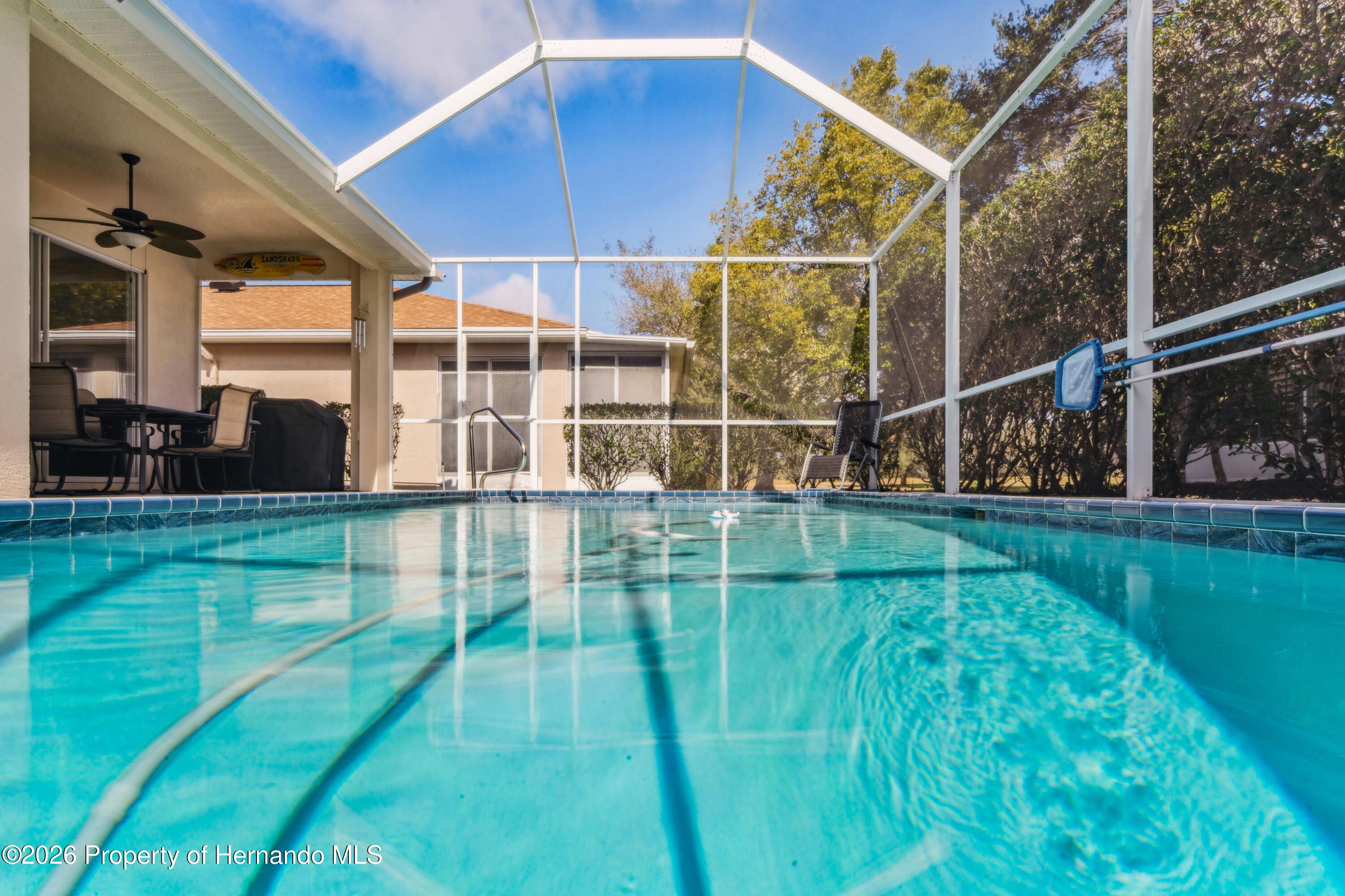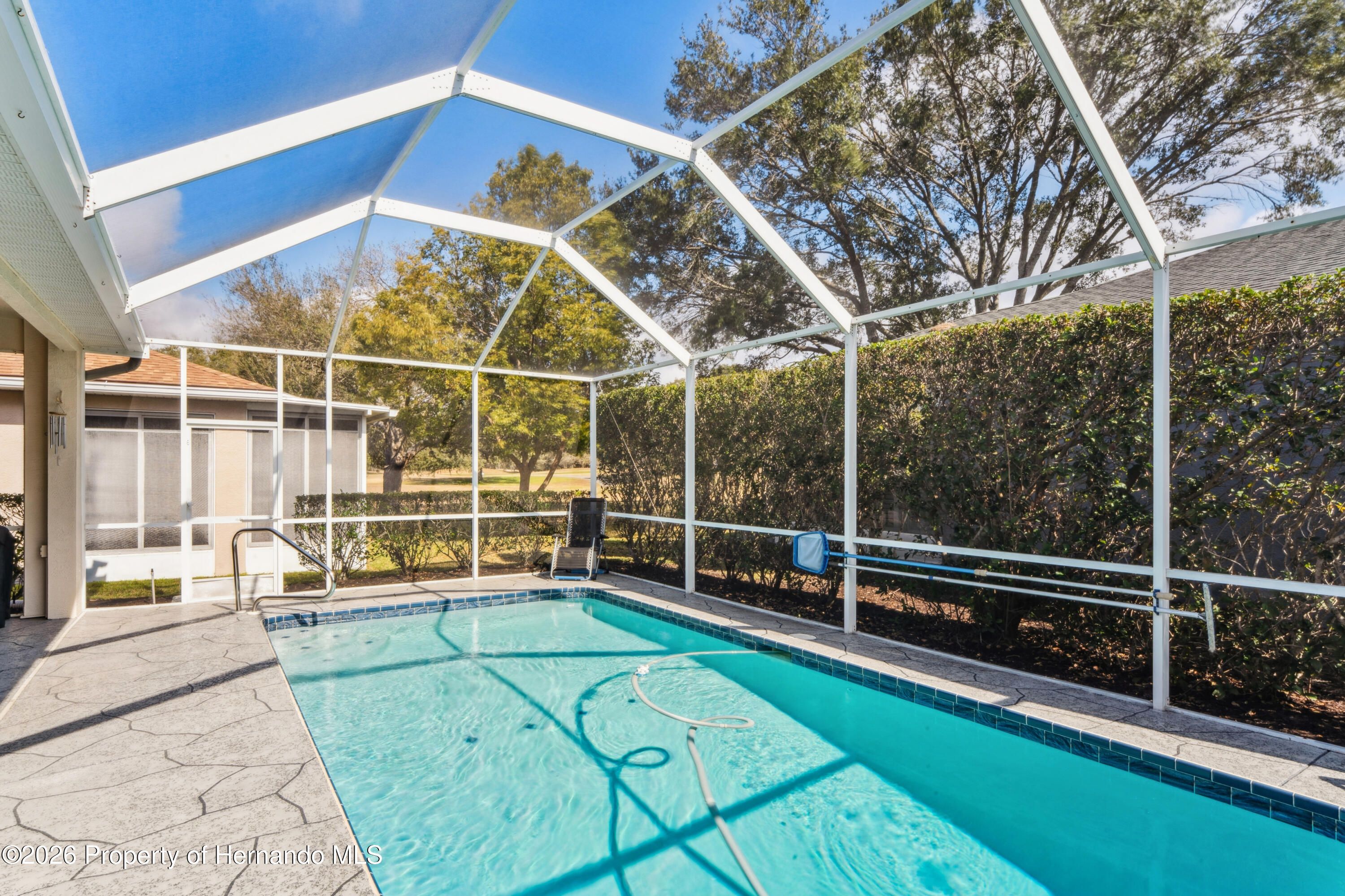 This gated 1,720 sq. ft. 2 bed & 2 bath Villa in Silverthorn sits on an oversized corner lot with a private pool and golf course views. The open floor plan features real wood flooring, split bedrooms, a flex room, and an updated kitchen and bathrooms with stainless steel appliances. The private pool has been recently upgraded with a new pump, resurfacing, and new screen enclosure. Conveniently located near community amenities including basketball, pickleball, tennis, a swimming pool, and fitness center. HOA fees include Basic cable & internet, yard maintenance, and exterior painting—perfect for low-maintenance Florida living.