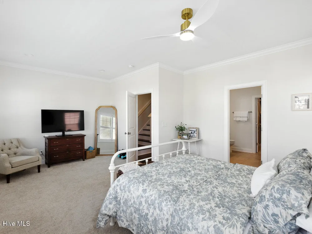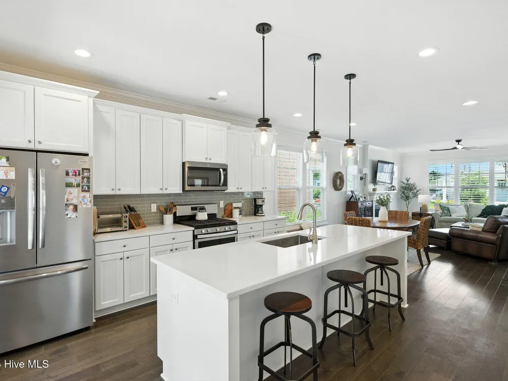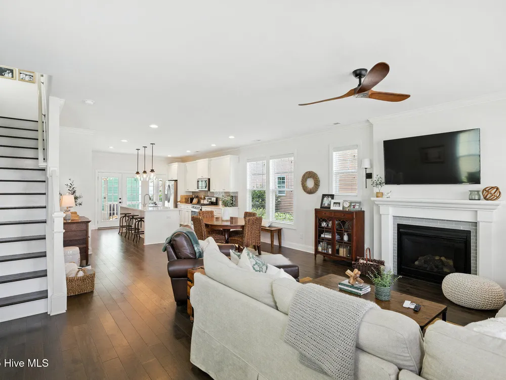 Welcome to your ideal home in the waterfront community of Riverlights! This better-than-new beauty offers over 2,300 square feet of well-designed space with 3 bedrooms, 3.5 baths, and a flexible bonus room--all with peaceful lake views that make everyday feel like a getaway.Step inside and you'll immediately notice the coastal charm. Warm engineered hardwood floors run throughout the main living areas, and little upgrades like plantation shutters on the front windows, crown molding, and custom trim give the home a polished yet relaxed feel.The great room is open, bright, and inviting--perfect for cozy nights by the gas fireplace or hosting friends. The kitchen is a showstopper with its big center island, brand new quartz countertops, stainless steel appliances, natural gas range, and a spacious walk-in pantry with upgraded wood shelving.Just off the garage, there's a super handy mudroom with built-ins to keep everything tidy after a beach day or walk around the neighborhood.Each bedroom has its own private bathroom with tile floors and great closet space, while the upstairs bonus room (with hardwood floors and its own balcony!) gives you all kinds of options--guest room, home office, movie room--you name it.Outside, unwind on the screened porch or hang out in the courtyard-style patio with stone paver paths and lush landscaping. And the rear-entry 2-car garage keeps the front of the home looking clean and welcoming.Living in Riverlights means more than just a beautiful home--you'll have access to miles of trails, a fitness center, community pool, and a riverfront boardwalk full of great spots to eat, shop, and hang out. Plus, Downtown Wilmington is just a short drive away.Seller Offering $5,000 in closing cost to buyer.