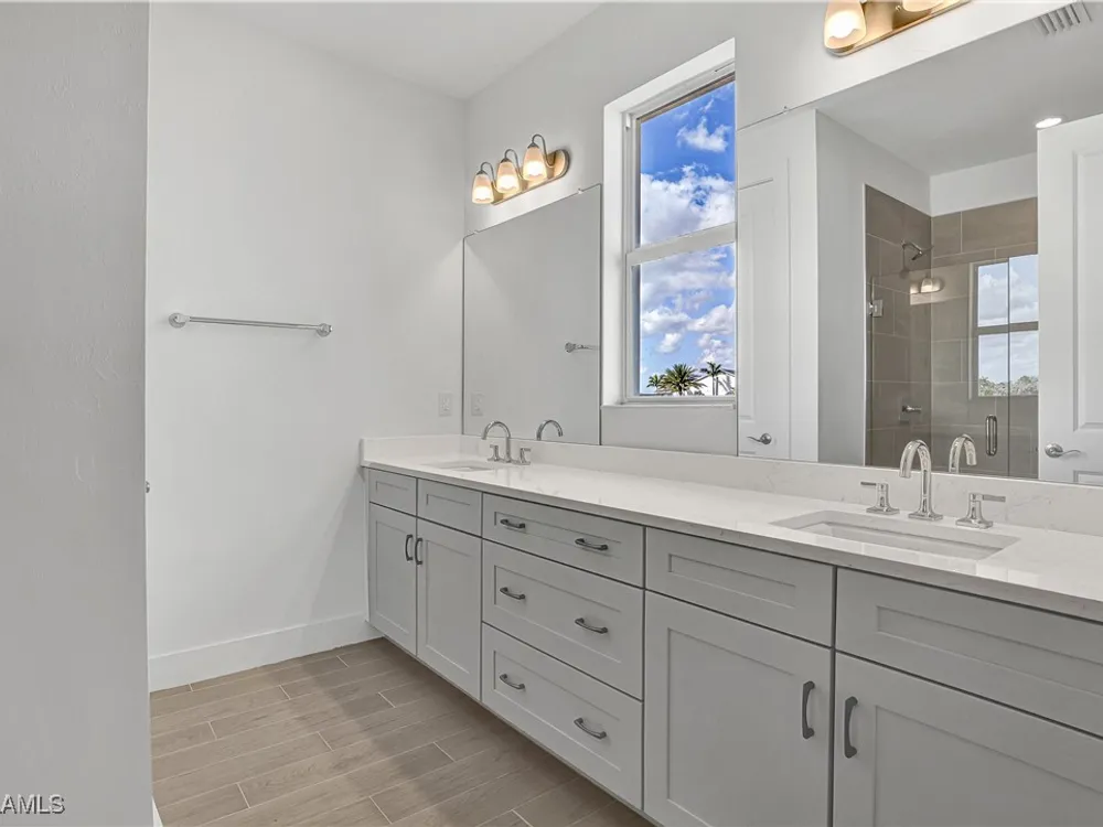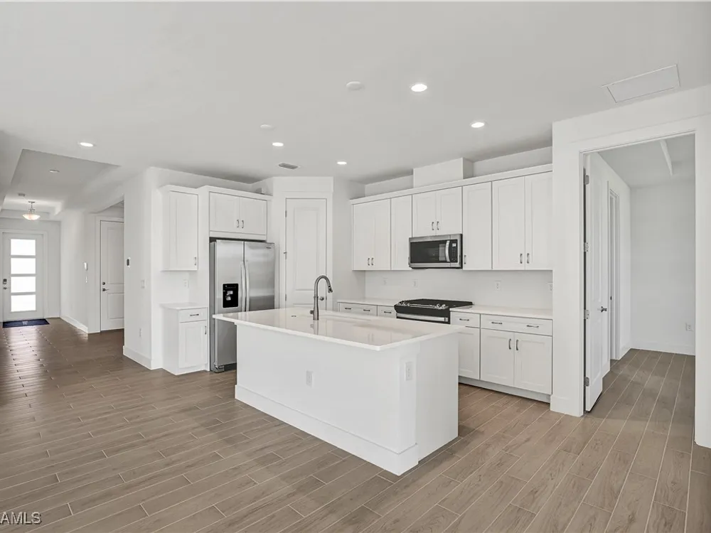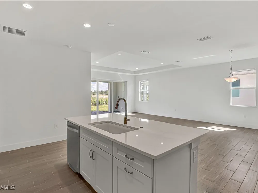 Welcome to your dream home in the highly sought-after, ever-growing, and innovative Babcock Ranch community! This exquisite 2,080-square-foot Birchwood Transitional single-family home perfectly blends modern luxury with timeless design. Offering spacious bedrooms, spa-like bathrooms, and a grand two-car garage, this residence is thoughtfully crafted to provide the comfort and elegance you deserve. Every detail has been carefully curated, highlighted by stunning upgraded Shaw tile flooring flowing seamlessly throughout the entire home—no carpet here—ensuring a sleek, clean, and easy-to-maintain aesthetic. The chef’s kitchen is truly the heart of the home, outfitted with top-of-the-line Whirlpool stainless steel appliances, wood cabinetry, and luxurious quartz countertops. A glossy backsplash and soft-close cabinets add both style and practicality, offering ample storage and an elegant finish. The high-end design continues into the primary and guest bathrooms, which feature quartz countertops and warm wood cabinets that create a serene, spa-like atmosphere. Upgraded soft-close drawers and cabinets complement the bathrooms’ luxe appeal, perfectly balancing beauty and functionality. When it’s time to unwind or entertain, the upgraded outdoor living space is sure to impress. Step through the expansive sliding glass doors onto a spacious covered lanai designed for comfort and privacy. With a full-height exterior privacy wall and pre-plumbing ready for your future outdoor kitchen, this space is ideal for hosting guests or enjoying tranquil evenings at home. Built with your safety and peace of mind in mind, this home includes hurricane-impact glass windows and doors throughout, providing protection during Florida’s hurricane season. Constructed to the latest building codes and backed by a builder’s warranty, it offers lasting value and security. Located within Regency at Babcock Ranch—the only gated 55+ natural gas community within the prestigious Babcock Ranch master plan—this home promises a maintenance-free lifestyle in a serene, resort-style environment. This exceptional property embodies the best of Florida living and won’t last long. Don’t miss your chance to experience the luxury, comfort, and lifestyle you’ve always dreamed of. Residents of this vibrant 55+ community enjoy exclusive access to a private amenity center with a full-time lifestyle director, fitness facilities, resort-style pool, pickleball courts, tennis, golf simulator, social events, and more. Schedule your private tour today! Please see MLS supplements for interior design selections and floor plan layout. Lot 4767