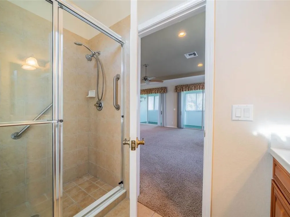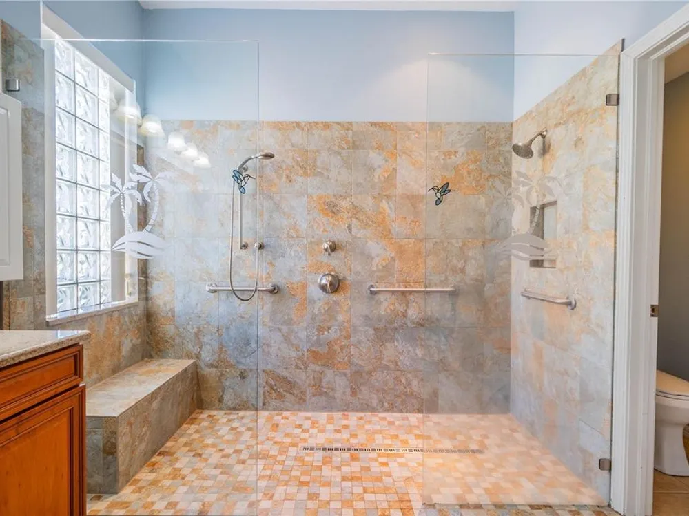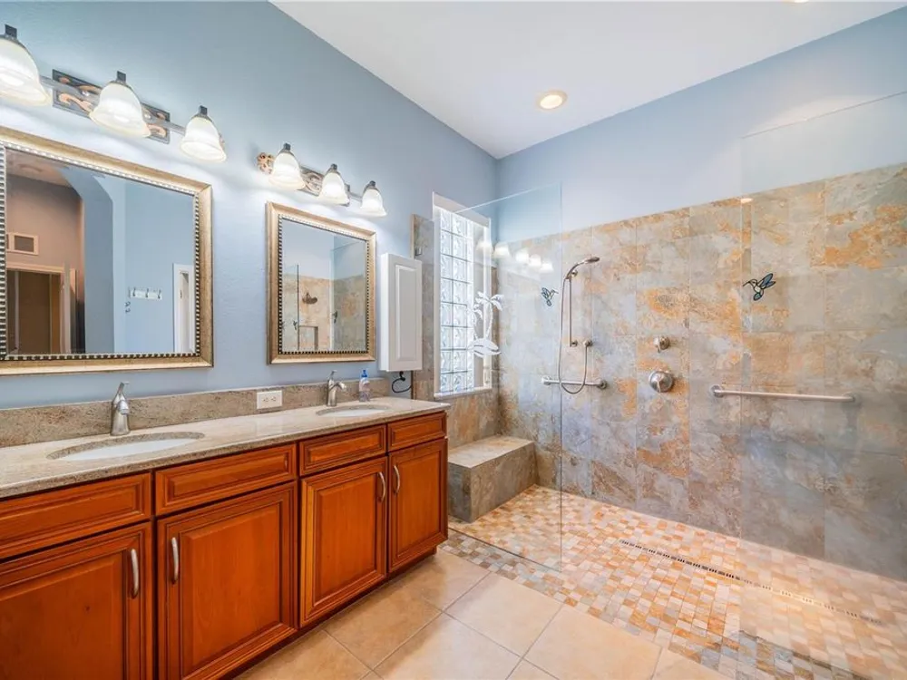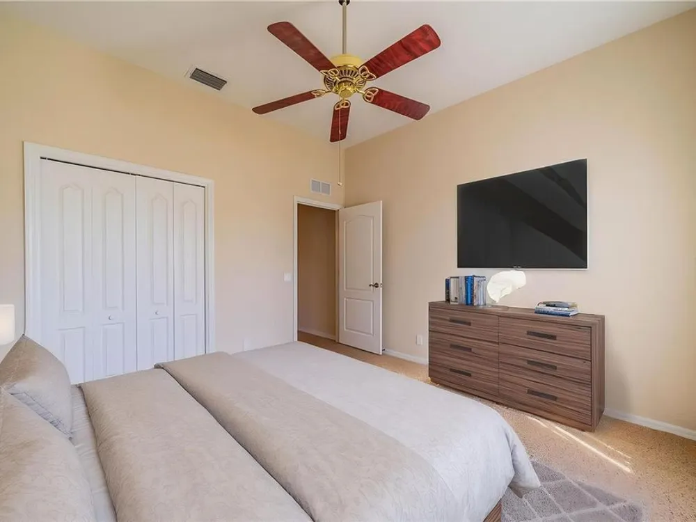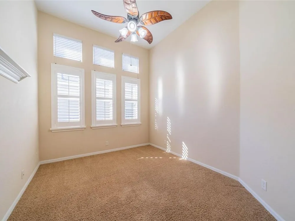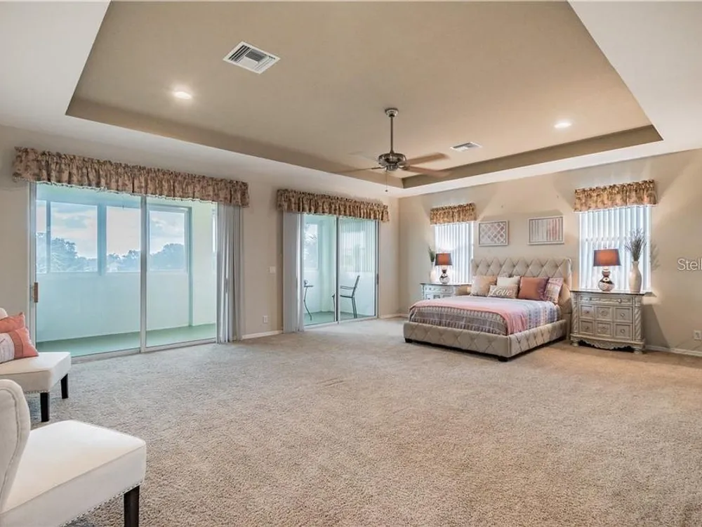 - Ceiling Fan(s), Coffered Ceiling(s), Eat-in Kitchen, High Ceilings, Living/Dining Room, Open Floorplan, Main Level Primary, Split Bedrooms, Stone Counters, Tray Ceiling(s), Walk-In Closet(s), Window Treatments