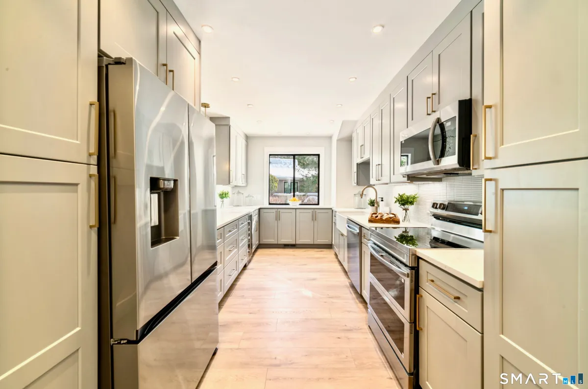 Look no further--your beautifully updated home in the award-winning 55+ community of Oronoque Village awaits. This expanded Whittier model offers 2 bedrooms with flexibility for a third, 3 full bathrooms, and 2,420 sq ft of thoughtfully renovated living space designed for comfort and elegance. The main level features a stunning new kitchen with quartz countertops, soft-close cabinetry, two pantries with pull-out shelving, a farmhouse sink, and brand-new stainless-steel appliances including a double oven with air-fryer mode, French-door refrigerator, and wine/beverage cooler. The kitchen opens to the living room with vaulted ceilings, a porcelain-tiled fireplace with shiplap detail, and a dedicated office nook. Also on the main level are a spacious primary suite with a spa-like renovated bathroom and walk-in closet, a secondary bedroom that can be used as an office or den, an additional full bathroom, main-floor laundry, and an expanded entryway with picture window and coat closet. The fully finished lower level, accessible from the parking area, offers a large renovated living space, full bathroom, bonus room ideal for an office or guest room, interior access to the one-car attached garage, a second laundry area, ample storage, and a newly installed exterior door. Additional updates include a new furnace (2025), hot water heater (2023), whole-house Generac generator, fresh paint, luxury plank flooring, new blinds (to be installed), and recessed LED lighting throughout. Oronoque Village is Fairfield County's largest 55+ community, offering an exceptional lifestyle with three swimming pools (including one heated), fitness centers, tennis and pickleball courts, and a wide variety of social activities. Ideally located near golf courses, dining, shopping, healthcare, Metro-North, the Merritt Parkway, Route 8, and I-95, this home combines resort-style living with everyday convenience. See virtual tour of unit in MLS tab.