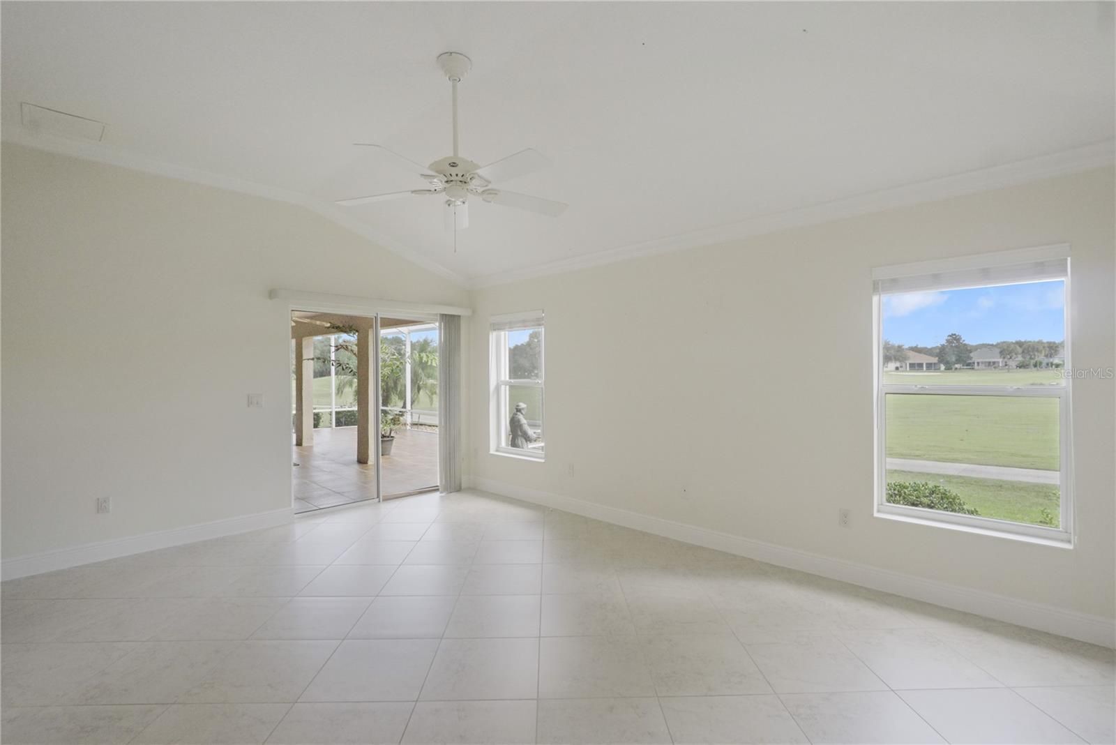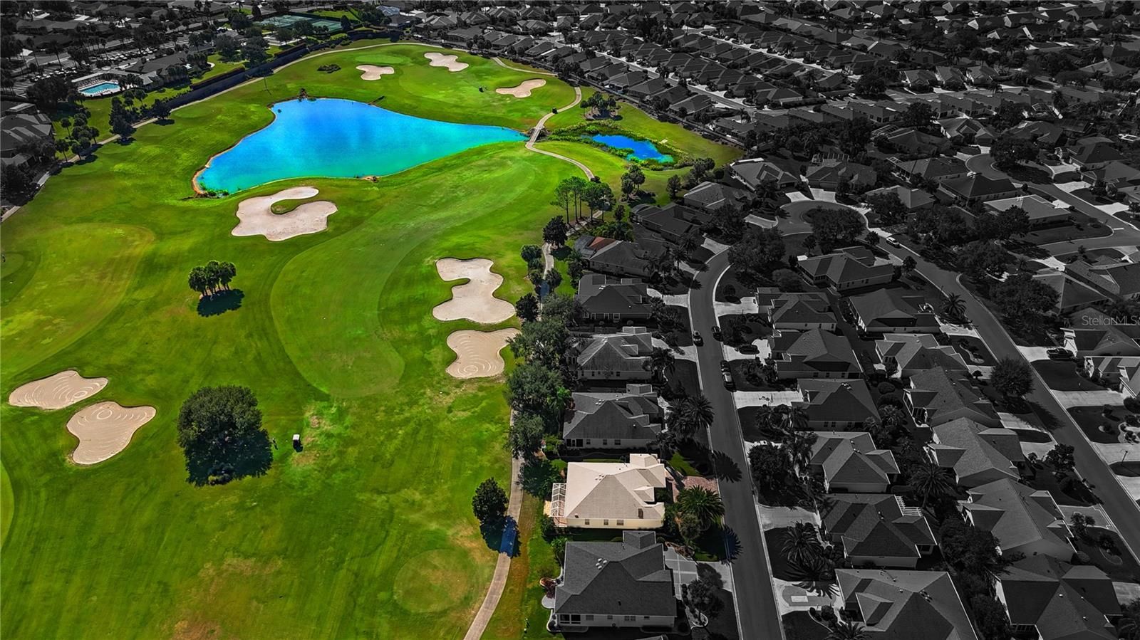 Spectacular Designer Home, the popular Gardenia model with breathtaking golf course views. Located directly on the 5th Fairway of the Caroline Golf Course with sweeping Double Fairway Views! NO BOND!!! This beautifully maintained home features a golf cart garage, a new Roof (2021), A/C (2017), and elegant upgrades throughout including 19” ceramic tile flooring, crown molding, and 5” baseboards. The gourmet kitchen is highlighted with granite countertops, newer stainless steel appliances—including a 2-door/2-drawer refrigerator, large microwave oven, range, and dishwasher—perfect for the chef at heart. The spacious primary suite offers a Roman shower, private water closet, and granite dual vanities. Enjoy true Florida living with an expanded outdoor oasis, featuring a covered lanai with summer kitchen and an additional birdcage enclosure, perfect for entertaining while overlooking the golf course. Just a short walk to the mail station, adult pool, and shuffleboard, or a quick car or golf cart ride to the family pool at Captiva Cay Recreation Center. Only 10 minutes by golf cart to Lake Sumter Landing where you’ll find shopping, groceries, dining, and nightly entertainment. A 2017 Yamaha golf cart is included, making this the complete Villages lifestyle package!