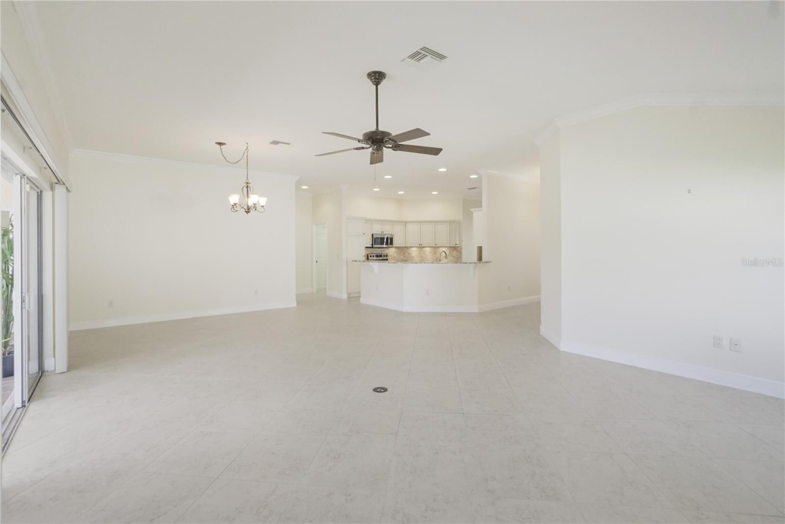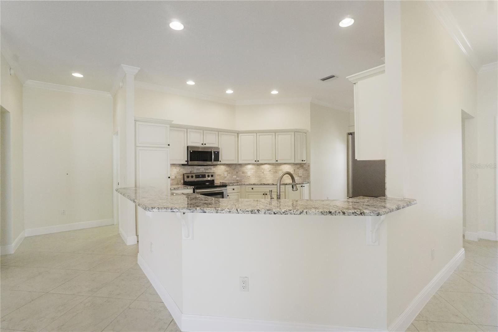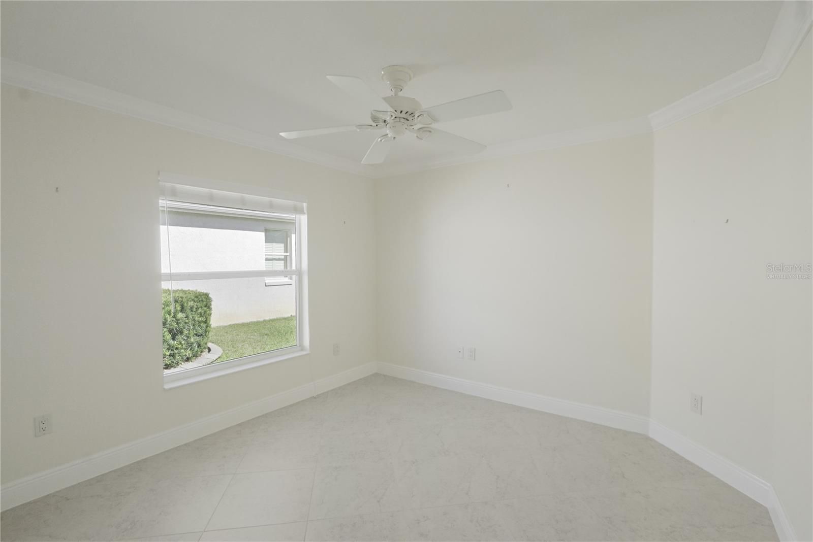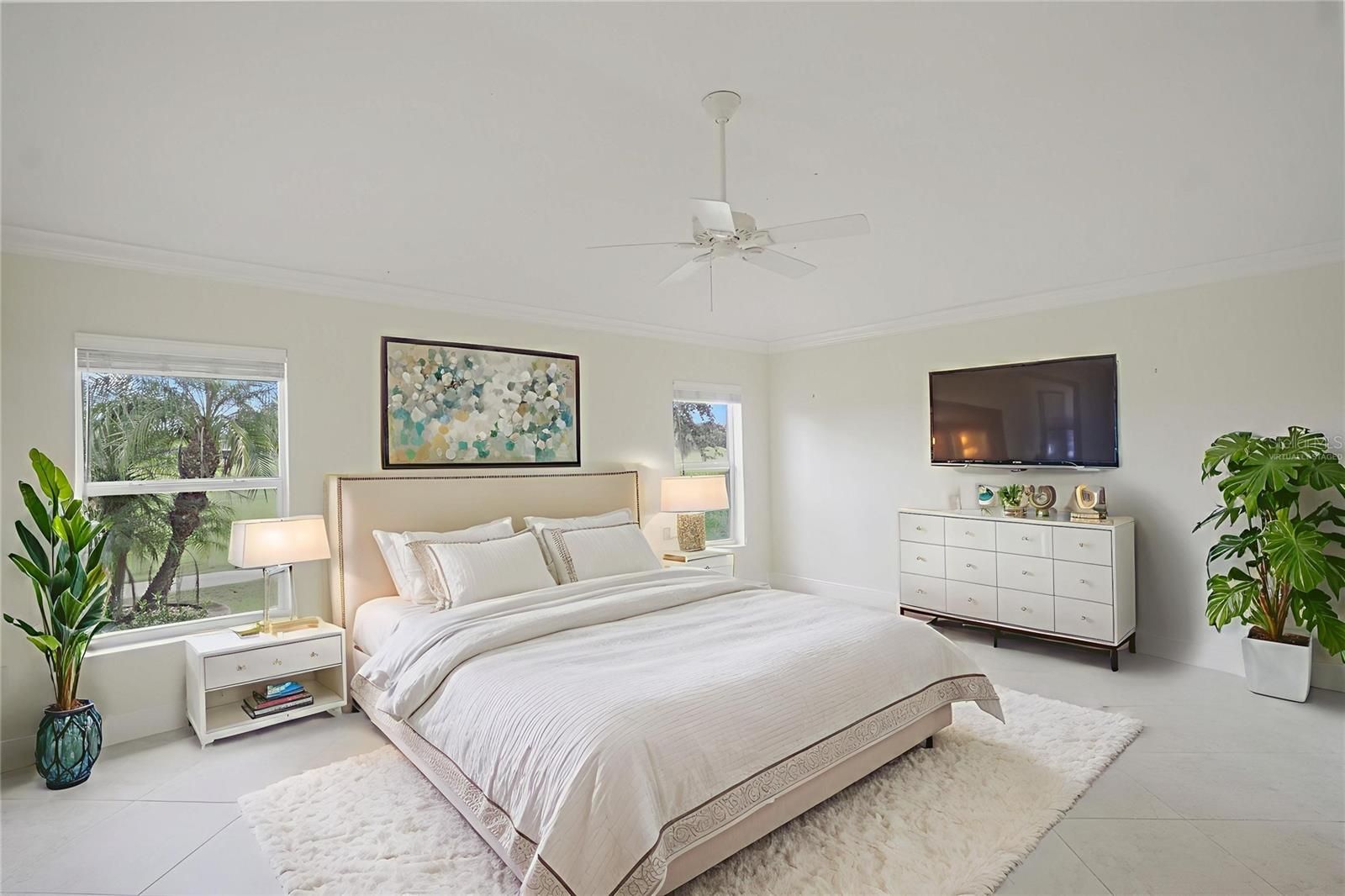 - Ceiling Fan(s), Crown Molding, Eat-in Kitchen, High Ceilings, Open Floorplan, Split Bedrooms, Stone Counters, Walk-In Closet(s), Window Treatments