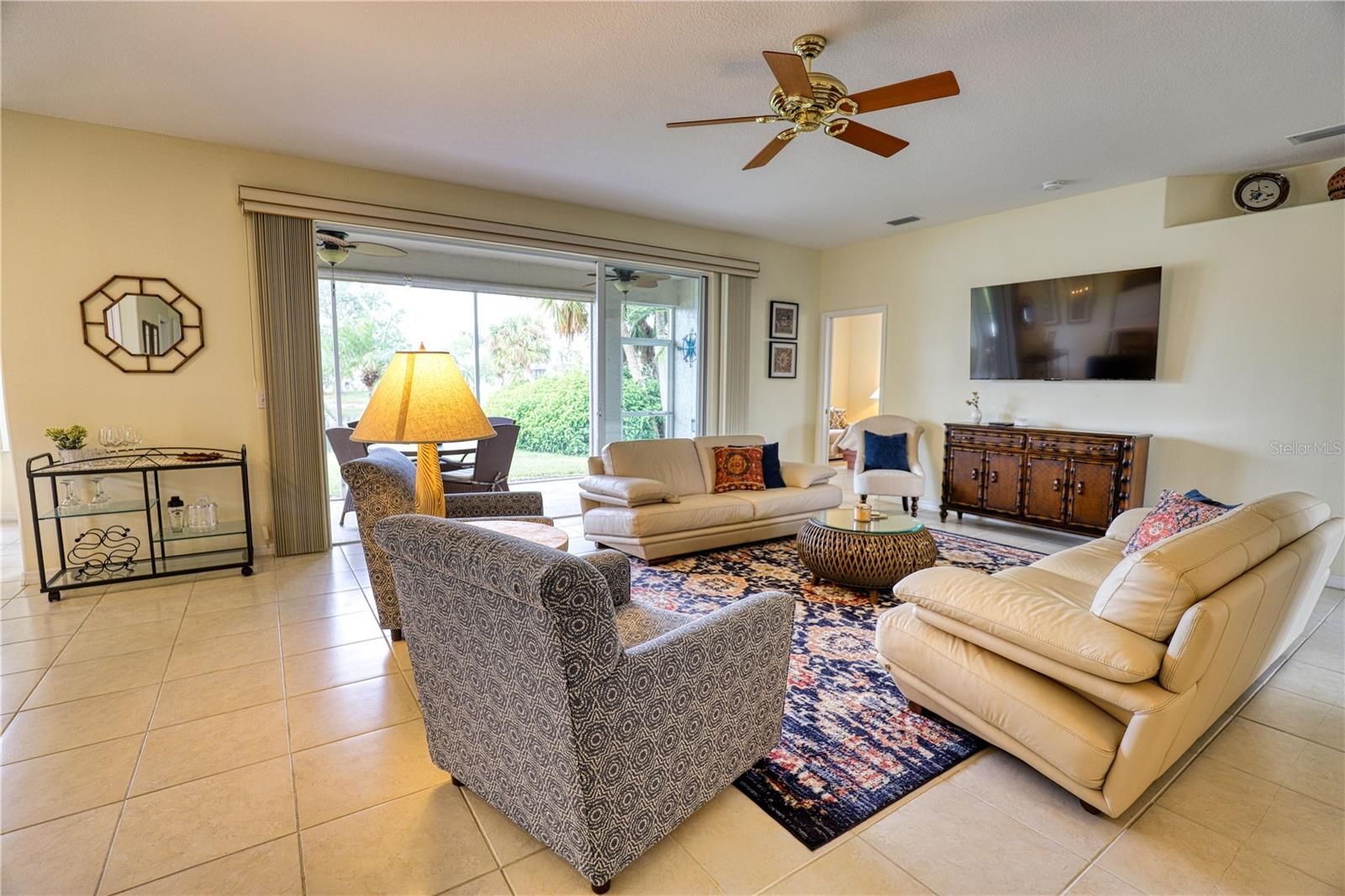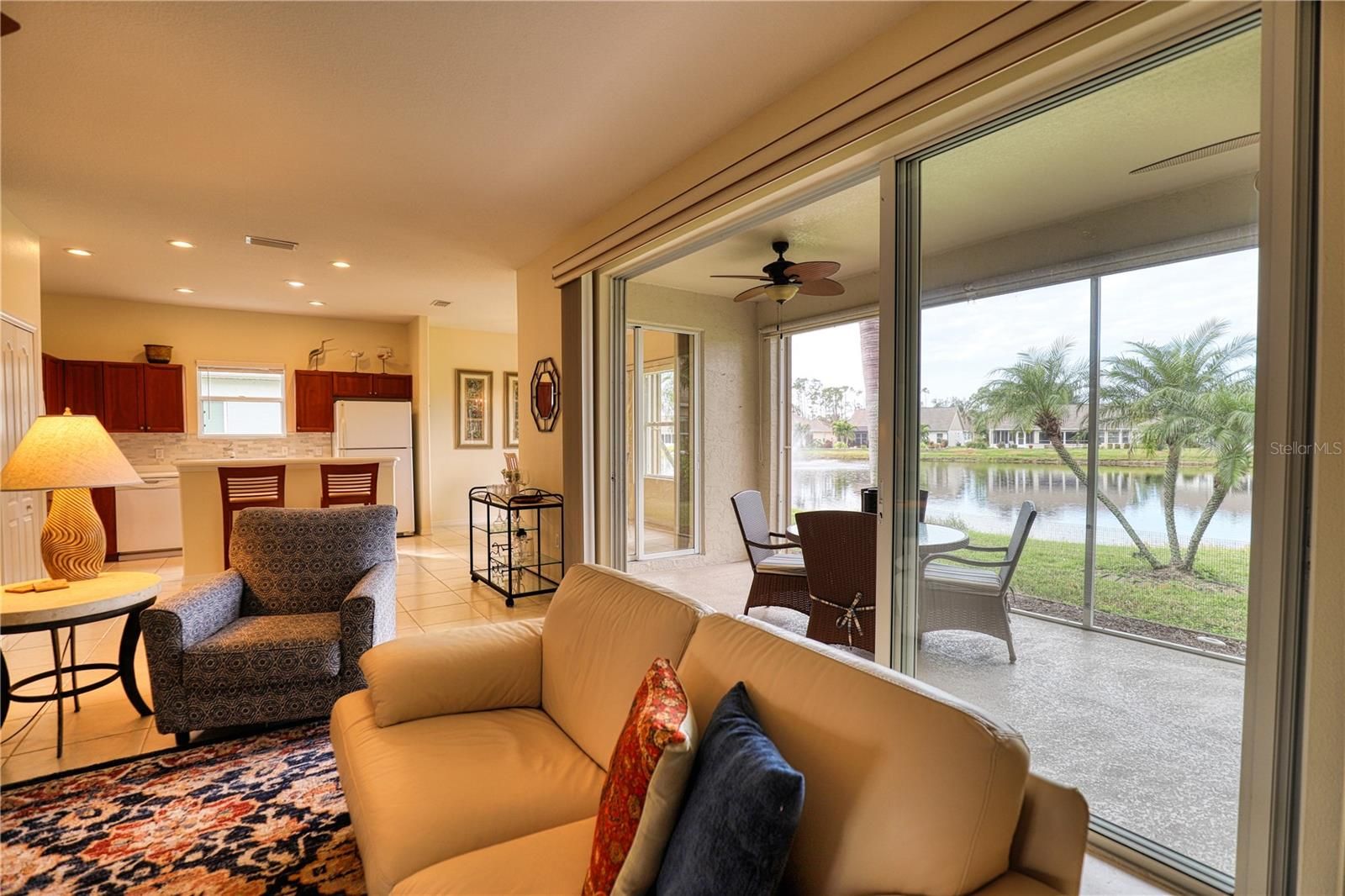 Turnkey furnished and beautifully appointed, this 2-bedroom/2-bath home plus den/office is nestled on a serene pond lot in the gated, 55+ Park Forest community. As you step inside, the neutral tile floors, bright paint palette, and open great room bathed in natural light immediately welcome you. A wall of sliders opens to a screened lanai with tranquil pond views and frequent birdlife. The kitchen features cherry cabinetry, solid surface countertops, a breakfast nook, and a raised bar with bay-window seating, all overlooking the water. Retreat to the owner’s suite, which offers dual closets and slider access to the lanai; the ensuite bath includes a double vanity, tiled shower, and linen closet. An additional bedroom, second full bath, and flexible den (ideal as a third sleeping area) complete the interior layout, with interior laundry and a two-car garage for added convenience, comes with NEW Hurricane shutters. Park Forest provides full maintenance services—lawn care, irrigation, exterior painting and roof replacement—as well as cable, internet, a clubhouse, heated pool and spa, tennis and pickleball courts, shuffleboard, social activities, and gated entry. Just 3.5 miles to the Gulf beaches and 1.5 miles to historic downtown Dearborn Street for dining, shopping, and weekly farmers markets.