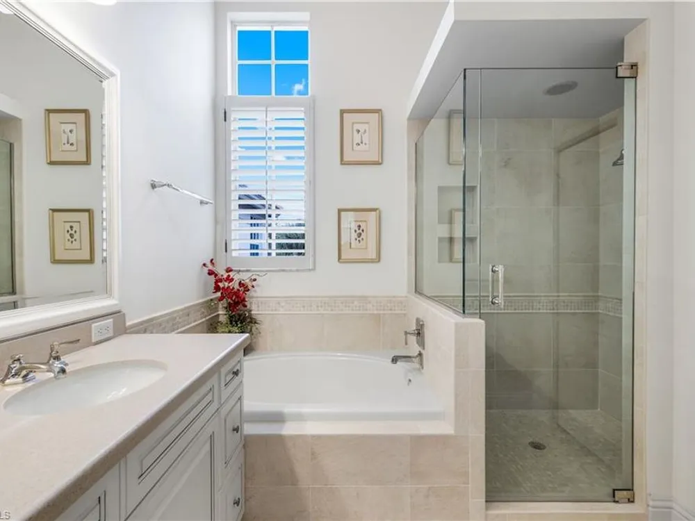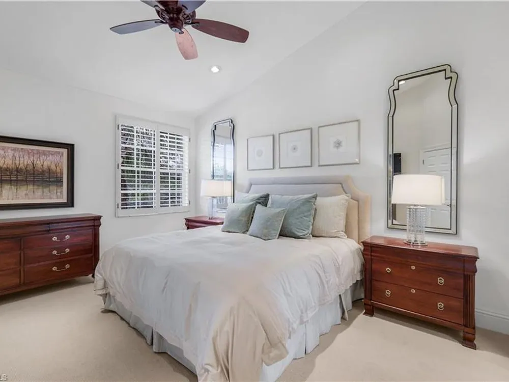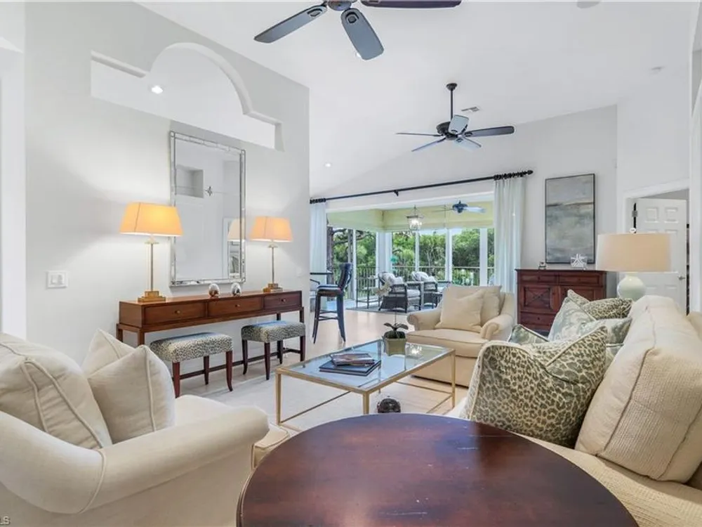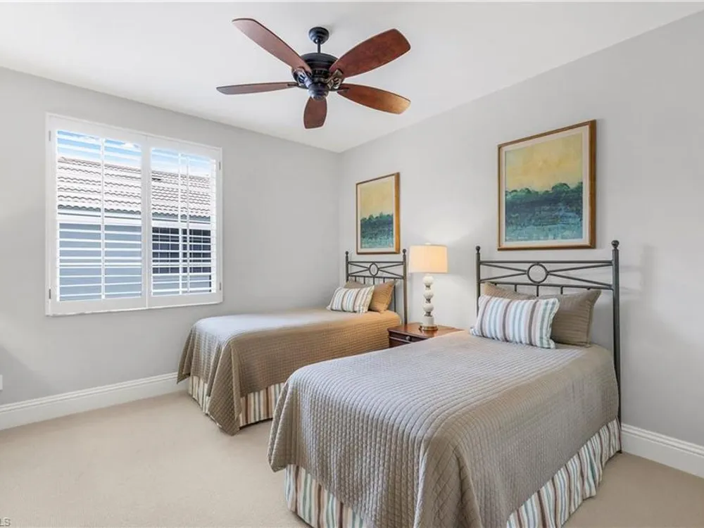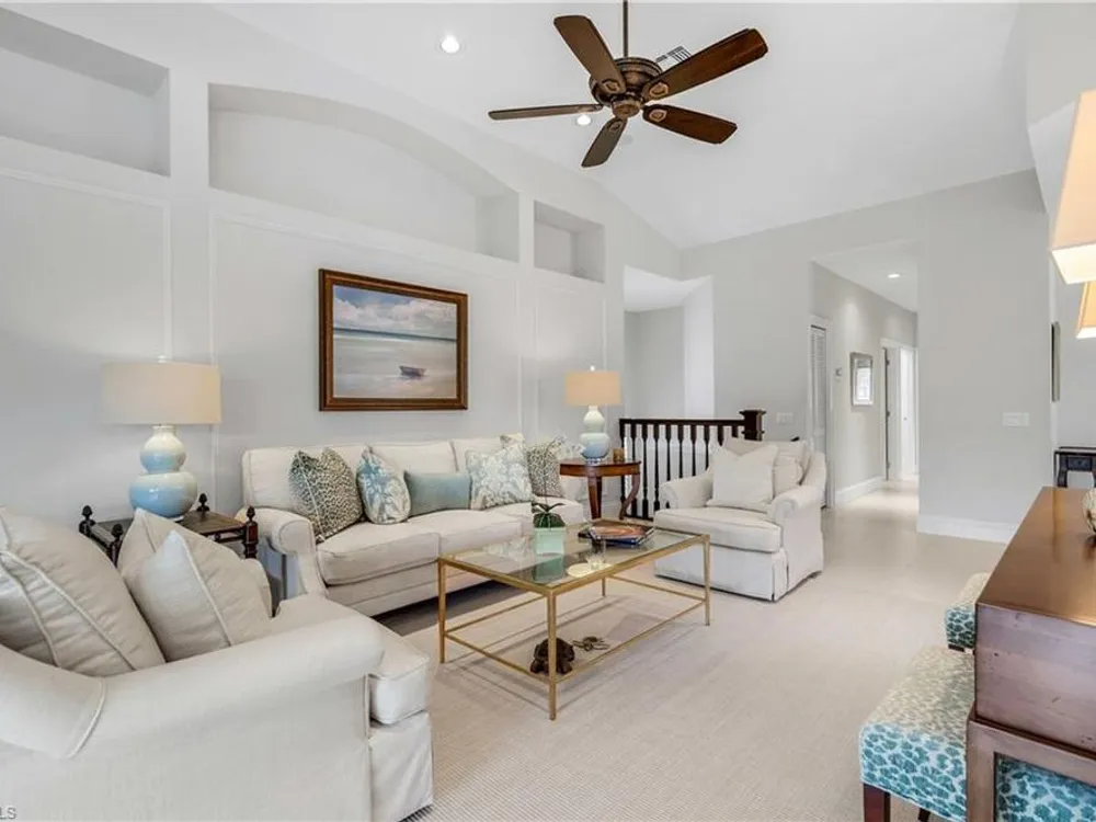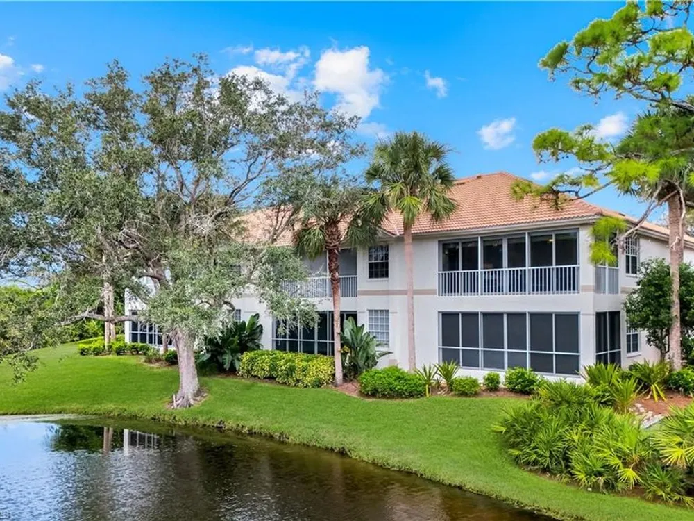 Welcome to exceptional living in the vibrant gated community of Bonita Bay. This luxurious residence offers stunning views of the lake and the surrounding nature. This stylish, second-floor condo features volume ceilings, three bedrooms, and two bathrooms, and tile floors enhancing the spacious great room design and relaxed dining room. The residence also offers a remodeled kitchen, bathrooms, plantation shutters, and turnkey furnished. Enjoy peace of mind with newly installed plumbing in 2025. Also included is an attached one-car garage, a neighborhood swimming pool, a hot tub, and a pavilion. The many amenities of Bonita Bay include tennis, pickleball, bocce, kayaking, canoeing, walking trails, playgrounds, a private beach club, Optional Golf, Sports and Social membership, dining at Backwater Jack's, and a full-service marina. Located conveniently near Coconut Point Mall, The Promenade, RSW International Airport, theaters, and the lively downtown area of Bonita Springs, this residence offers a blend of tranquility and the excitement of city life. Come experience the ultimate blend of luxury and leisure in this remarkable property.