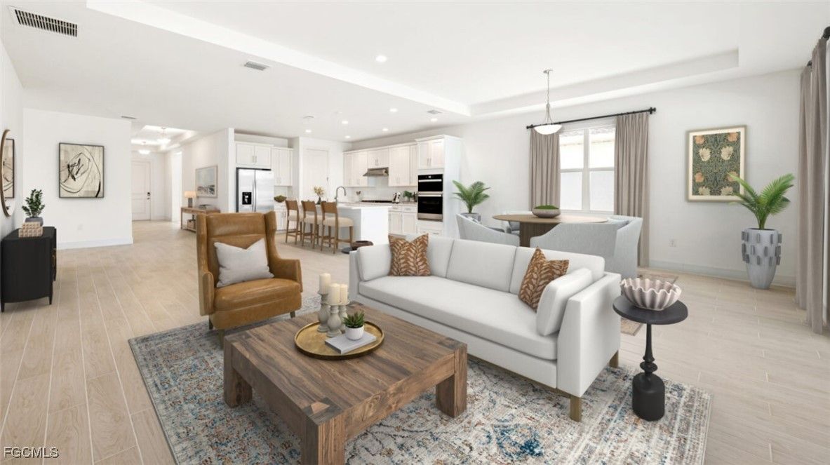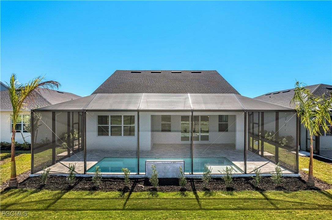 Welcome to The Riverland—a beautifully designed new-construction single-family home with a private pool, located in the heart of Babcock Ranch where sustainability and modern luxury blend seamlessly to create an exceptional lifestyle. Every detail in this thoughtfully crafted residence showcases comfort, functionality, and timeless elegance. Enjoy exceptional indoor-outdoor living with a large covered lanai that overlooks the beautifully designed pool, creating the perfect backdrop for relaxation, gatherings, or soaking up the Florida sunshine. Step inside to an inviting foyer that flows effortlessly into a bright, open-concept great room and casual dining area. Expansive windows fill the space with natural light, while upgraded tile flooring runs throughout—providing a clean, contemporary look with easy maintenance. At the center of the home is a stunning gourmet kitchen, ideal for daily living and entertaining alike. It features sleek quartz countertops, wood cabinetry with soft-close drawers, an oversized center island, and a spacious walk-in pantry. The primary suite is a serene retreat tucked privately at the rear of the home, offering tranquil views. The spa-inspired en suite bathroom includes dual sinks, an expansive, dual-head shower, and a generous walk-in closet—transforming everyday routines into a luxury experience. Built with quality and comfort in mind, this home features hurricane-impact windows and doors and is constructed to the latest building codes for ultimate peace of mind. Located within Regency at Babcock Ranch, the premier gated 55+ natural gas community within the prestigious Babcock Ranch master plan, residents enjoy a full resort-style amenity center just a short walk from home, offering an unparalleled, maintenance-free, resort-inspired lifestyle. Please see MLS supplements for interior design selections and floor plan layout. Lot 4770