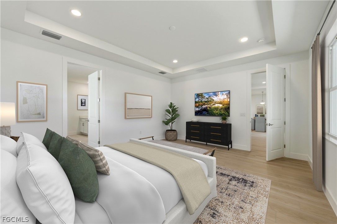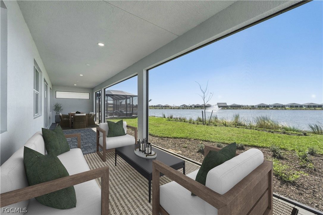 New construction luxury home offering tremendous lakefront views and a coveted southwest exposure for breathtaking Florida sunsets. Located in the premier Babcock Ranch 55+ community, this home features a thoughtfully designed open-concept floor plan with soaring ceilings, abundant natural light, and a spacious three-car garage ideal for storage, hobbies, or extra vehicles. The chef-inspired kitchen is a showpiece, complete with an oversized center island with breakfast bar, premium gas cooktop, sleek quartz countertops, soft-close cabinetry, ample counter and cabinet space, and a roomy walk-in pantry adjacent to a bright casual dining area. The secluded primary suite is a serene retreat, boasting an elegant coffered ceiling, generous walk-in closet, and spa-like bath with dual vanities, luxe shower, linen storage, and private water closet. Secondary bedrooms feature sizable closets and a shared hall bath, while additional highlights include a versatile flex room, conveniently located laundry, powder room, and abundant storage. Step outside to your patio to savor stunning lakefront views and glowing southwest sunsets—perfect for relaxing or entertaining guests. Steps away from +55 amenity center providing access to a full-service amenity center with a resort-style pool, fitness facility, tennis and pickleball courts, welcoming clubhouse, and a lifestyle director curating engaging social events and activities. Ask your sales consultant about our exclusive rate buydown program and how it can help lower your monthly payments! See MLS supplements for floor plan layout/interior design selections. Lot 4621.