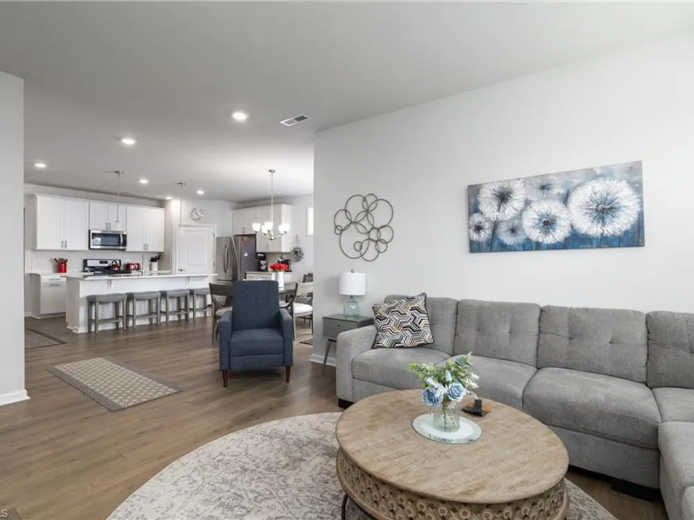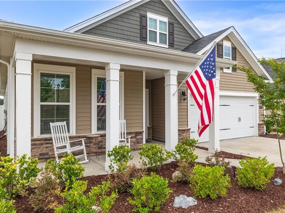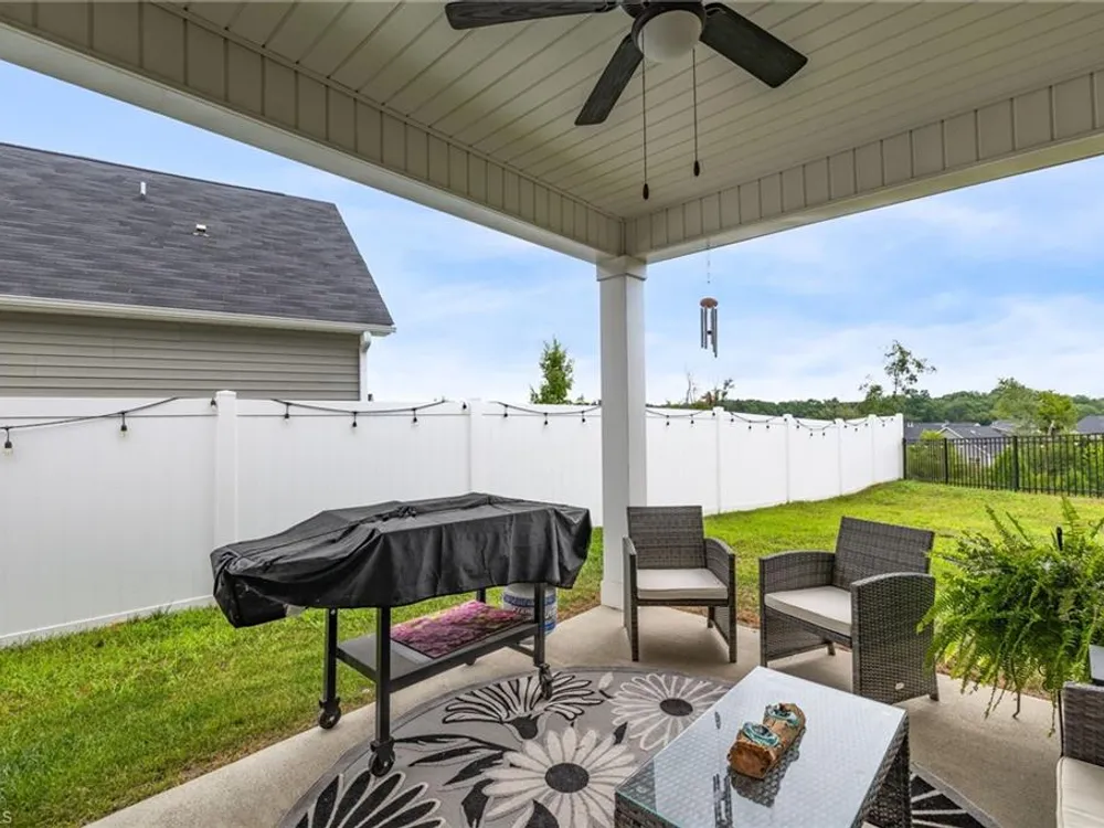 This spacious home includes 4 bedrooms, 3 bathrooms, flex room and a bonus room. The main level features an open floorplan with a great entertaining kitchen including a gas cook top, tile backsplash, granite counter tops and an oversized island that flows seamlessly to the living room with a gas fireplace. The Primary Bedroom has an ensuite bathroom & walk-in closet. There are two more bedrooms on the main level and a flex space with French doors that could be used as a home office/gym/hobby room. The second level has a bonus room perfect for lounging, a fourth bedroom & full bath to make this a great space for visiting guests. A covered patio space perfect for grilling opens to the backyard with a private feel as it backs up to trees and it is fenced in. It’s a short walk on the sidewalks to the neighborhood pool, playground, walking trails and pickleball courts all included in the HOA along with mowing the lawns that are not fenced.