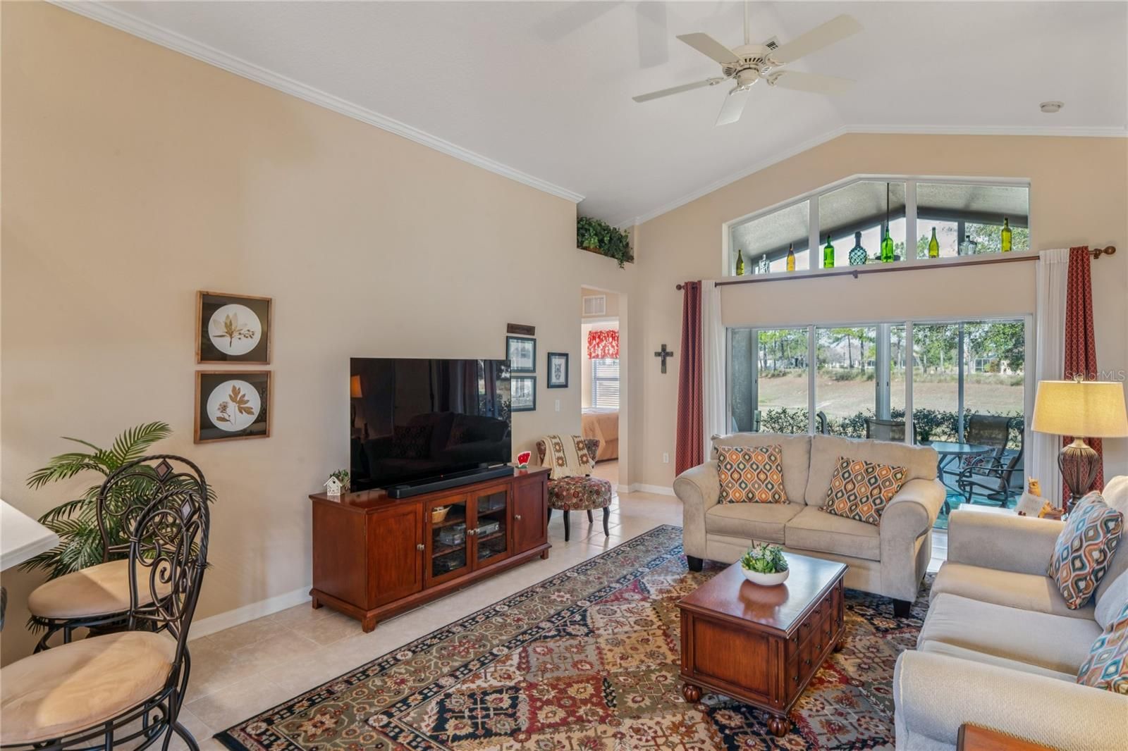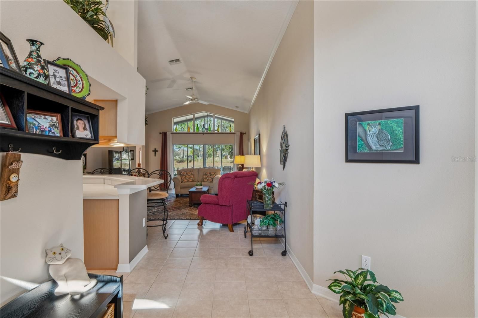 Within the Wellington at Seven Hills a 55+ community, lies the Nightingale Model, a three-bedroom, two-bathroom, home complete with a screened two-car garage and comprehensive maintenance package. Move right in for the furniture is included and gently used by snowbirds. This impressive property showcases soaring ceilings, a spacious eat-in kitchen with large pantry, formal dining room and separate living room. Owner's suite with double closets, private bathroom with dual sinks and a snail shower. Second and third bedrooms are generously sized and share the hall bathroom with tub/shower combo. Huge triple glass slider from living room goes to the enclosed lanai making it an all season room. The large lanai overlooks the no build backyard for enjoying your morning coffee while watching the birds. Inside laundry room includes washer and dryer. Updated features: Roof 2025, HVAC 2024, Outside painting 2024, Inside painting 2024 except bedroom 2 & 3, Garbage disposal 2026, dishwasher 2021, high-rise toilets 2024, lanai updated 2017, LED lights under cabinets 2018, new gutters 2017, blinds 2024, 2 Defender air purifiers. Enjoy dinner and drinks at the Wellington bar and grill. 233 HOA a month includes: Fiber optic internet and TV; multifunctional clubhouse, pool, spa, pickleball and tennis courts; Bocce ball, Billiard room, exercise room. Lots of clubs, community trips, parties, bingo and so much more. You can be as busy as you wish. When you visit the clubhouse ask for a copy of the News and Views, you will find it a fascinating look into the community. Included with your monthly maintenance dues of 210 is Lawn Maintenance, outside painting every 10 years, sprinkler care and more- Please see attached document expectations of Wellington HOA maintained home to see what is covered in your maintenance package. Enjoy your days with no worry of outside maintenance so you can have more fun with your friends and family Just 45 minutes from Tampa, and close to beaches, kayaking, and fishing, this home offers the perfect balance of relaxation, activity, and convenience.