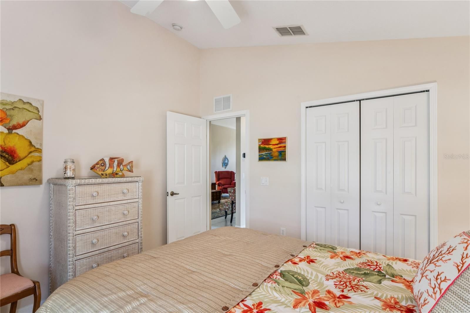 - Cathedral Ceiling(s), Ceiling Fan(s), Eat-in Kitchen, Open Floorplan, Main Level Primary, Solid Surface Counters, Split Bedrooms, Thermostat, Walk-In Closet(s)