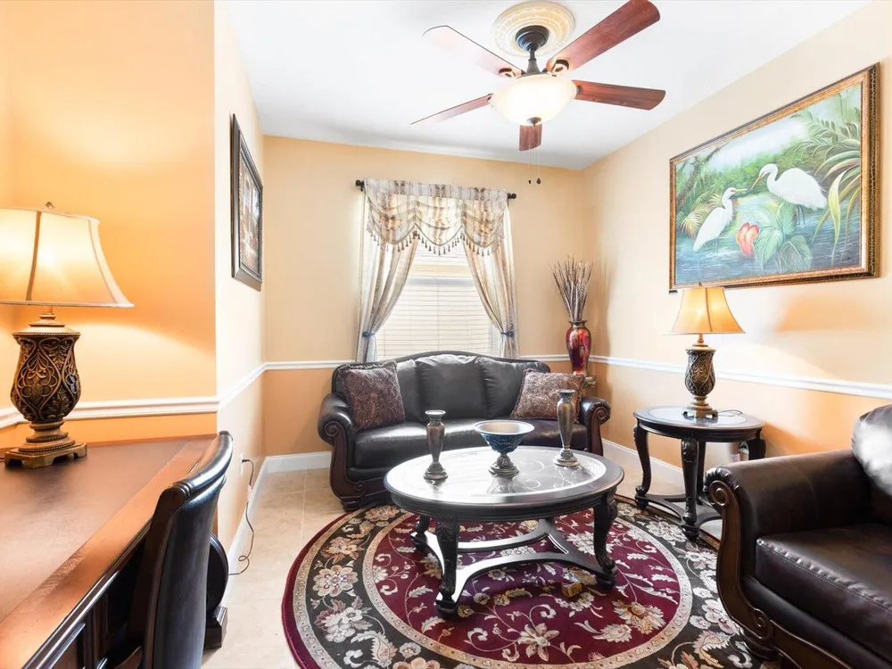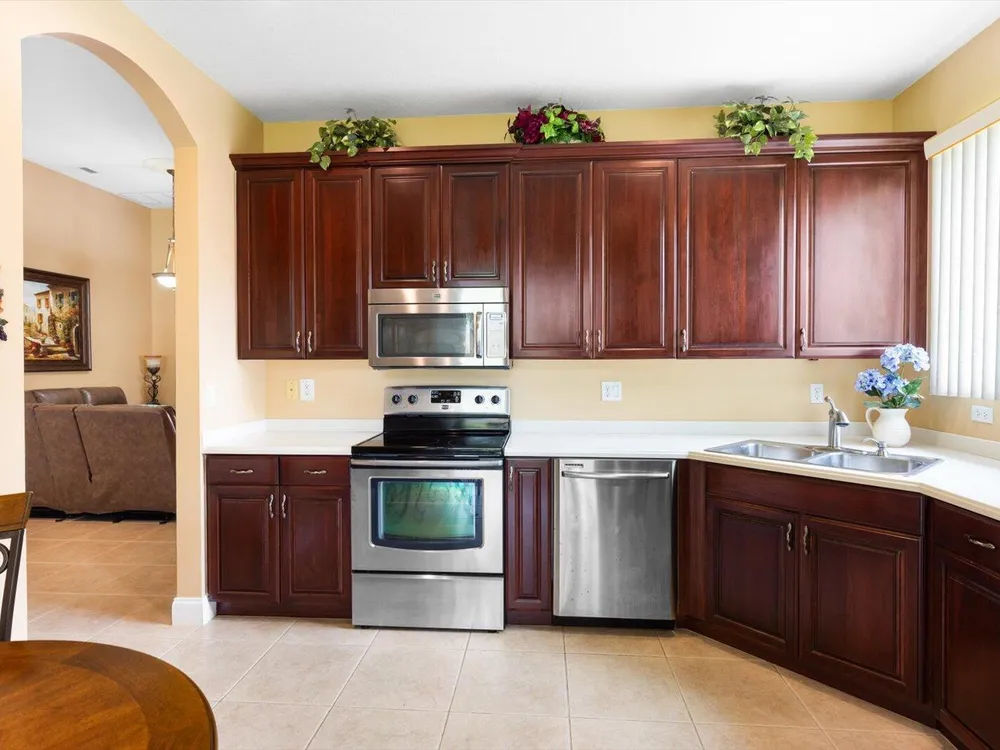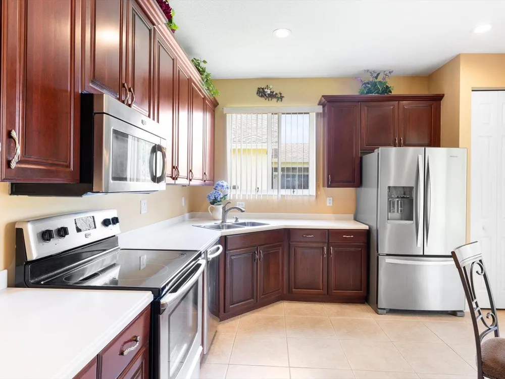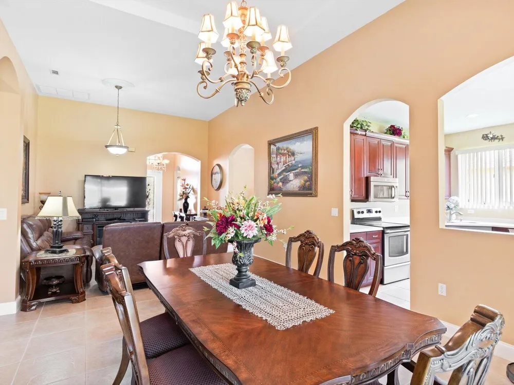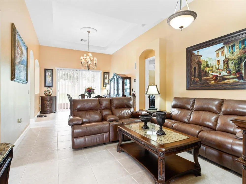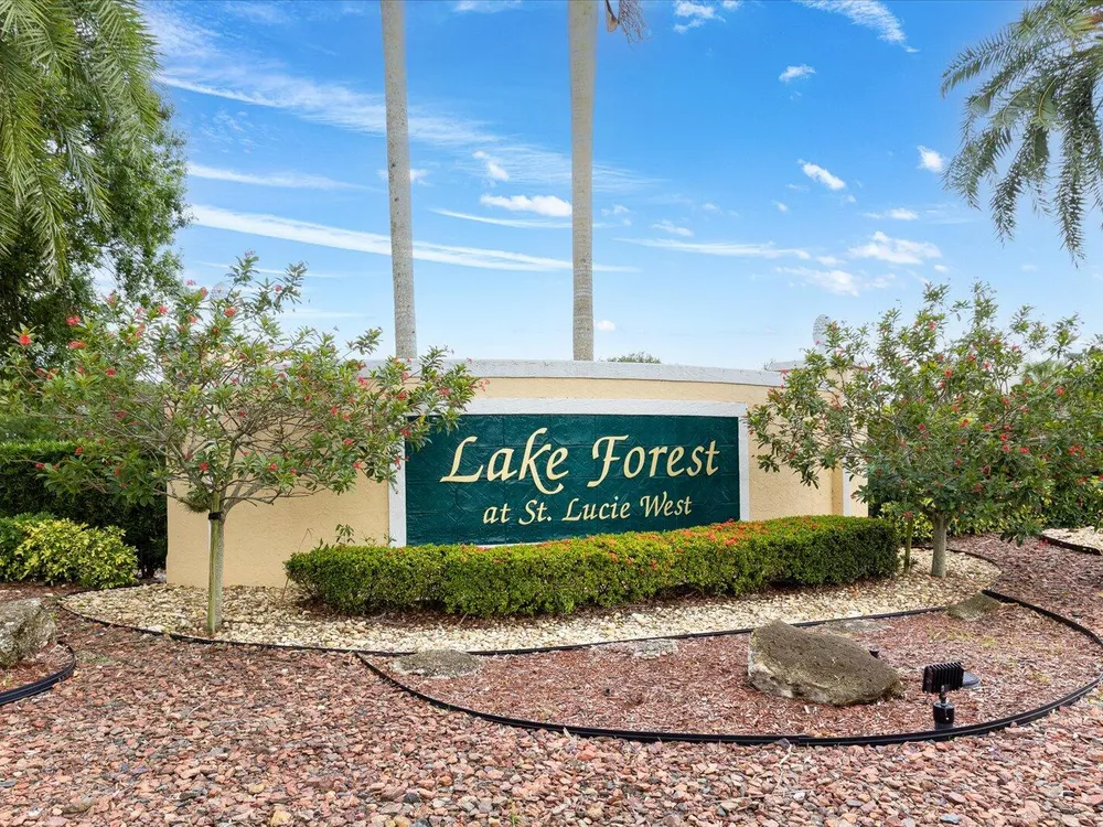Welcome to this beautifully maintained 3/2/2 + Den home in the highly desirable St Lucie West area. Elegantly furnished with high end furnishings and tasteful decorative accents. This home has been used seasonally as a vacation retreat and is move in ready. Step inside to grand volume ceilings and an open layout ideal for both entertaining and everyday comfort. The kitchen boasts rich wood cabinetry, Corian countertops and SS appliances. The tile roof and tile driveway add both durability and curb appeal, while the accordion shutters provide peace of mind.Lake Forest is a gated community that offers two resort style pools, clubhouse, fitness center, picnic area and playground.Schedule a tour today and discover the lifestyle you've been dreaming of.