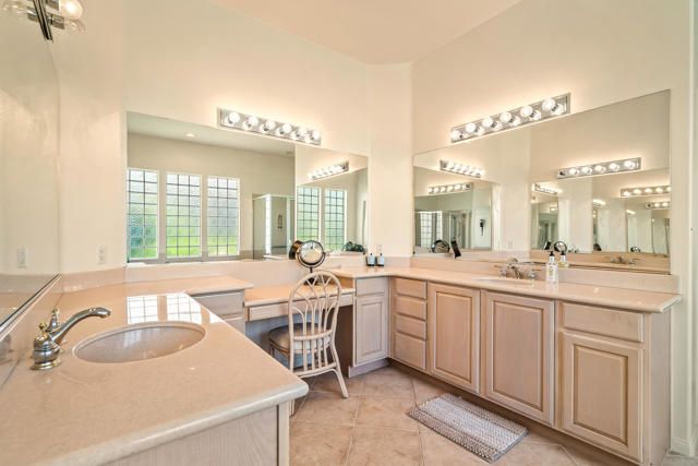 SPECTACULAR PANORAMIC VIEWS from this 2504 sq.ft. 3 bedroom, 2.5 bath home with pool & spa! This home is also being offered TURNKEY FURNISHED. Featuring a courtyard entrance with leaded glass entry door, open plan layout with cozy winter fireplace in the family room, Island kitchen design with DBL ovens and loads of storage cabinetry. Both of the guest bedrooms allow for King size beds and are divided by a 'Jack & Jill' DBL vanity bathroom with large shower. There is also a convenient powder room for guests as well. The spacious primary bedroom has the optional bay window, soaking tub with separate shower, large walk-in closet, and French door to your PRIVATE pool/spa area with large covered rear patio with built-in infrared heater. Heritage Palms is a premier adult community featuring an 18 hole championship golf course, pickleball courts, tennis courts, indoor & outdoor pools, fitness center, grill room, billiards room, card rooms, social clubs and more.