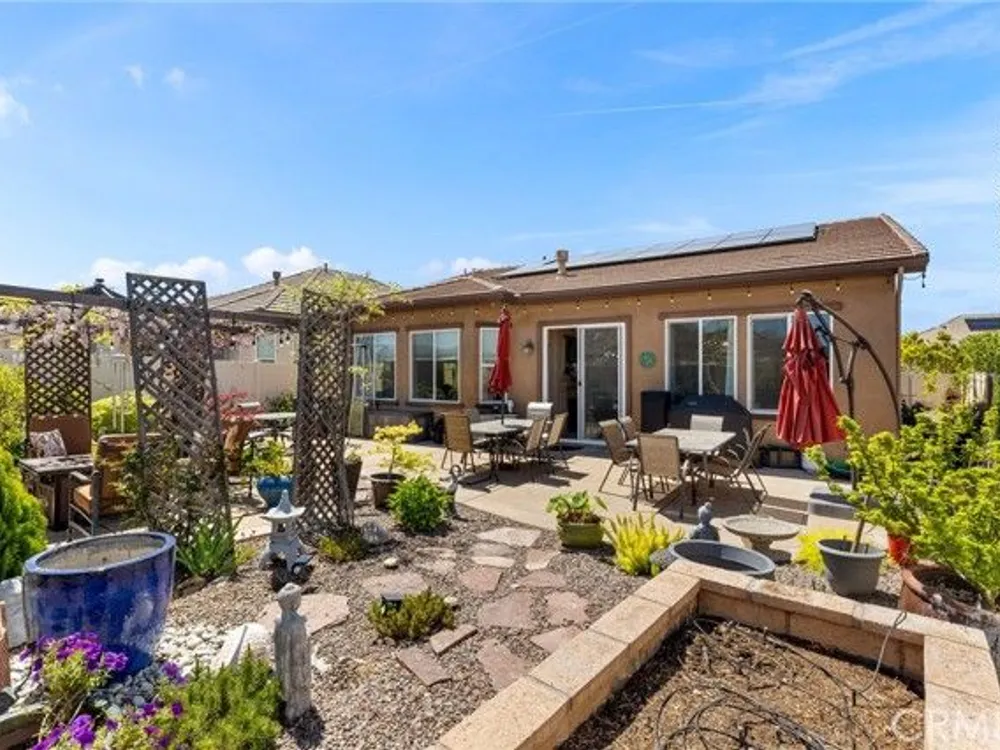 Solar Powered home Located in the 55+ Senior community of Four Seasons Beaumont. Views of the local hills and Mountains. Great curb appeal with the popular craftsman exterior with stacked stone accents, custom entry walk and artificial turf. This Ridgestone model has features: Granite kitchen counter tops and island, Stainless steel appliances, rich pecan finished cabinets, custom ceramic floor tile, family room fireplace, large laundry room with sink and added cabinets. The rear yard, along with its views, has mature fruit tress, raised bed planters and a stamped concrete patio. The Four Seasons resort community includes a lodge with a resort style pool complex with cabanas and jacuzzi, grand ballroom, bistro, 50 seat movie theater, billiards room, full service salon, bocce ball courts, 4 tennis courts, 8 pickle ball courts, 9 hole putting green, horseshoe court, shuffle board courts, basketball courts, 2 large fitness centers, six miles of walking trails, indoor pool complex and dog park.
