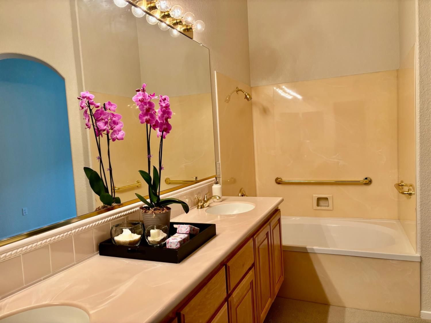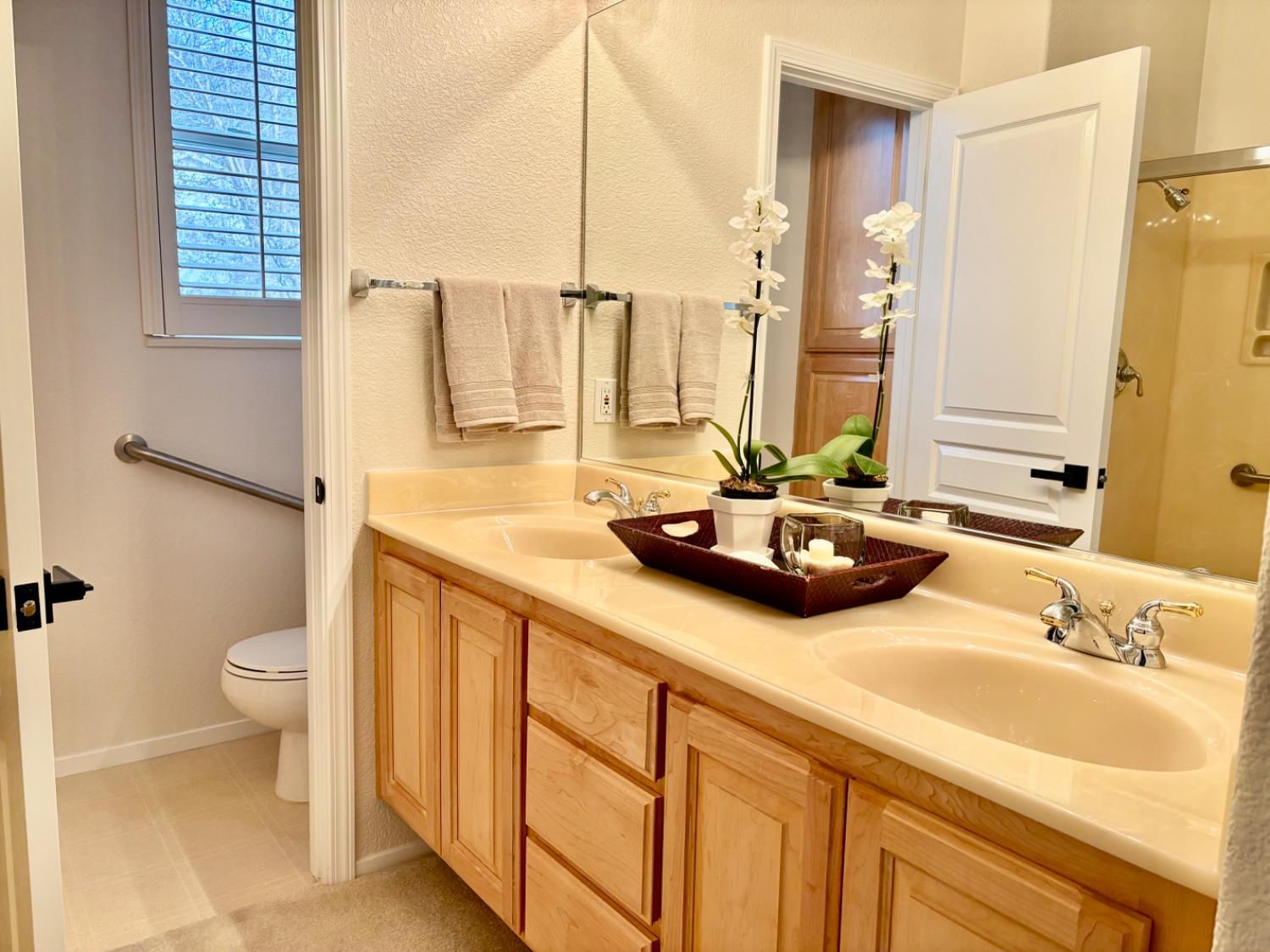 Welcome to this beautifully kept, light-filled home in the highly desirable, gated 55+ community of Diamond Glen in Folsom. Offered by the original owner, this 1,673 square foot residence has been freshly painted inside and out and showcases a bright, open-concept floor plan designed for both comfort and flexibility. The home features three private bedrooms, including a spacious primary suite with an ensuite bathroom, walk-in closet, and direct access to the backyard. A second bedroom offers the option of a junior master suite with its own bathroom and two closets, ideal for guests or multigenerational living. A separate space provides the perfect opportunity for a home office or hobby room, and indoor laundry adds everyday convenience. The finished two-car garage includes custom cabinetry and durable floor treatment for added functionality. Residents of Diamond Glen enjoy resort-style amenities including security gates, pool, spa, recreation courts, and an exercise roomall within a beautifully maintained community setting.