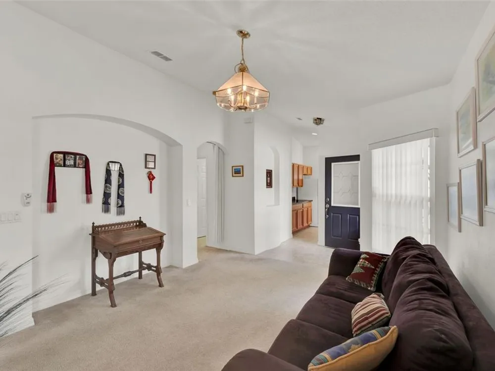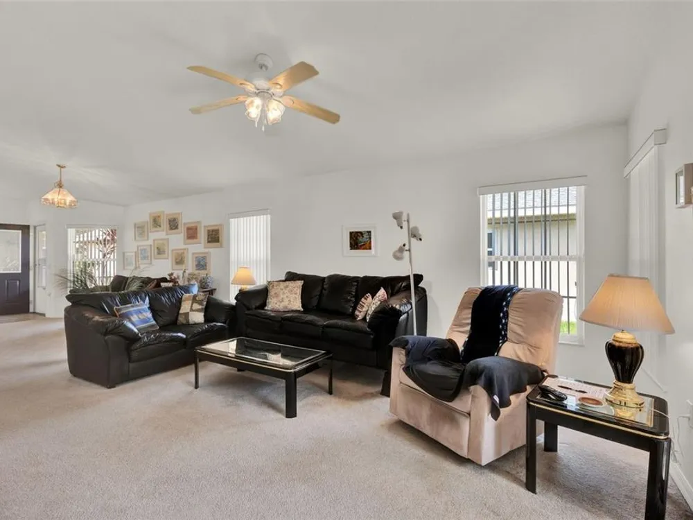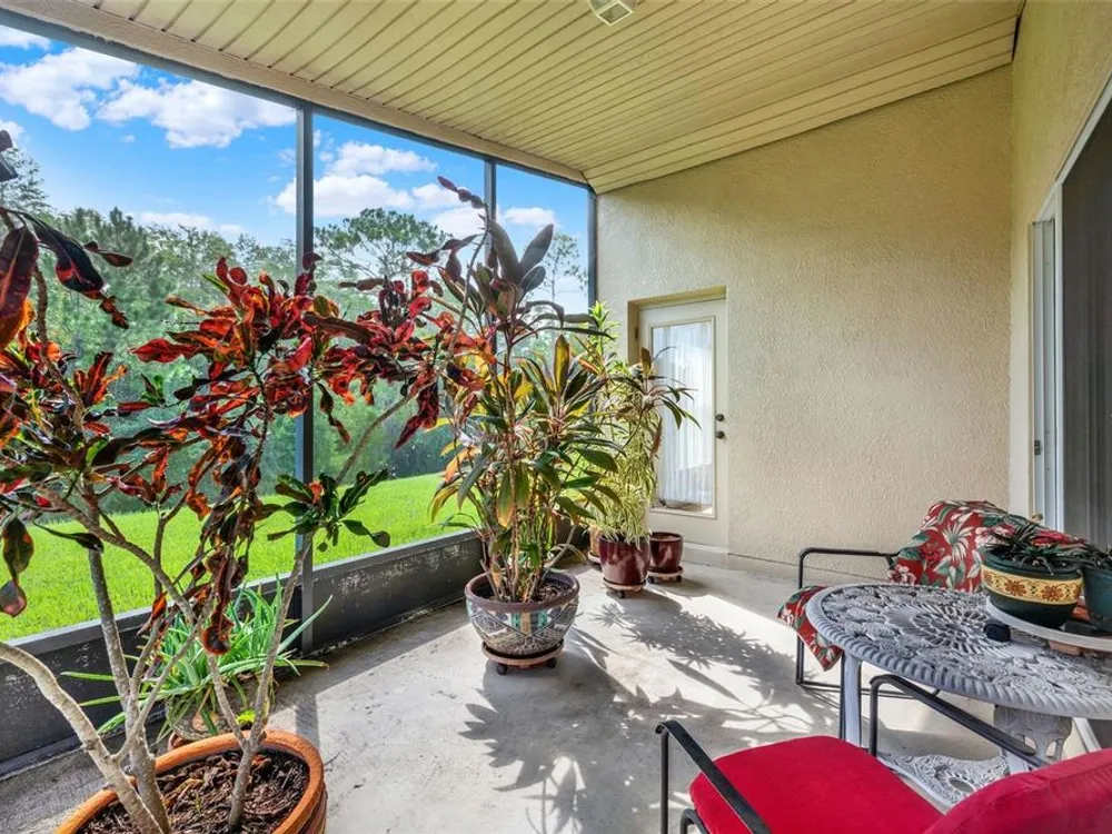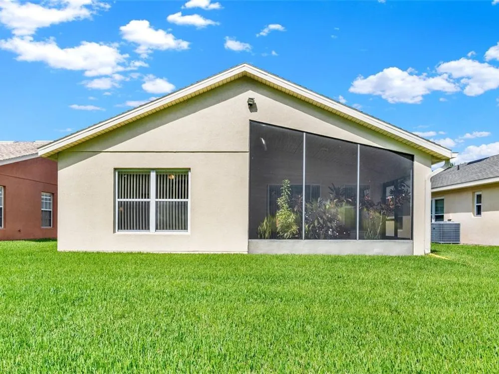 Welcome home to sought after Solivita! This luxury, 55+ resort-style subdivision has everything! From its guard-gated entrance, 14 heated pools, Fiber Optic internet, two full golf courses, two state-of-the-art fitness centers, amenity complexes, neighborhood centers, pickleball, tennis, bocce, shuffleboard courts, and over 200 Clubs (with Art, Education and cultural classes) along with miles of walking and bike paths, you will have plenty to enjoy! You will love this beautifully appointed Hemingway model home backing onto a spectacular conservation area and NO REAR NEIGHBORS! This home has amazing curb appeal and boasts paid off solar panels installed in 2023! As you enter the ornamental front door, you will appreciate and love entertaining in the the expansive family/dining room, which includes beautiful 12' ceilings! The kitchen is open to entertaining and complete with plenty of countertops and 42" cabinets, dining nook, and appliances. The home boasts of a split floor plan so you can retreat to the oversized primary suite with stunning views. The ensuite bathroom is complete with a vanity area, and lavish shower. You will appreciate the second bedroom and full bath! Work from home in your private office with double doors which can also be used as a flex space. Step outside to the oversized screened in covered lanai and enjoy the privacy of a serenely peaceful backyard overlooking the beautiful conservation area. You'll love every moment of it. You'll also appreciate the recently replaced AC and water heater, the separate laundry room and garage with room for a car and a golf cart. Nearby Solivita you will find plenty of shopping, restaurants, and medical facilities. You are just minutes from the theme parks using the expressway. Come live the Solivita Lifestyle!