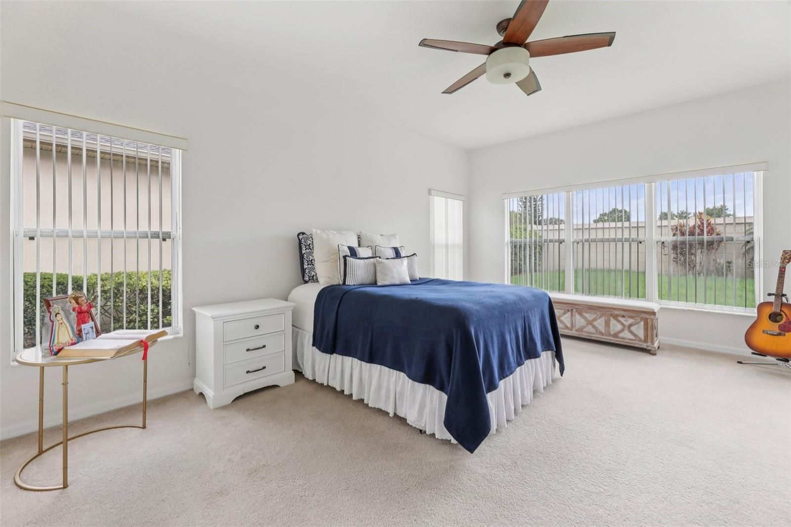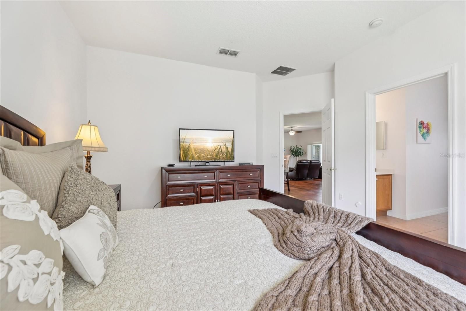 Live your best life in this bright and spacious beauty inside one of Central Florida’s most desirable 55+ gated communities! This well-maintained home is full of natural light, charm, and comfort—offering the perfect blend of indoor luxury and outdoor relaxation. Step inside to a wide-open layout where the living and dining rooms flow together effortlessly, making everyday living and entertaining a breeze. The cheerful kitchen features a cozy breakfast nook, pantry, and plenty of counter space to whip up your favorite meals. But the real wow factor is the oversized primary suite—your personal retreat! With sliding glass doors that open to the screened lanai, a bonus area perfect for an office or craft space, TWO walk-in closets, and a spacious private bath with dual sinks, a garden tub, and a separate shower, you’ll feel like every day is a staycation. On the other side of the home, two generously sized bedrooms are connected by a convenient Jack and Jill bathroom—ideal for guests or grandkids. Out front, the pavered driveway is lined with swaying palm trees and leads to a large 2-car garage. Out back, the screened lanai is your go-to spot for soaking up the Florida sunshine or sipping your morning coffee in peace. The HOA has you covered with cable TV, community pool access, security, grounds and pest maintenance, trash, sewer, and even a private road—giving you less to worry about and more time to enjoy life. All of this located in a beautifully landscaped golf course community with world-class amenities and just minutes from shopping, dining, and medical centers. Whether you're relaxing at home or connecting with neighbors, this home is your perfect launchpad for 55+ Florida living. Sunshine, style, and simplicity—this one checks all the boxes!