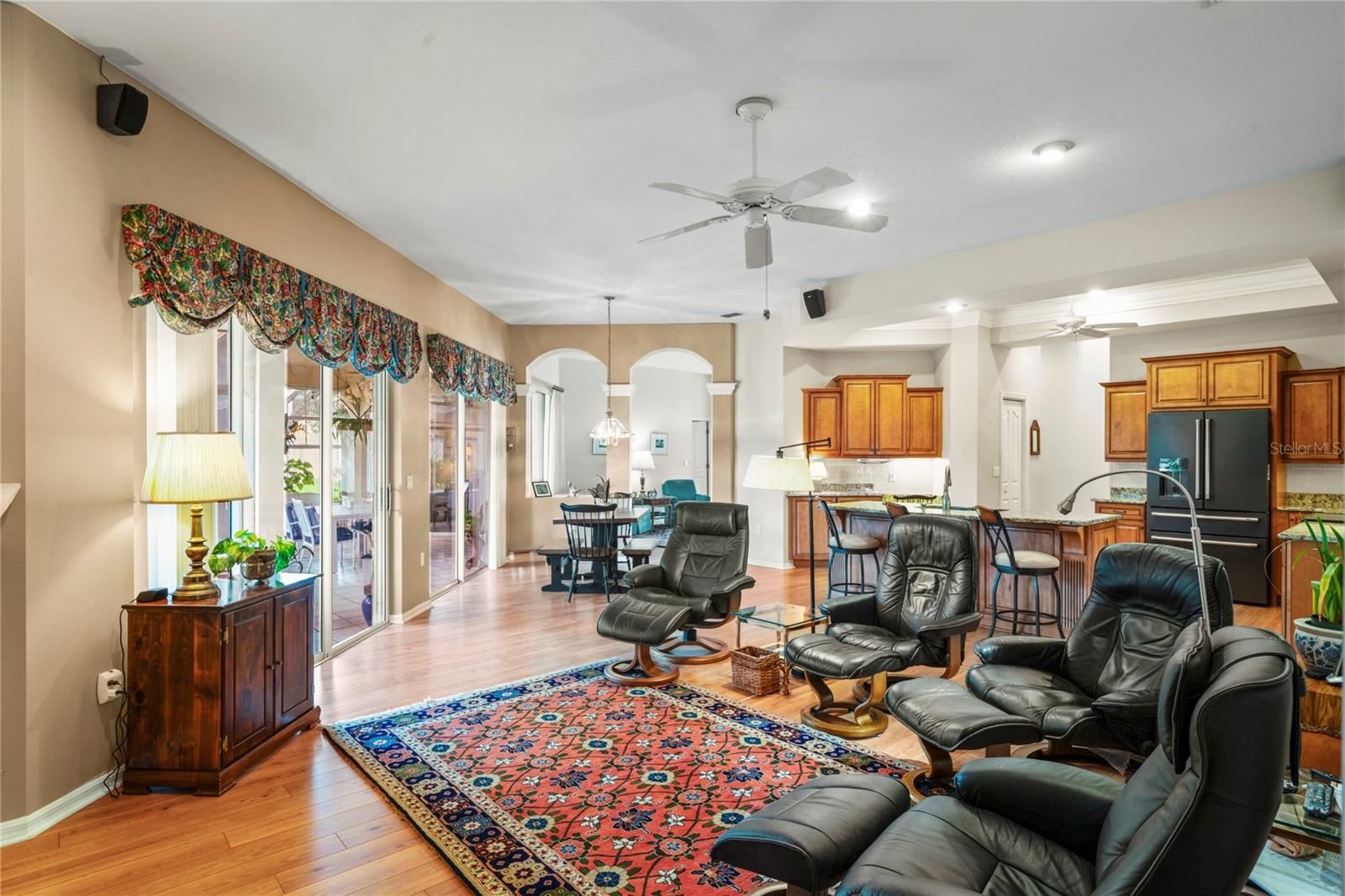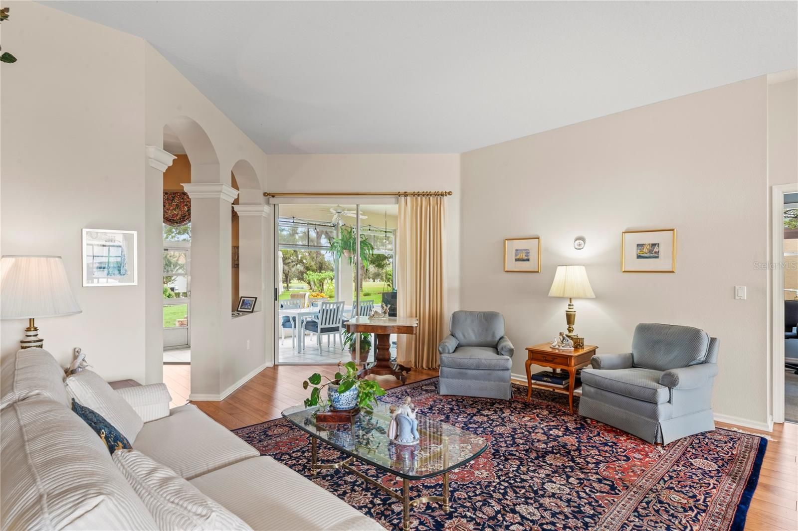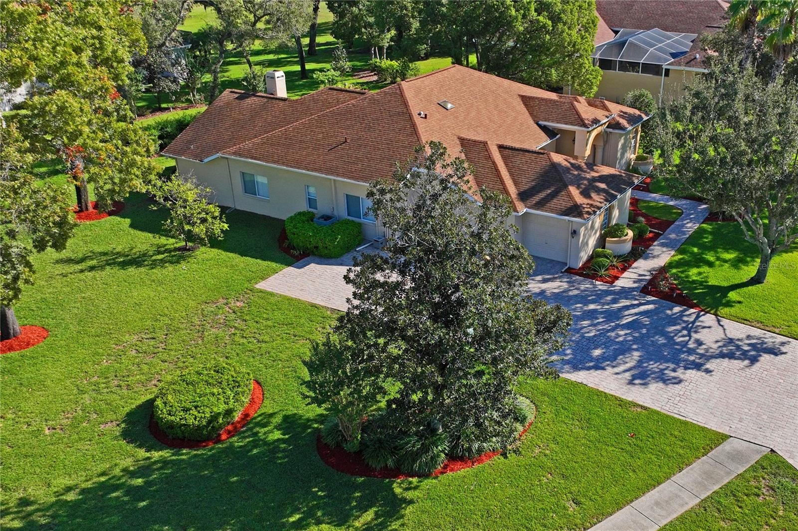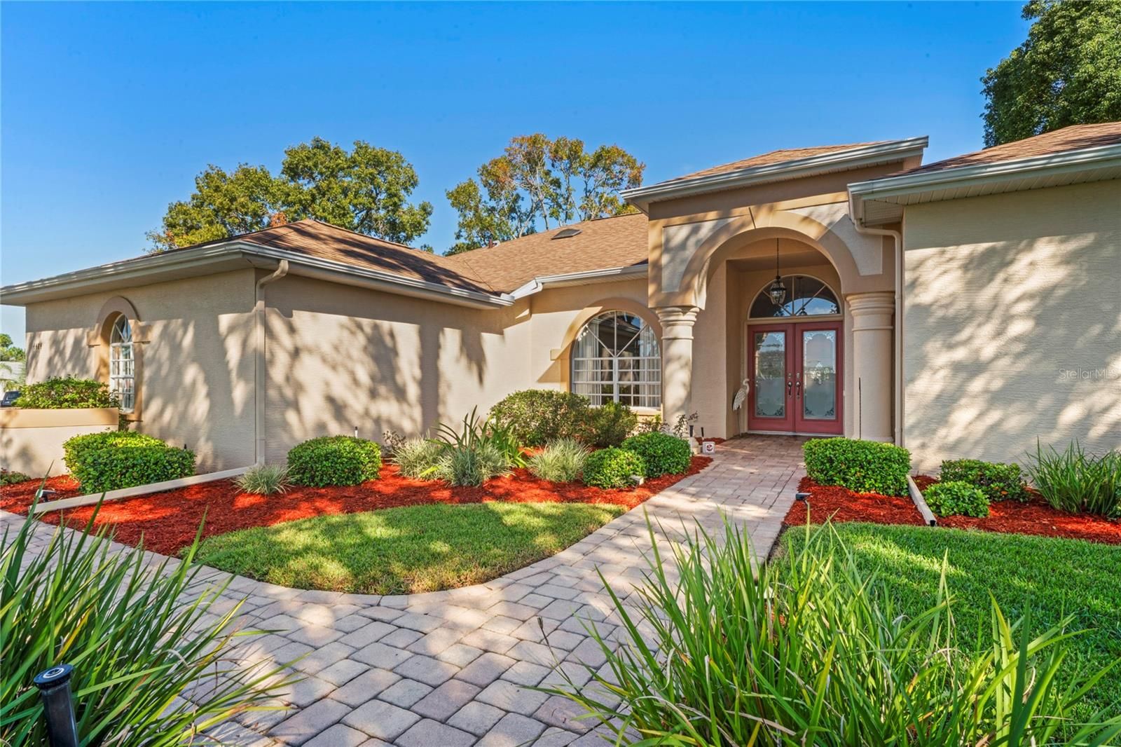 One or more photo(s) has been virtually staged. ONE-OWNER HOME with GOLF COURSE and POND VIEWS! This beautifully maintained one-owner home near the 5th hole offers 2,468 sq. ft. of comfortable living space with 4 bedrooms, 3 baths, and a 3 car garage. Built in 1997 and lovingly cared for by the original owners, this home features an open floor plan with high ceilings, a spacious kitchen with granite countertops, and plenty of cabinet space. Enjoy the large Florida room overlooking the peaceful pond, golf course, and mature trees- perfect for relaxing or entertaining. The outdoor patio showcases brick, flagstone, and terrazzo stone, surrounded by freshly mulched landscaping newly painted exterior home for great curb appeal. Additional highlights include a paver driveway and walkway, Water Heater 2020, roof replaced in 2015, AC installed in 2008. This home is located in a quiet, established gated neighborhood close to shopping, dining, and all conveniences. Appliances and extras included: refrigerator, stove, microwave oven, dishwasher, washer, dryer, master bedroom TV, Hot Tub, 2 patio sets with one umbrella, weber grill, 2 ferns and a swing. Close to the Suncoast Parkway 589 and Tampa Airport. Bike path is right out the back gate. Come see the well loved home and experience the serene views and inviting lifestyle it offers!