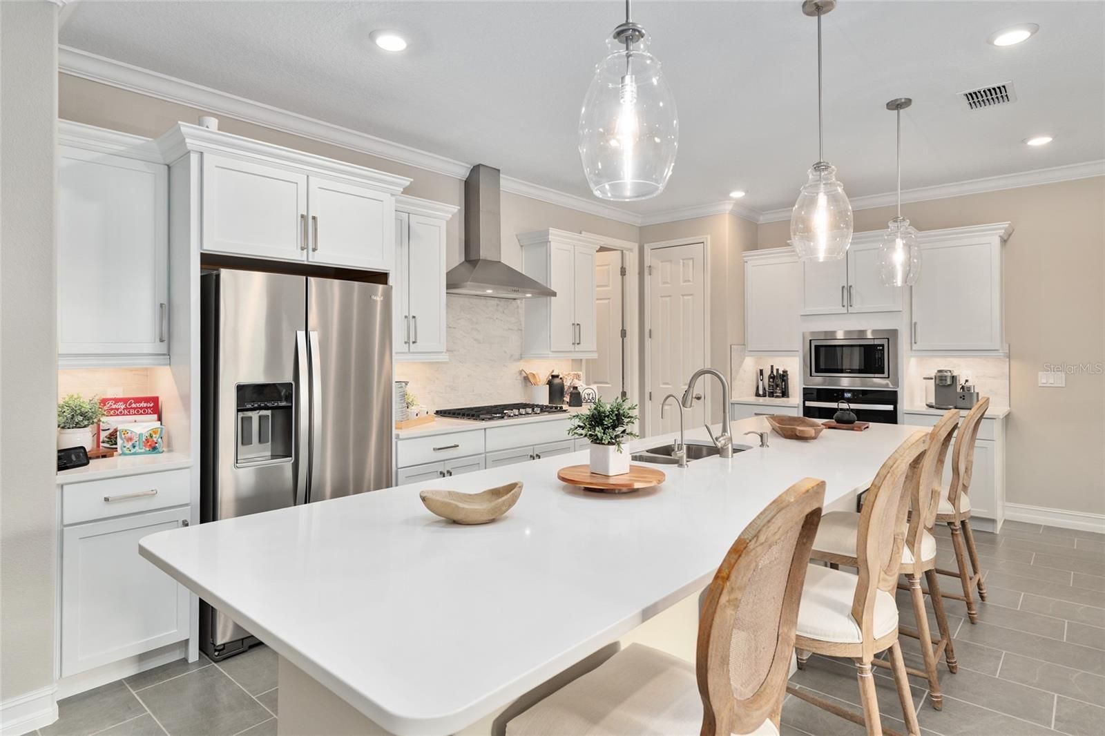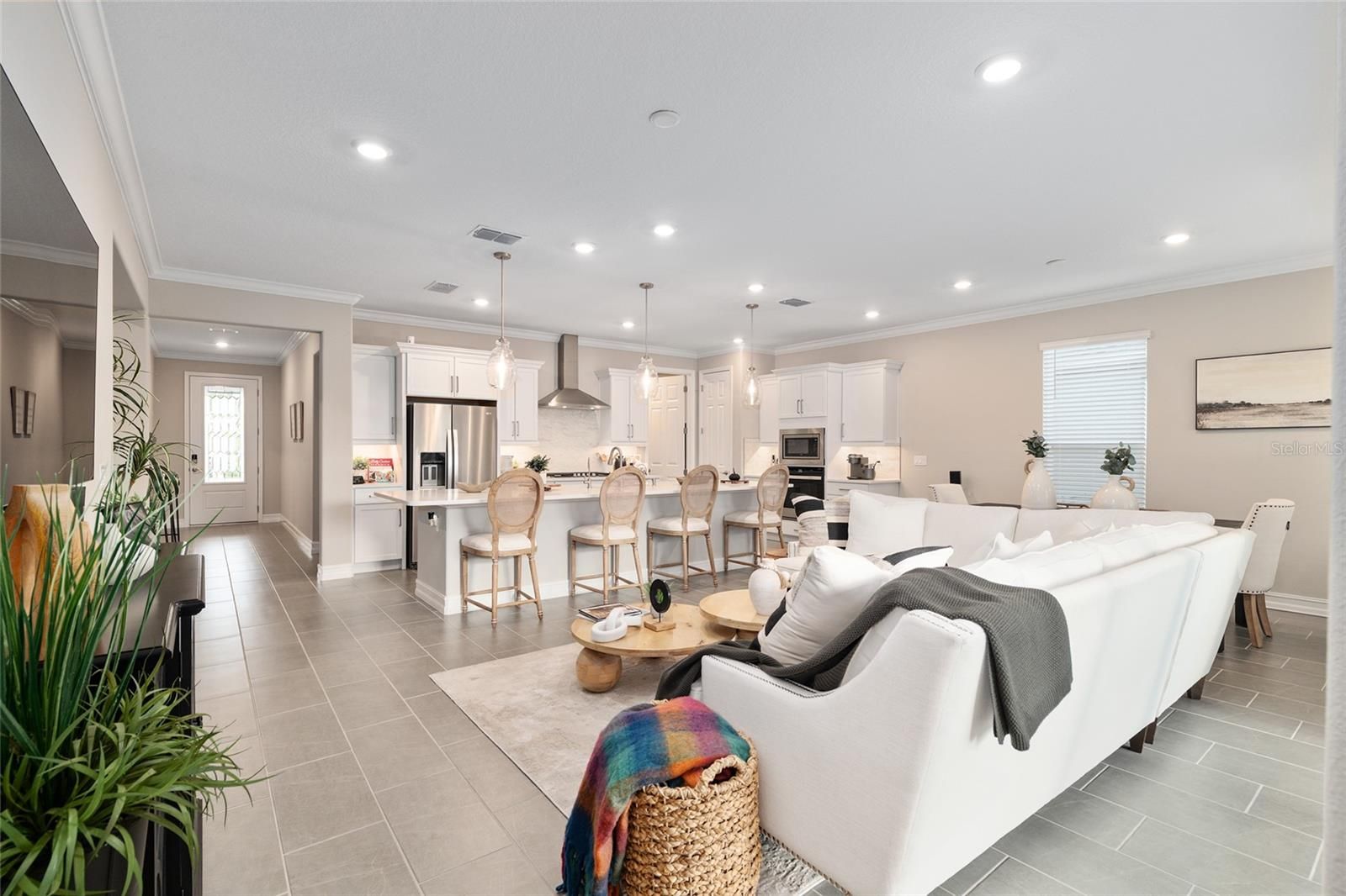 SELLER WILL CONTRIBUTE UP TO $10K TOWARD BUYER'S CLOSING COSTS WITH AN ACCEPTED OFFER!!!! Step into the elegance and comfort of this beautifully appointed former model home! This turn-key Connect model is where thoughtful design meets everyday ease. Located within the serene, guard-gated community of Ocala Preserve with NO CDD FEES, this home offers three spacious bedrooms, two and a half baths, and a versatile office or den that provides flexible space perfect for enjoying quiet moments, pursuing creative interests, or simply expanding your living space. The open-concept layout of this upscale residence is enhanced by volume ceilings with elegant crown molding and premium porcelain plank tile flooring that extends throughout the main living areas. A spacious gathering room offers the perfect setting for both quiet relaxation and lively entertaining, with triple glass sliders that welcome abundant natural light and open to a covered lanai, creating an inviting spot for morning coffee or unwinding in the evening. The gourmet chef’s kitchen is both stylish and functional, offering a generous quartz-topped island with pendant lighting, soft-close cabinetry, LED under-cabinet lighting, and stainless steel appliances, including a gas cooktop and vented hood. A framed refrigerator enclosure adds a custom touch, while the layout encourages easy conversation and casual dining. The primary suite offers a peaceful retreat, featuring a large walk-in closet and en suite bath offering a large double-sink vanity and a private water closet. Two guest bedrooms share a full bath with a soaking tub and shower, and an additional half bath adds flexibility for visitors. A full laundry room includes a washer and dryer, a utility sink, and desirable extra space for a second refrigerator or storage. This beautifully upgraded home is move-in ready, complete with all furnishings, and offers immediate access to the resort-style amenities of Ocala Preserve. With no CDD fees, high-speed internet included, and full membership to all amenities, residents can enjoy a relaxed, maintenance-free lifestyle surrounded by comfort, convenience, and community. Enjoy dining at the on-site restaurant with an executive chef, unwind with spa services including massages, facials, and mani-pedis, or store your favorite vintages in your personal wine locker. Outdoor enthusiasts will love the boathouse stocked with kayaks, canoes, and paddleboats, plus catch-and-release fishing, a fenced dog park, and an open-air fitness area. The abundant activities include group fitness classes and a state-of-the-art fitness center, tennis, pickleball, bocce, and horseshoe pits, miles of dedicated walking and biking trails, and a Tom Lehman-designed golf course and two resort-style pools with a 3rd pool underway. When it’s time to relax, the HOA has you covered with front, back, and side lawn and landscape care, including irrigation, trimming, fertilizing, and mulching 2x a year. Make your move today and begin enjoying these first-class amenities and a convenient location close to the World Equestrian Center, shopping, banking, restaurants, medical facilities, and so much more!