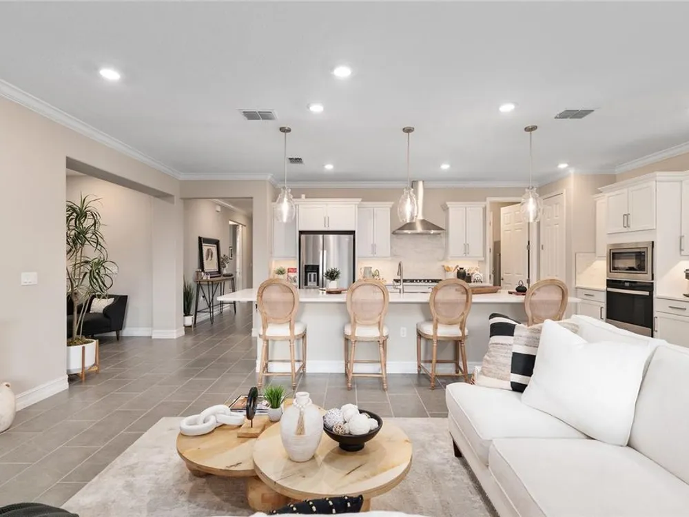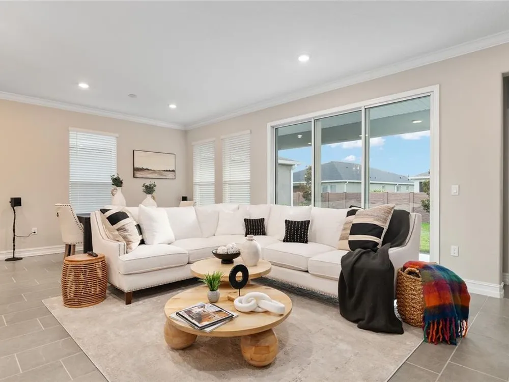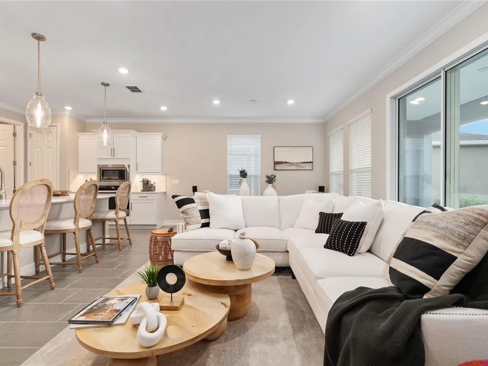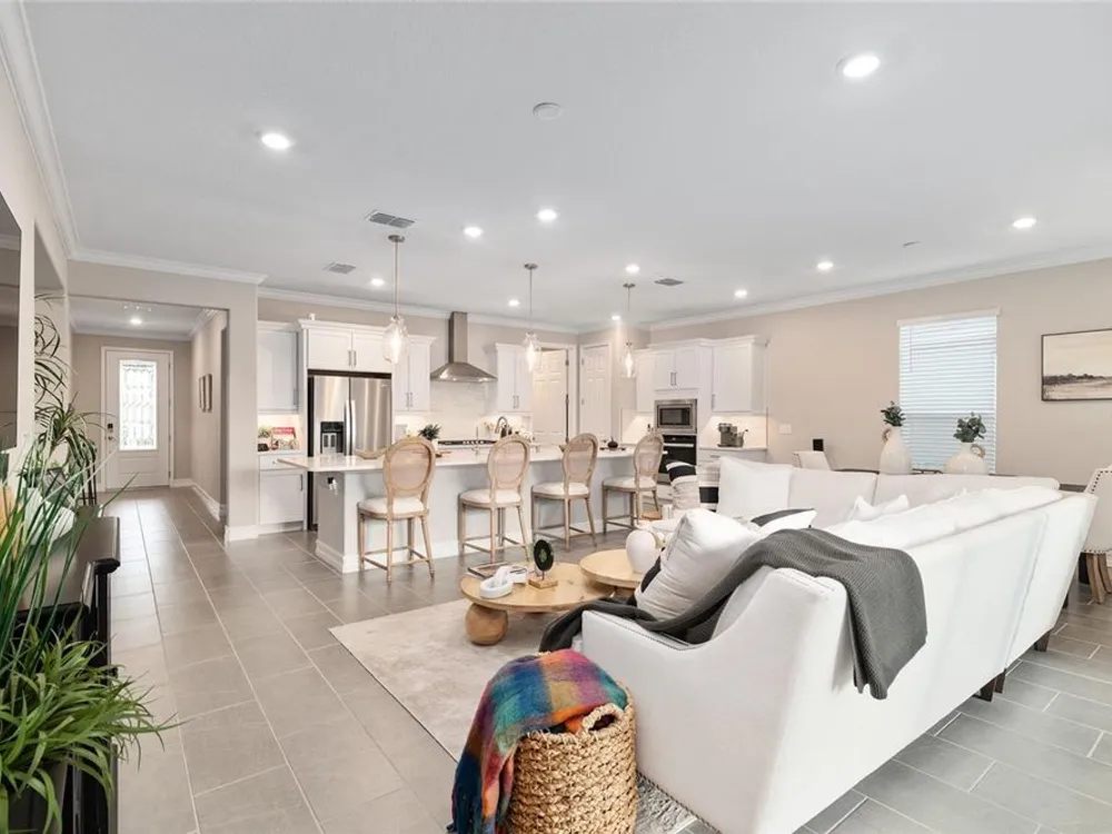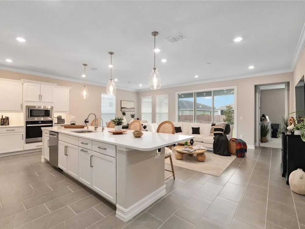 Step into the elegance and comfort of this beautifully appointed turn-key Connect model, where thoughtful design meets everyday ease. Located within the serene, guard-gated community of Ocala Preserve, this home offers three spacious bedrooms, two and a half baths, and a versatile office or den that provides flexible space perfect for enjoying quiet moments, pursuing creative interests, or simply expanding your living space. The open-concept layout of this upscale residence is enhanced by volume ceilings with elegant crown molding and premium porcelain plank tile flooring that extends throughout the main living areas. A spacious gathering room offers the perfect setting for both quiet relaxation and lively entertaining, with triple glass sliders that welcome abundant natural light and open to a covered lanai, creating an inviting spot for morning coffee or unwinding in the evening. The chef’s kitchen is both stylish and functional, offering a generous quartz-topped island with pendant lighting, soft-close cabinetry, LED under-cabinet lighting, and stainless steel appliances, including a gas cooktop and vented hood. A framed refrigerator enclosure adds a custom touch, while the layout encourages easy conversation and casual dining. The primary suite offers a peaceful retreat, featuring a large walk-in closet and en suite bath offering a large double-sink vanity and a private water closet. Two guest bedrooms share a full bath with a soaking tub and shower, and an additional half bath adds flexibility for visitors. A full laundry room includes a washer and dryer, a utility sink, and desirable extra space for a second refrigerator or storage. This beautifully upgraded home is move-in ready, complete with all furnishings, and offers immediate access to the resort-style amenities of Ocala Preserve. With no CDD fees, high-speed internet included, and full membership to all amenities, residents can enjoy a relaxed, maintenance-free lifestyle surrounded by comfort, convenience, and community. Enjoy dining at the on-site restaurant with an executive chef, unwind with spa services including massages, facials, and mani-pedis, or store your favorite vintages in your personal wine locker. Outdoor enthusiasts will love the boathouse stocked with kayaks, canoes, and paddleboats, plus catch-and-release fishing, a fenced dog park, and an open-air fitness area. The abundant activities include group fitness classes and a state-of-the-art fitness center, tennis, pickleball, bocce, and horseshoe pits, miles of dedicated walking and biking trails, and a Tom Lehman-designed golf course and two resort-style pools with a 3rd pool underway. When it’s time to relax, the HOA has you covered with front, back, and side lawn and landscape care, including irrigation, trimming, fertilizing, and mulching 2x a year. Make your move today and begin enjoying these first-class amenities and a convenient location close to the World Equestrian Center, shopping, banking, restaurants, medical facilities, and so much more!