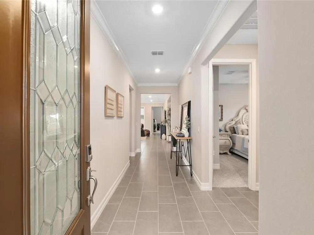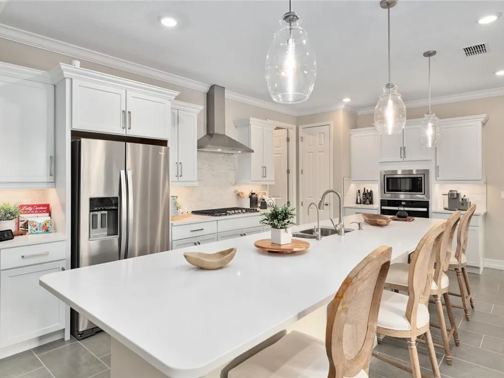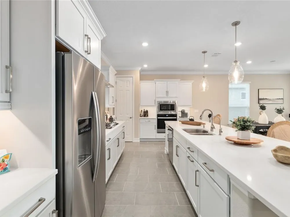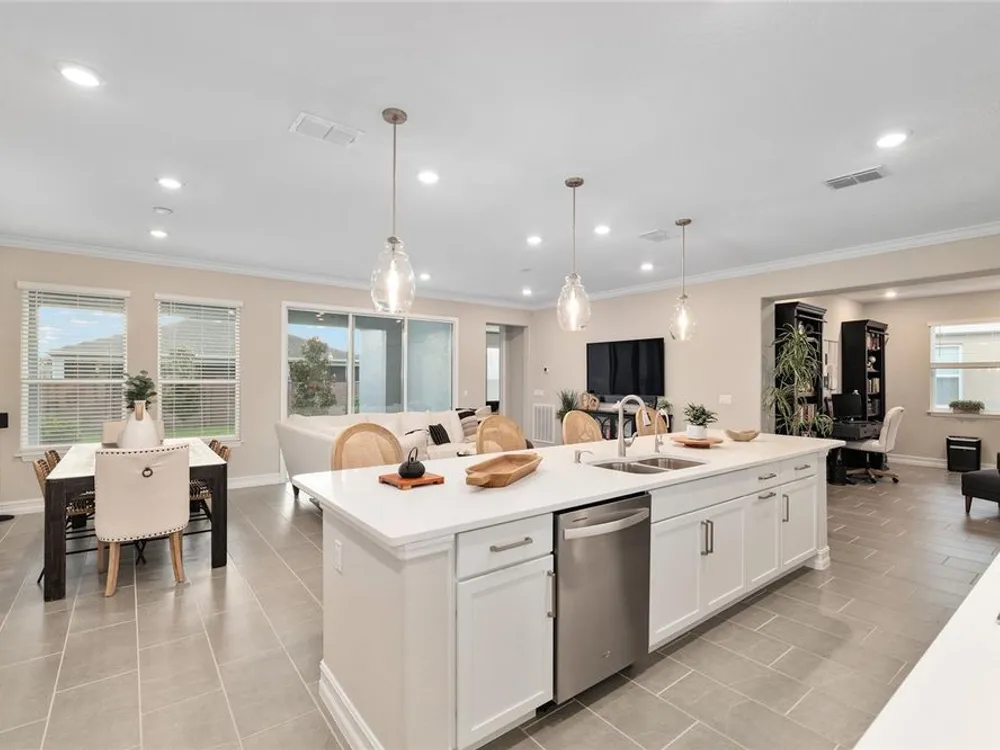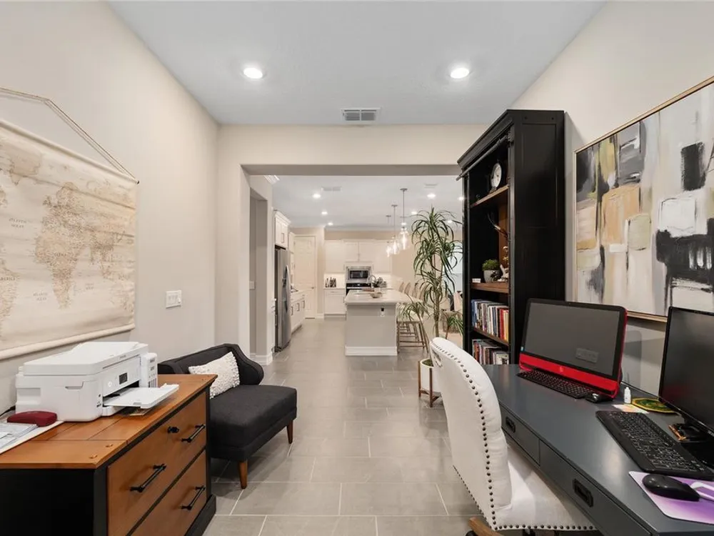 Step into the elegance and comfort of this beautifully appointed turn-key Connect model, where thoughtful design meets everyday ease. Located within the serene, guard-gated community of Ocala Preserve, this home offers three spacious bedrooms, two and a half baths, and a versatile office or den that provides flexible space perfect for enjoying quiet moments, pursuing creative interests, or simply expanding your living space. The open-concept layout of this upscale residence is enhanced by volume ceilings with elegant crown molding and premium porcelain plank tile flooring that extends throughout the main living areas. A spacious gathering room offers the perfect setting for both quiet relaxation and lively entertaining, with triple glass sliders that welcome abundant natural light and open to a covered lanai, creating an inviting spot for morning coffee or unwinding in the evening. The chef’s kitchen is both stylish and functional, offering a generous quartz-topped island with pendant lighting, soft-close cabinetry, LED under-cabinet lighting, and stainless steel appliances, including a gas cooktop and vented hood. A framed refrigerator enclosure adds a custom touch, while the layout encourages easy conversation and casual dining. The primary suite offers a peaceful retreat, featuring a large walk-in closet and en suite bath offering a large double-sink vanity and a private water closet. Two guest bedrooms share a full bath with a soaking tub and shower, and an additional half bath adds flexibility for visitors. A full laundry room includes a washer and dryer, a utility sink, and desirable extra space for a second refrigerator or storage. This beautifully upgraded home is move-in ready, complete with all furnishings, and offers immediate access to the resort-style amenities of Ocala Preserve. With no CDD fees, high-speed internet included, and full membership to all amenities, residents can enjoy a relaxed, maintenance-free lifestyle surrounded by comfort, convenience, and community. Enjoy dining at the on-site restaurant with an executive chef, unwind with spa services including massages, facials, and mani-pedis, or store your favorite vintages in your personal wine locker. Outdoor enthusiasts will love the boathouse stocked with kayaks, canoes, and paddleboats, plus catch-and-release fishing, a fenced dog park, and an open-air fitness area. The abundant activities include group fitness classes and a state-of-the-art fitness center, tennis, pickleball, bocce, and horseshoe pits, miles of dedicated walking and biking trails, and a Tom Lehman-designed golf course and two resort-style pools with a 3rd pool underway. When it’s time to relax, the HOA has you covered with front, back, and side lawn and landscape care, including irrigation, trimming, fertilizing, and mulching 2x a year. Make your move today and begin enjoying these first-class amenities and a convenient location close to the World Equestrian Center, shopping, banking, restaurants, medical facilities, and so much more!