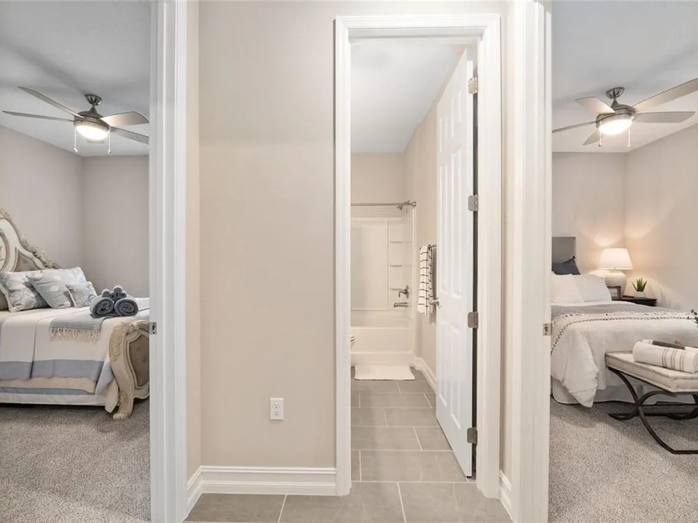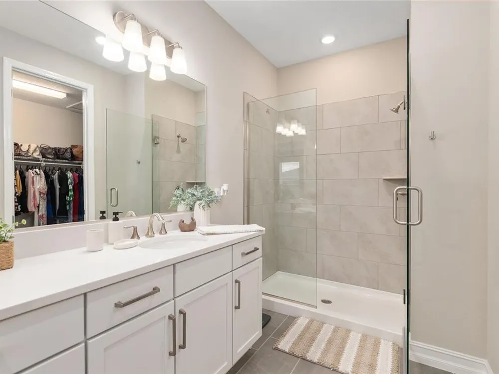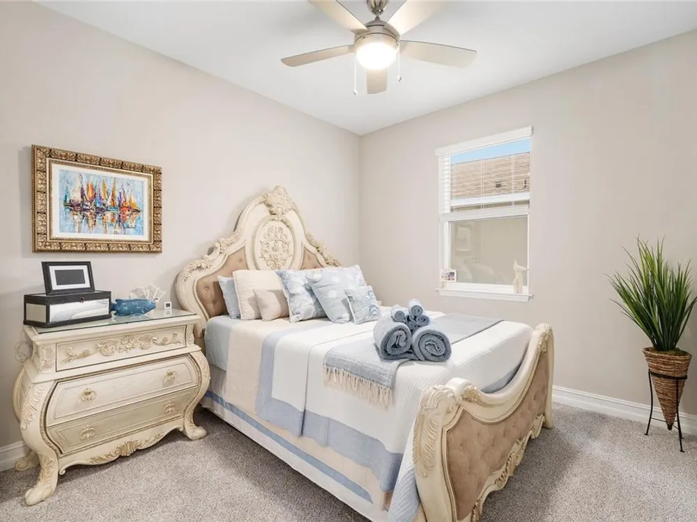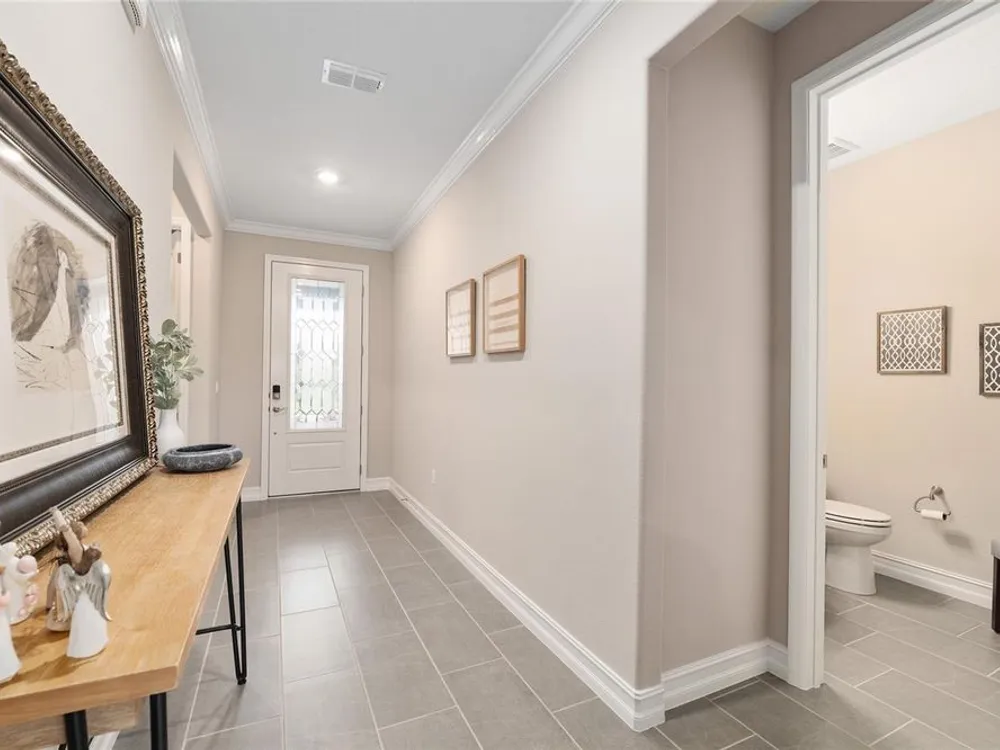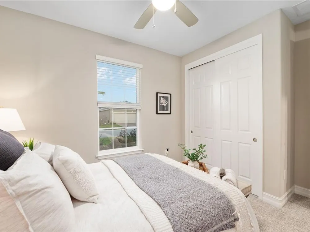 - Ceiling Fan(s), Crown Molding, High Ceilings, Kitchen/Family Room Combo, Open Floorplan, Main Level Primary, Stone Counters, Walk-In Closet(s)