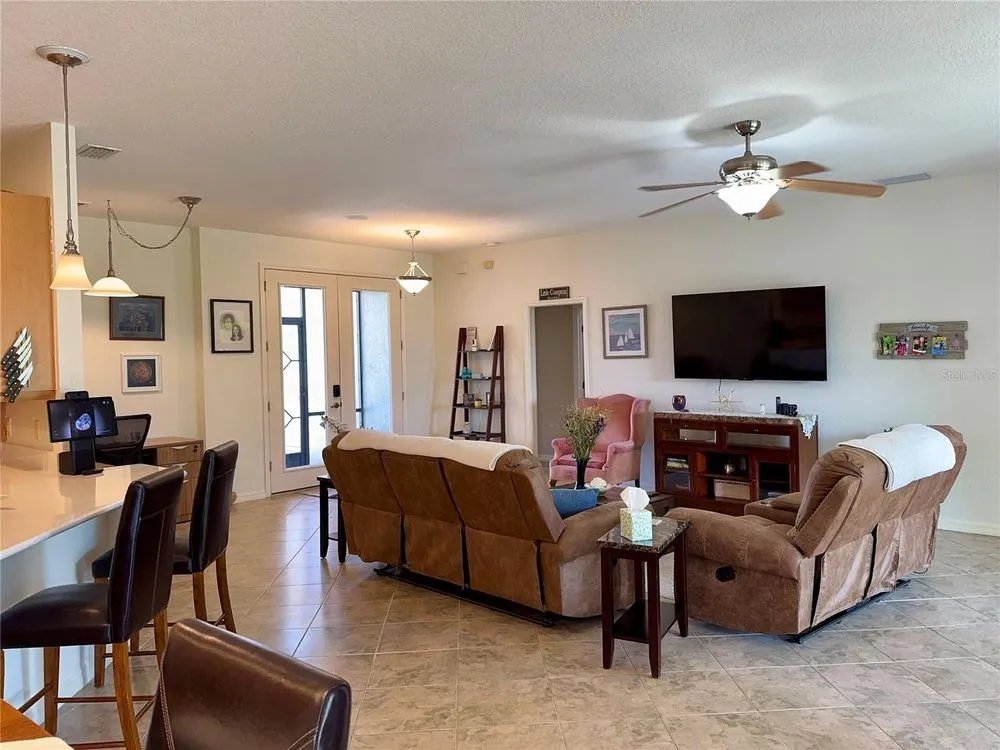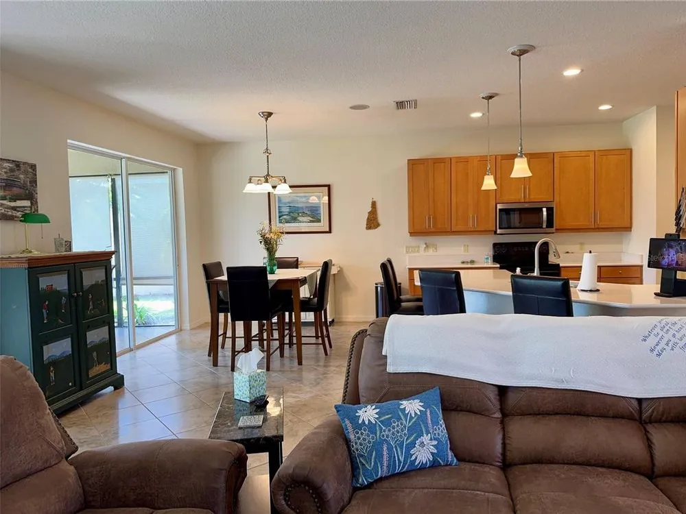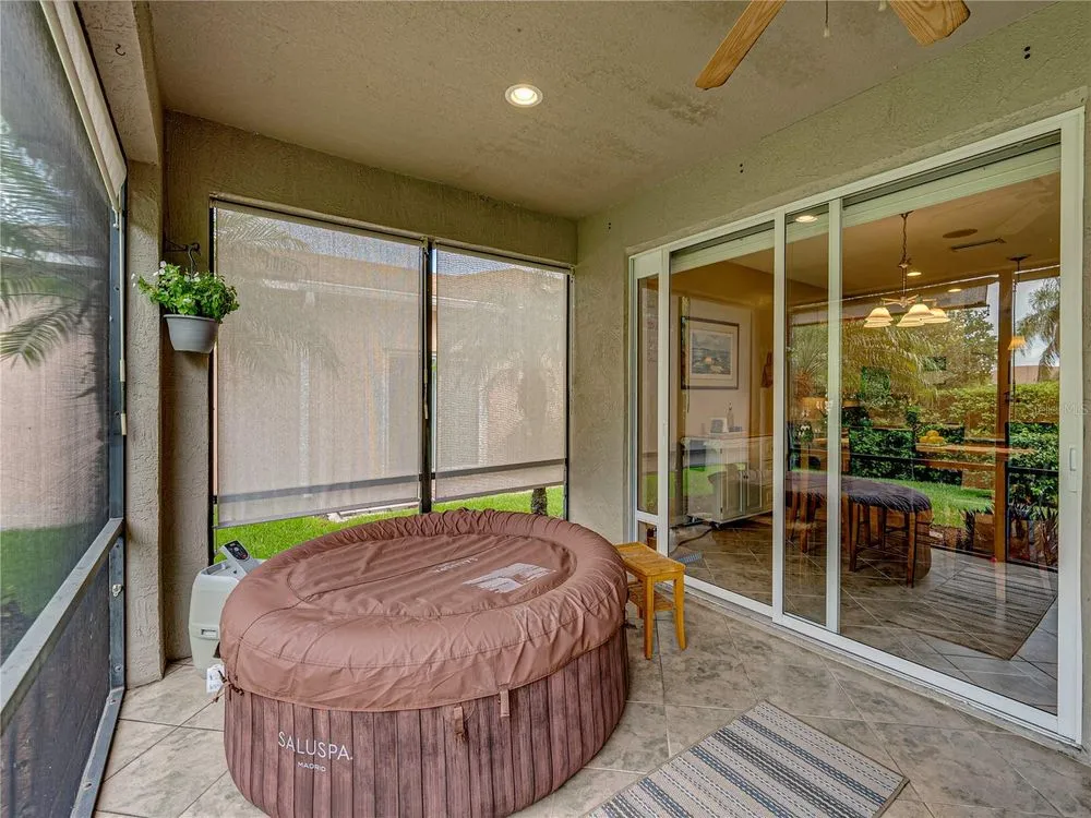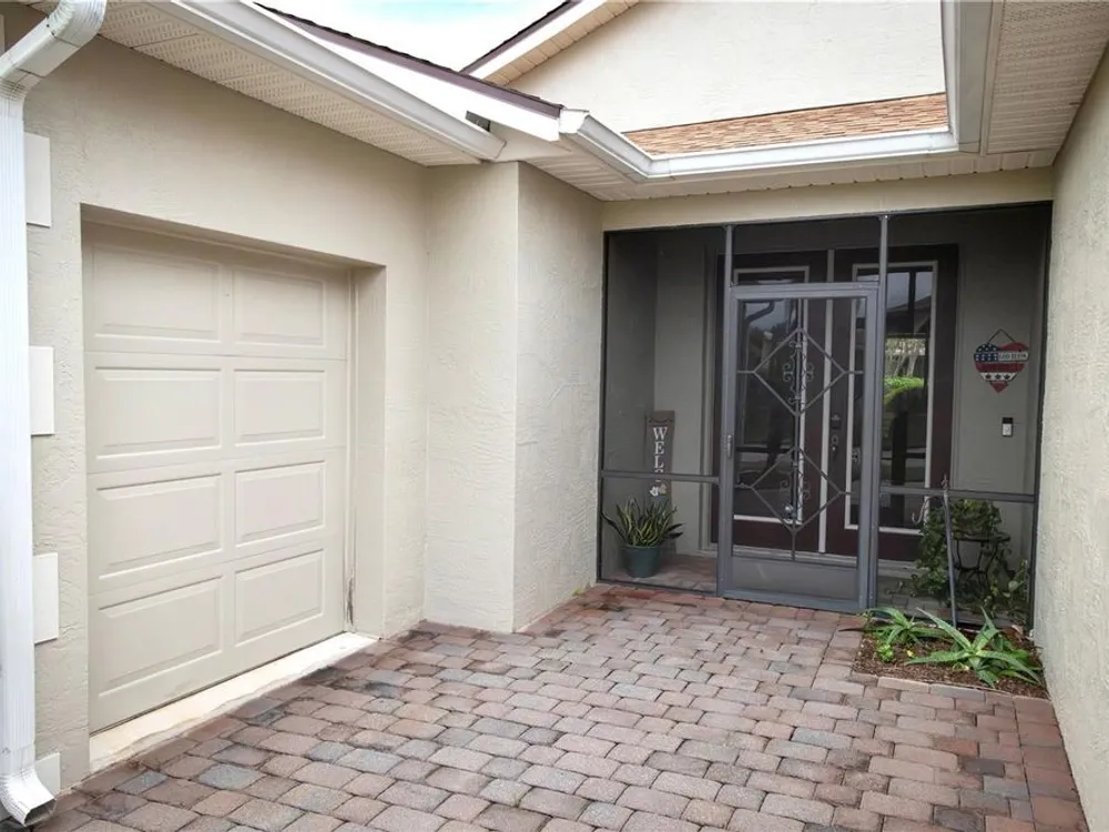 Welcome to your personal haven in Lake Ashton—Central Florida’s premier 55+ active-adult community. This beautifully maintained 2-bedroom, 2-bath home offers 1,530 square feet of thoughtfully designed living space, along with a 10’ x 13’ golf cart garage. Freshly painted both out and in the living room and kitchen, it feels bright, crisp, and truly move-in ready. The home’s curb appeal shines with quoin accents, lush landscaping, and elegant double entry doors with glass inserts, all complemented by a screened front entry for added comfort. Inside, the kitchen is a delight with a new one-level quartz countertop, solid wood 42” soft-close cabinets, under-cabinet lighting, and updated appliances. The spacious open layout flows across custom tile flooring, with the guest bedroom featuring warm wood laminate. A pocket door enhances privacy in the guest suite, while both bathrooms are finished with Corian counters. The primary bath is a retreat with dual sinks and a large tiled walk-in shower. Perfect for relaxed living and gracious entertaining, the expansive 10’ x 30’ screened veranda features tiled flooring and Sunshades, extending seamlessly to a paver patio surrounded by manicured hedges, mature palms, and tasteful plantings. A new roof was installed in 2021, and optional furnishings make this an effortless move. Life at Lake Ashton is more than a home—it’s a lifestyle. Residents enjoy two 18-hole championship golf courses, a 26,000 sq. ft. clubhouse, a state-of-the-art health and fitness center, indoor and outdoor pools, pickleball courts, a bowling alley, theater, on-site dining, and a vibrant calendar of social events and clubs. Don’t miss this opportunity to make a warm, welcoming, and beautifully appointed home your own. Schedule your private showing today and start living the Florida dream at Lake Ashton.