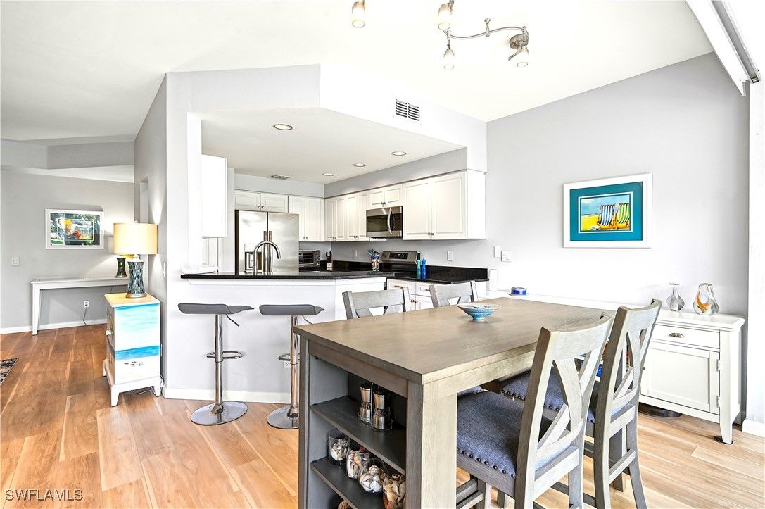 SIMPLY PERFECT! LONG LAKE VIEWS where nothing is out of place, complete with 2 bedrooms PLUS A DEN and two full bathrooms, it’s the perfect size. FIRST FLOOR UNIT, SOLD TURNKEY IN HARBOR LANDING OF BONITA BAY + NO INTERIOR FLOODING DURING IAN, HELENE OR MILTON DUE TO HIGH ELEVATION OF 10.5’ 4490 Riverwatch Dr #102 feels like home the moment you step inside and you will notice the new LVP floors (2022), the tasteful furniture, and pride of ownership as it’s SPOTLESS! The kitchen has new high-end Frigidaire stainless steel appliances including an induction range, a functional breakfast bar, complete with AMAZING lake views. MOVE RIGHT IN as you have a NEW AC (May 2024) with transferable warranty till 2034, fresh paint, new bathroom vanities/lights, and a comfortable dining and living room are great for entertaining and watching the wildlife. PLUS, it’s sold TURNKEY with tasteful furniture. This unit is light and airy with great natural light soaking in from the lanai. The lanai faces east, is complete with electric hurricane shutters and it feels as if you are ON THE WATER! AND, buy with confidence knowing that this unit experienced NO INTERIOR FLOODING during any of the hurricanes. The added ground elevation (certificate available) makes this unit valuable and desired for those looking for first floor living. If you’re looking for a CLEAN, FIRST FLOOR, TURNKEY UNIT that offers AMAZING VIEWS, 4490 Riverwatch Drive #102 is for you. Just bring your personal touches to call this home. Residents of Bonita Bay enjoy 12 miles of walking/ biking trails, bocce, outdoor gym, pickleball, tennis, canoe/kayaking, boat launch, and three on site parks, as well as a private beach park with in-season shuttle all included in the HOA. Check out the renderings of the gorgeous new beach facilities with an anticipated opening in summer 2025. OPTIONAL membership to Bonita Bay Club, one of Southwest Florida's premier golf communities, offering an active country club lifestyle, five of championship golf courses and state-of-the-art amenities.