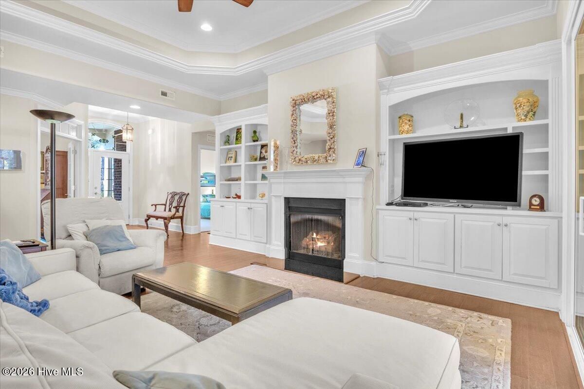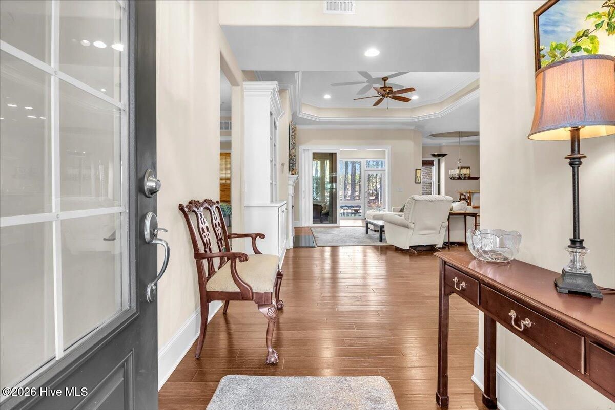 - Walk-in Closet(s), Tray Ceiling(s), High Ceilings, Entrance Foyer, Bookcases, Kitchen Island, Ceiling Fan(s), Walk-in Shower