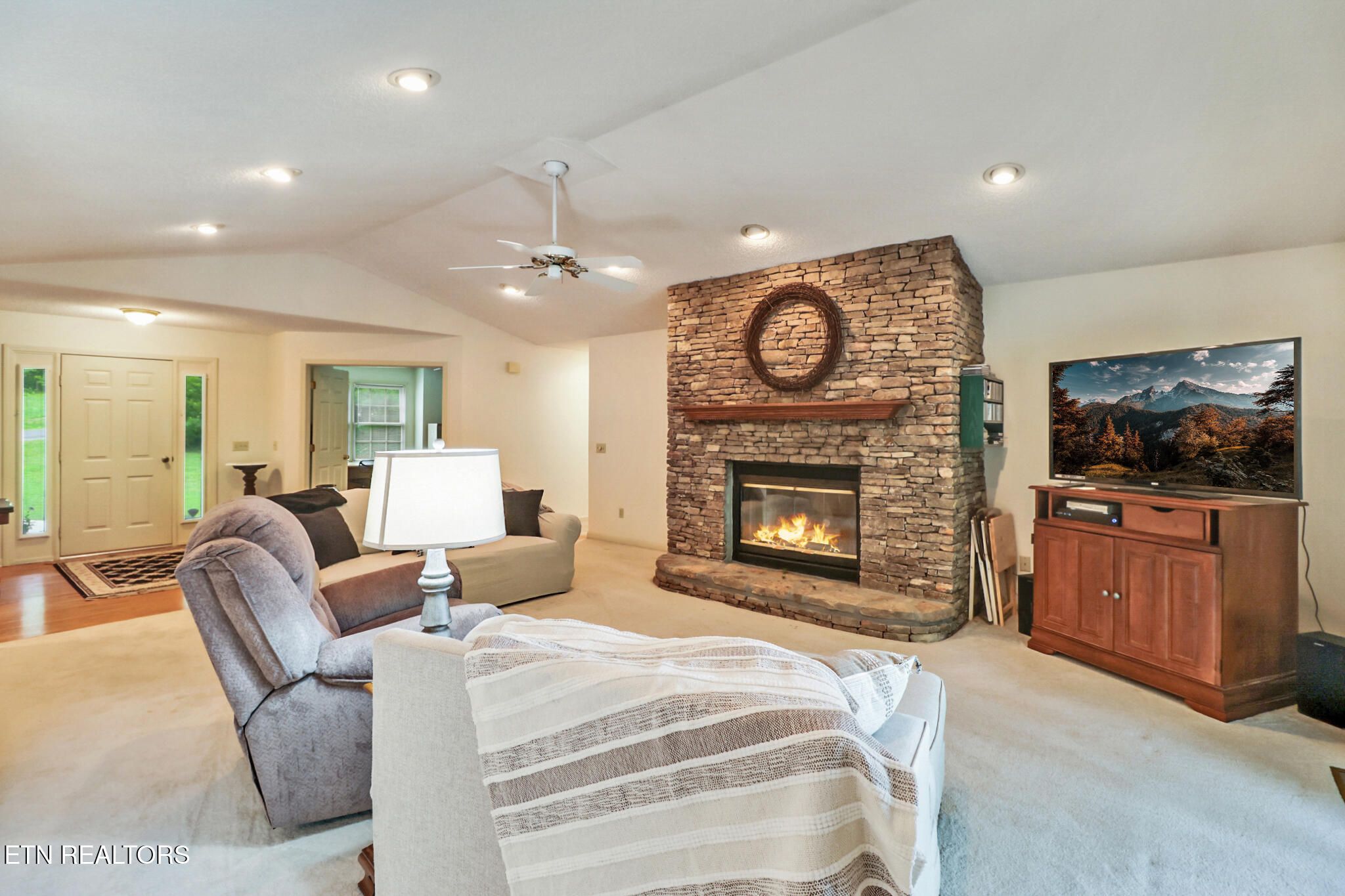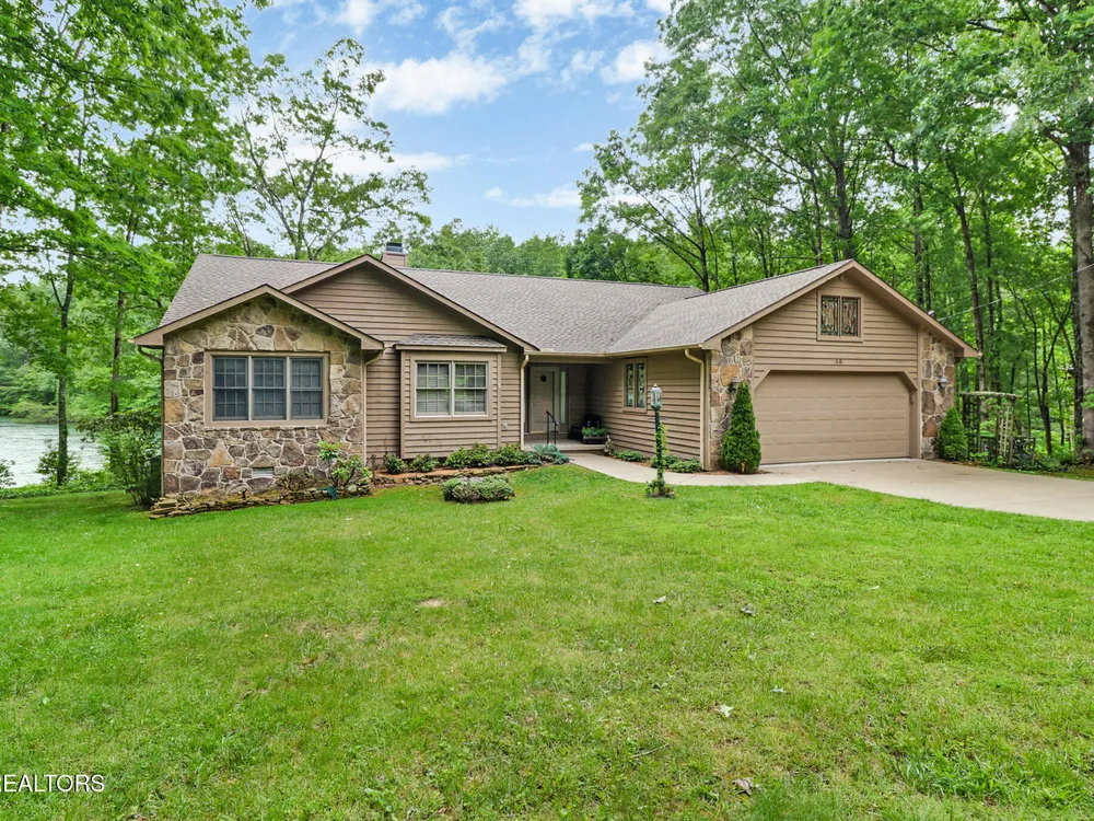 Experience peaceful lake life living on the quiet and beautiful Lake Kirkstone! It's hard to find a flat driveway AND an easy walk to the lake, but this house has both! The exterior of the home is stone and wood siding, and features stain glass windows. The driveway and walks have been freshly power washed. As you walk into the front door, you will find the living space with vaulted ceilings, gas fireplace with stone decor, and sliding glass doors to enjoy the lake view. The kitchen features brand new appliances, sink, pulls, backsplash, and granite countertops. There is a breakfast nook, along with a formal dining area which has a tray ceiling and sliding glass doors to the deck, allowing more options of the gorgeous lake view. Off the breakfast nook is a screened porch. The bonus room in front of the home has French doors and can be used as an office/hobby room/or for additional guest to sleep. Hardwood flooring in the foyer, kitchen, breakfast nook, bonus room & hallway. The master bedroom has a trey ceiling with two walk in closets and a sliding glass door, offering a third access to the back deck and lake view. The master bathroom has double sinks, walk-in shower, and a jacuzzi tub. Bedroom 2 has large windows. The washer & dryer in the laundry room convey with the home. The spacious two car garage has two areas with cabinets and countertops. In the back, you will find a large partial covered deck to enjoy more of the peaceful views of the lake, and an easy walk to the dock where you can watch and enjoy the fish as they swim by! A portion of the crawl space has been made into a storage area with a concrete floor and separate entry from the crawl space. Crawl space has a dehumidifier. The water heater and HVAC are six years old, and the roof is two years old. The buyer has first option to purchase the lot next door (47 Calderwood Circle). If peace and serenity is what you are looking for, this location is it!