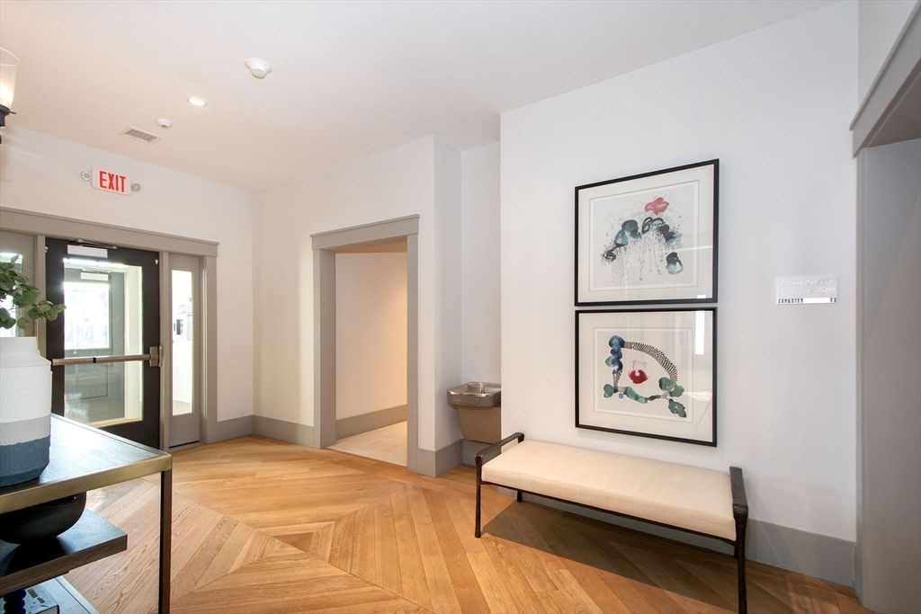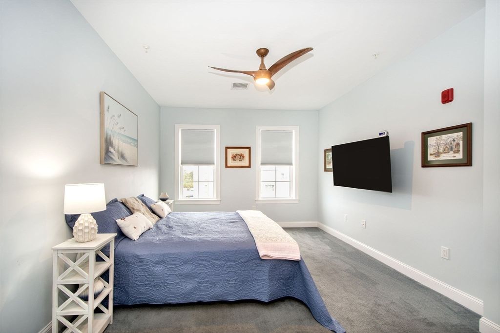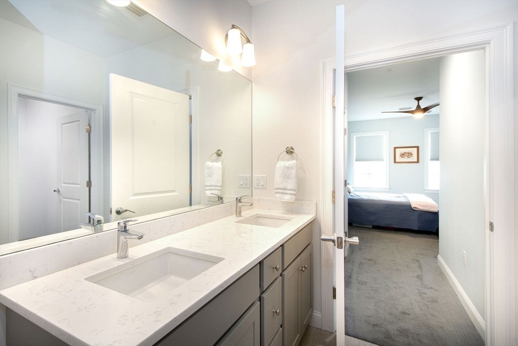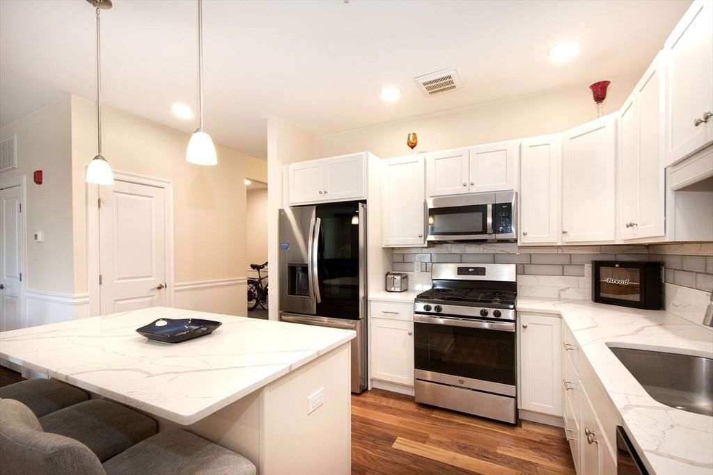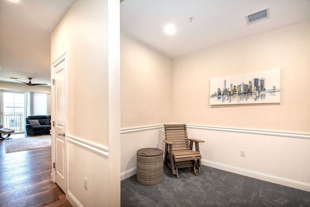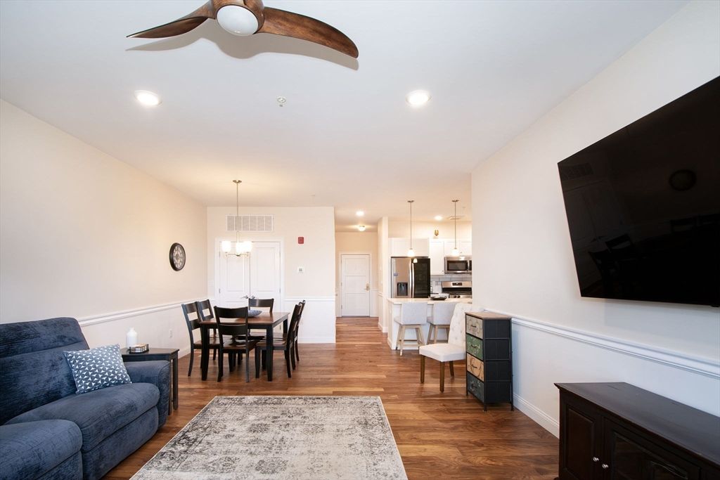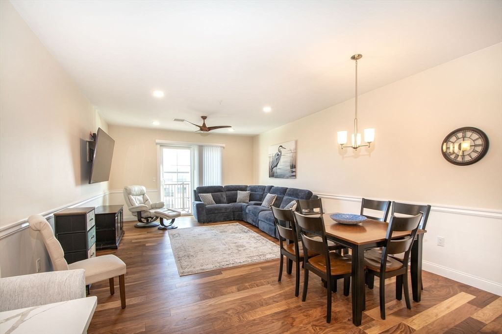 Welcome to Sawyer's Reach! 45 Plaza Way is an active and vibrant 55+ community. This unit is an open-concept living area offers a seamless flow, featuring a dining space that transitions into the main living room with custom chair rail with sliders leading out to your private balcony. The kitchen has upgraded cabinets, backsplash, and quartz countertops with plenty of cabinets and countertop space for entertaining.This unit is located on the penthouse/top floor and convenient to the elevator nearby. There are many upgrades which include but not limited to: Quartz Cashmere Carrara countertops, 5" hardwood in the kitchen, living, and dining area as well as upgraded bathrooms. The main bedroom has custom shelving in the walk in closet and double vanity. Residents benefit from exceptional amenities, including a heated saltwater pool, a clubhouse, reading room and a workout room. Only minutes from convenient local shopping, dining, medical facilities, and Historic Downtown Plymouth.