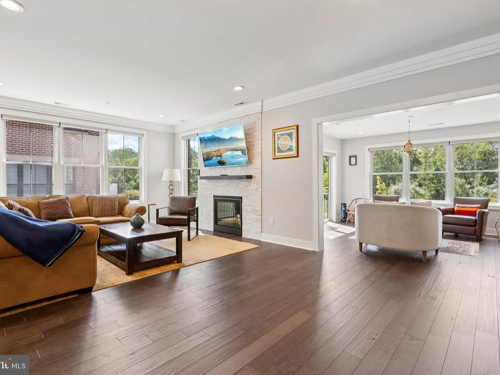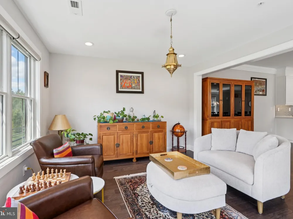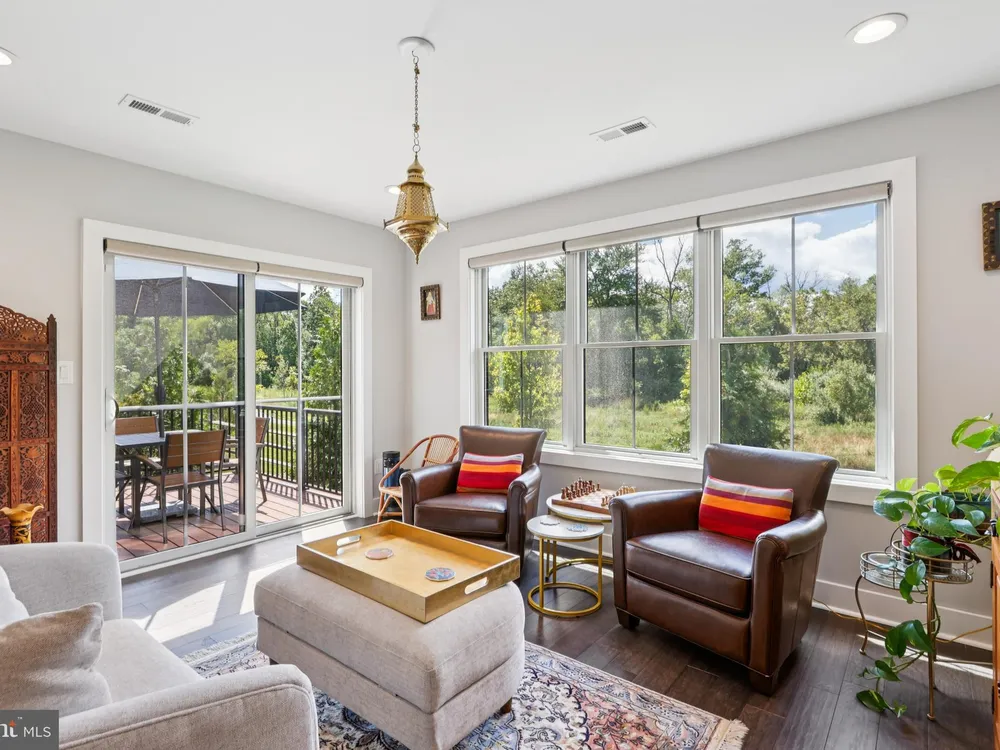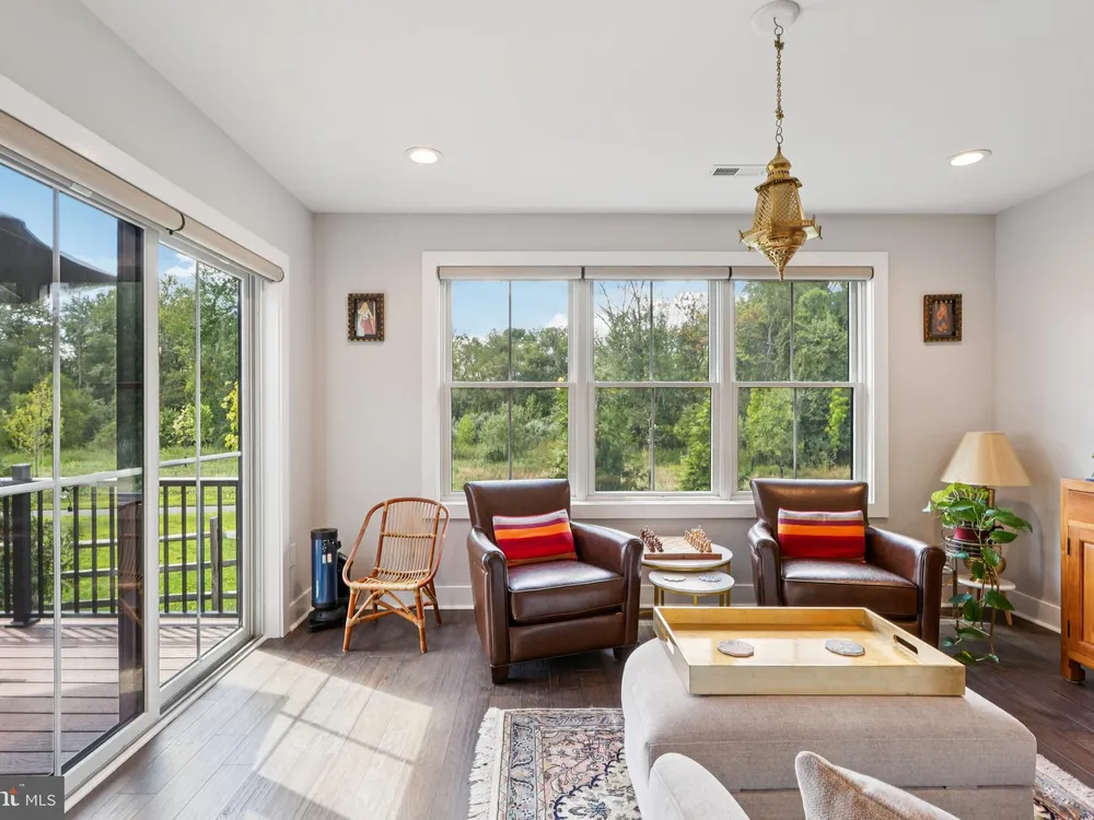 At 45 Riverwalk, an Ashton end-unit model with a sunroom addition, you’ll discover the perfect blend of modern living and the vibrant lifestyle of The Townhomes at Riverwalk, a boutique 55+ active adult community where every detail is designed for those ready to embrace their next chapter in style. Perfectly positioned just minutes from downtown Princeton and with easy access to train and bus service to New York City and Philadelphia, this home offers the rare balance of suburban tranquility and urban convenience. Filled with natural light, this residence spans three levels of flexible living space. The open floor plan sets the stage for both quiet evenings and lively gatherings, with airy 9-foot ceilings, wide-plank engineered hardwood floors, and an effortless flow between living, dining, and kitchen areas. A future-ready elevator shaft provides peace of mind, allowing this home to adapt with your lifestyle. The kitchen is a true centerpiece—equipped with GE Café stainless steel appliances, quartz countertops that stretch generously for prep and serving, custom soft-close cabinetry, and a chic tile backsplash. The center island with seating and pendant lighting is ideal for quick bites or casual conversation while cooking. A wine and beverage cooler and vented microwave add both convenience and sophistication, while the adjoining family room with a remote-controlled gas fireplace invites cozy relaxation. Completing the main level is a spacious and bright sunroom with plenty of natural light and peaceful views. Just beyond, a sunny deck offers the perfect spot for outdoor dining while enjoying a fabulous backdrop of open space. Upstairs, the primary suite offers a retreat-like setting with a tray ceiling, oversized walk-in closet, and a spa bath featuring dual sinks, a quartz vanity, soaking tub, and walk-in shower with seat. Two additional bedrooms and a stylish full bath with walk-in shower accommodate guests with ease. Thoughtful touches like handheld showerheads, bidets, and a full laundry room with utility sink elevate daily living. A versatile third-floor bonus room opens endless possibilities—office, studio, media room, or simply extra storage—giving you the freedom to shape the home around your interests. Life at Riverwalk extends well beyond your front door. The clubhouse is alive with opportunity: an indoor pool, fitness center, movie theater, card room, DIY studio, and virtual game room make it easy to stay active and social. Scenic trails along the Millstone River encourage fresh-air escapes, while the vibrant culture and dining of Princeton are always close at hand. Built with quality and energy efficiency in mind—Andersen windows, James Hardie siding, Carrier HVAC, and a tankless hot water heater—this home also includes a two-car garage with an EV charger, offering both practicality and future-forward convenience. With a transferable new-home warranty still in place, you can move in with confidence and start enjoying everything this community has to offer. 45 Riverwalk is your gateway to comfort, connection, and a life well-lived.