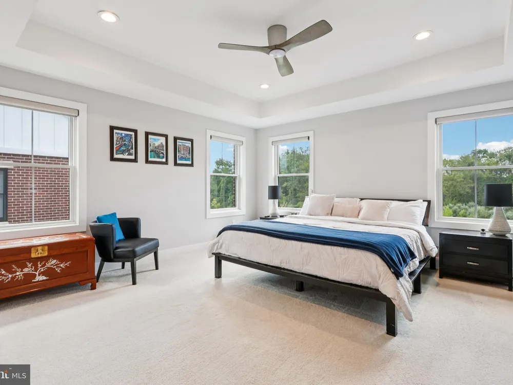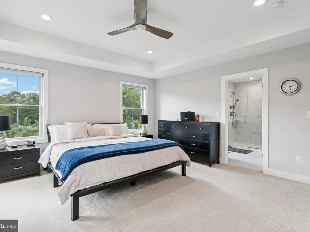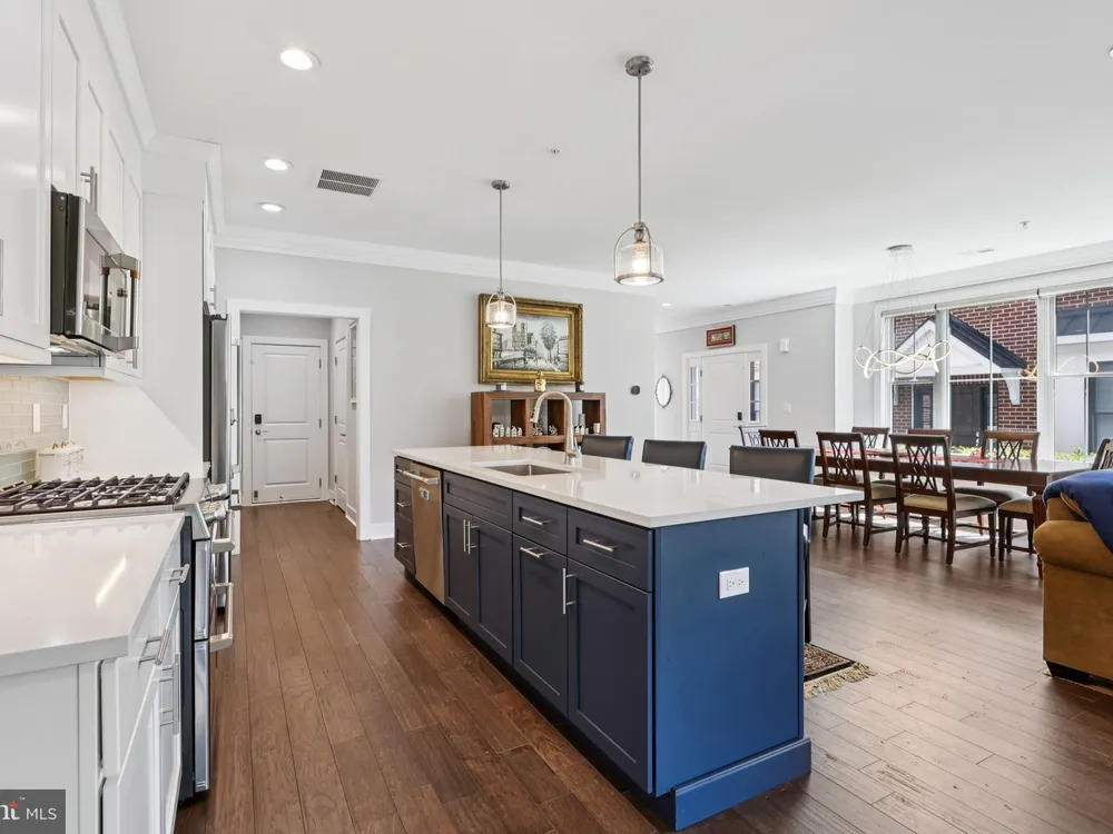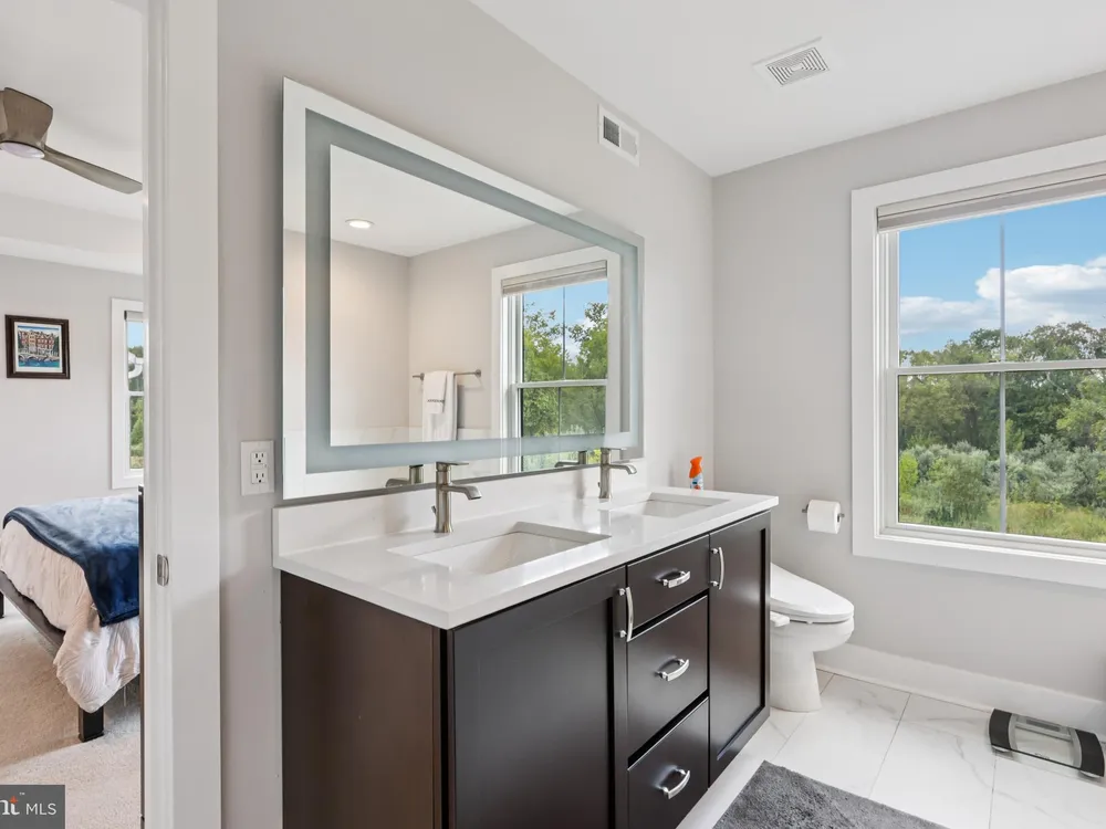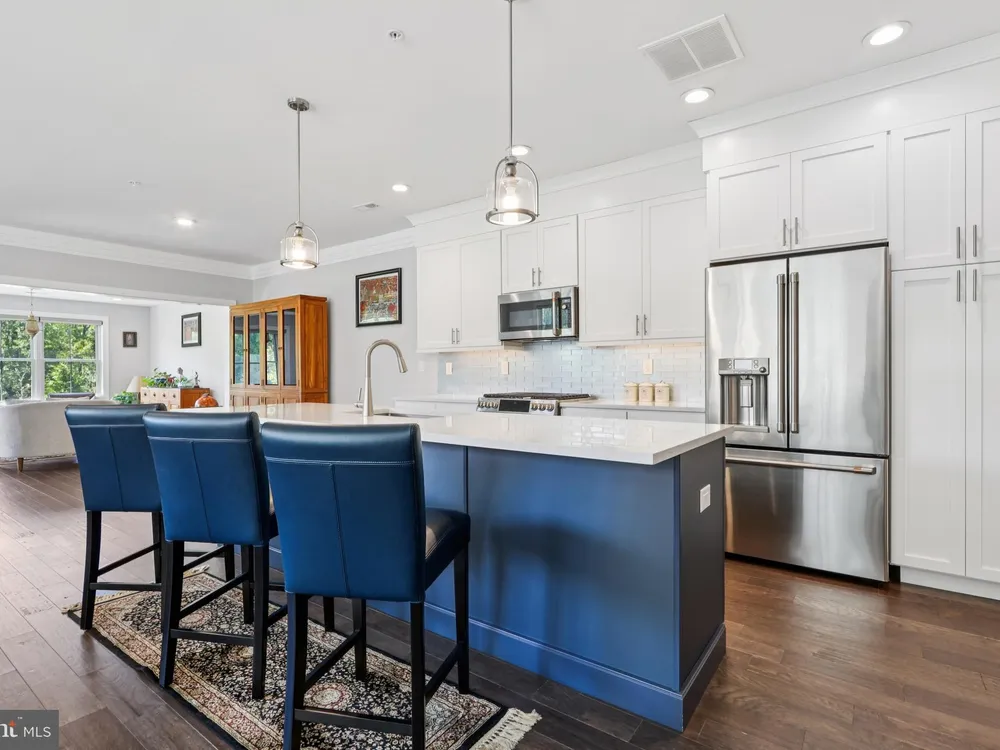 At 45 Riverwalk, an Ashton end-unit model with a sunroom addition, you’ll discover the perfect blend of modern living and the vibrant lifestyle of The Townhomes at Riverwalk, a boutique 55+ active adult community where every detail is designed for those ready to embrace their next chapter in style. Perfectly positioned just minutes from downtown Princeton and with easy access to train and bus service to New York City and Philadelphia, this home offers the rare balance of suburban tranquility and urban convenience. Filled with natural light, this residence spans three levels of flexible living space. The open floor plan sets the stage for both quiet evenings and lively gatherings, with airy 9-foot ceilings, wide-plank engineered hardwood floors, and an effortless flow between living, dining, and kitchen areas. A future-ready elevator shaft provides peace of mind, allowing this home to adapt with your lifestyle. The kitchen is a true centerpiece—equipped with GE Café stainless steel appliances, quartz countertops that stretch generously for prep and serving, custom soft-close cabinetry, and a chic tile backsplash. The center island with seating and pendant lighting is ideal for quick bites or casual conversation while cooking. A wine and beverage cooler and vented microwave add both convenience and sophistication, while the adjoining family room with a remote-controlled gas fireplace invites cozy relaxation. Completing the main level is a spacious and bright sunroom with plenty of natural light and peaceful views. Just beyond, a sunny deck offers the perfect spot for outdoor dining while enjoying a fabulous backdrop of open space. Upstairs, the primary suite offers a retreat-like setting with a tray ceiling, oversized walk-in closet, and a spa bath featuring dual sinks, a quartz vanity, soaking tub, and walk-in shower with seat. Two additional bedrooms and a stylish full bath with walk-in shower accommodate guests with ease. Thoughtful touches like handheld showerheads, bidets, and a full laundry room with utility sink elevate daily living. A versatile third-floor bonus room opens endless possibilities—office, studio, media room, or simply extra storage—giving you the freedom to shape the home around your interests. Life at Riverwalk extends well beyond your front door. The clubhouse is alive with opportunity: an indoor pool, fitness center, movie theater, card room, DIY studio, and virtual game room make it easy to stay active and social. Scenic trails along the Millstone River encourage fresh-air escapes, while the vibrant culture and dining of Princeton are always close at hand. Built with quality and energy efficiency in mind—Andersen windows, James Hardie siding, Carrier HVAC, and a tankless hot water heater—this home also includes a two-car garage with an EV charger, offering both practicality and future-forward convenience. With a transferable new-home warranty still in place, you can move in with confidence and start enjoying everything this community has to offer. 45 Riverwalk is your gateway to comfort, connection, and a life well-lived.